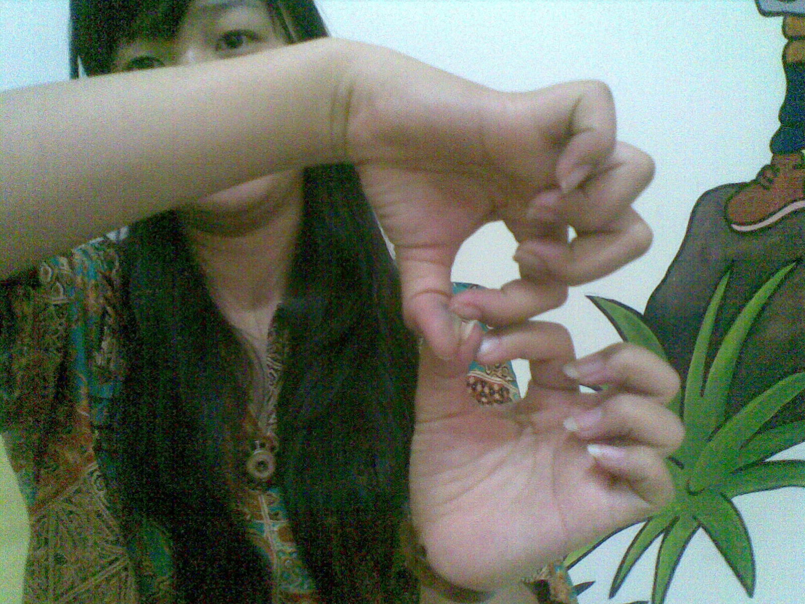 Foto ini urut dari angka 0, 1 (hidung), 2 (telinga), 3 (kumis), 4 (telinga kelinci), 5 (five fingers), 6 (tubuh dengan bentuk 6), 7 (tubuh dengan bentuk 7), 8 (dua cincin), 9 (tubuh dengan bentuk 9) dan 0 ( tangan dengan bentuk 0)