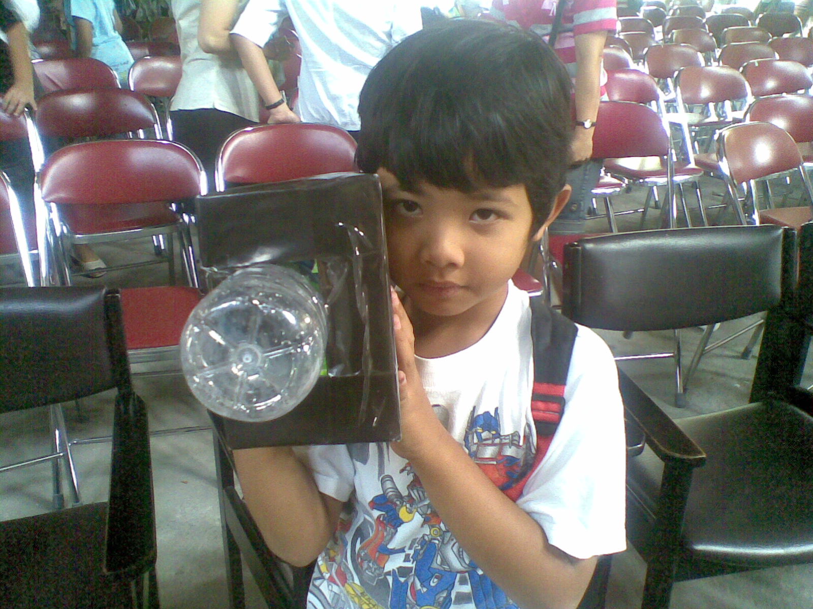 Tiang api yang bisa diputar-putarPlastik untuk ombak atau juga bisa untuk Laut TeberauMenara babel dari steorofoamPerahu dari doos bekasperahu dari doos bekas tampak depanbisa dimuati fleksibel jumlah anak karna bagian belakang dapt digeserKamera tiruan terbuat dari kotak sepatu bekas dan botol plastik