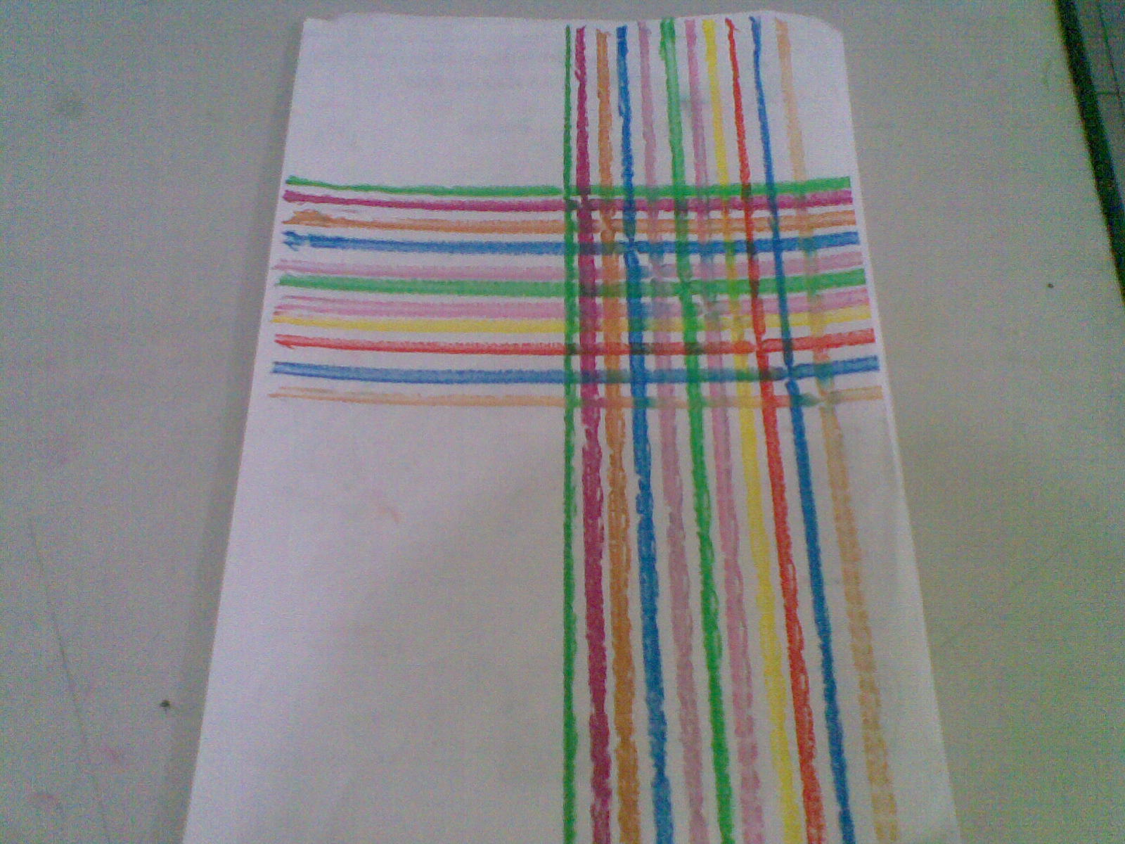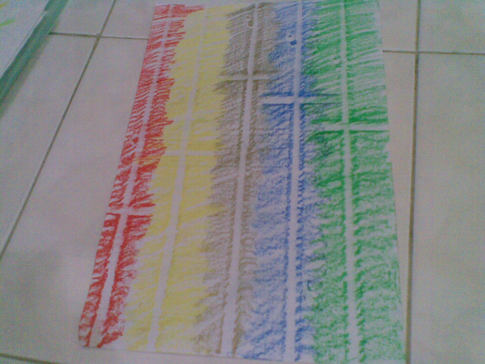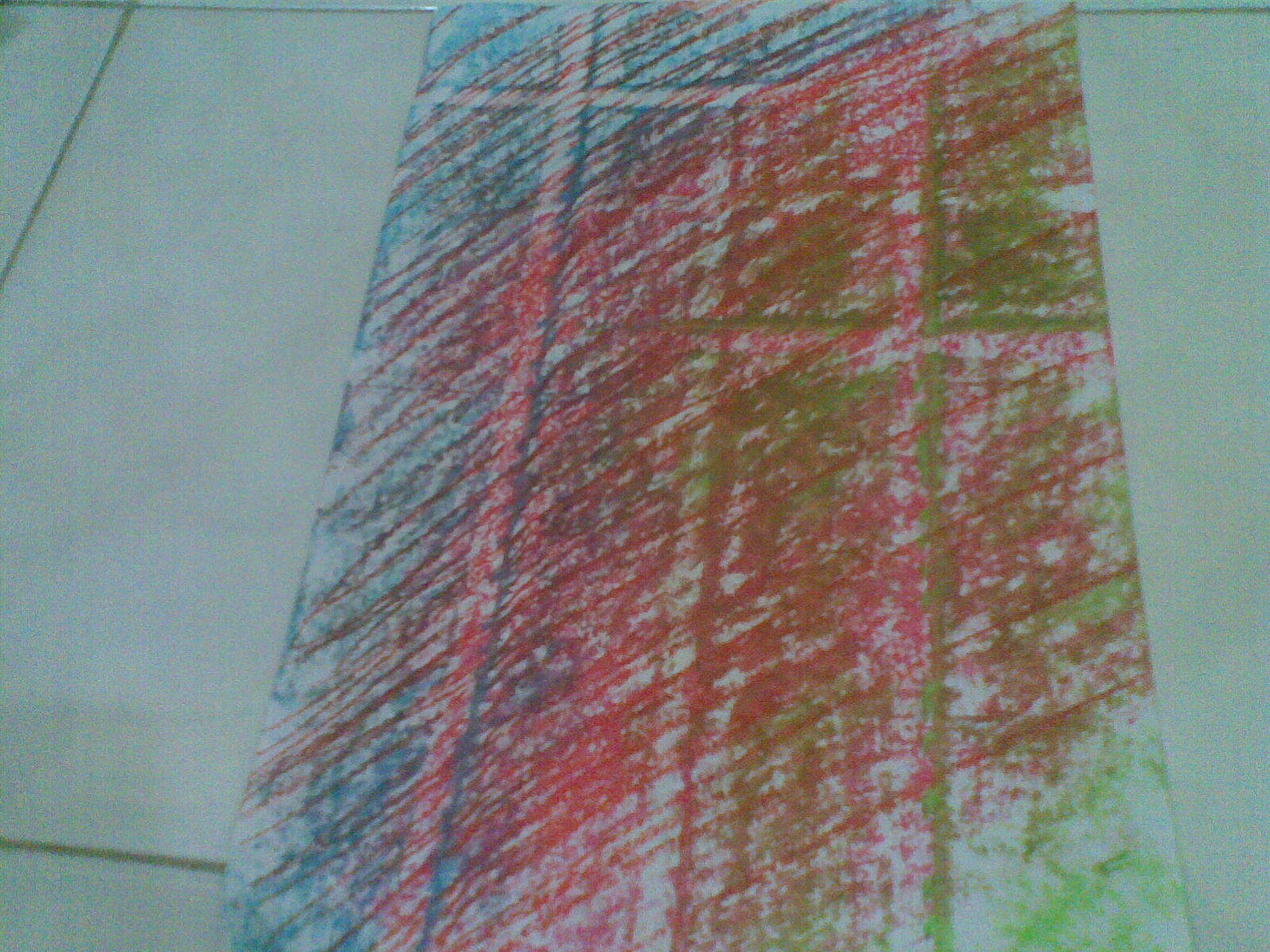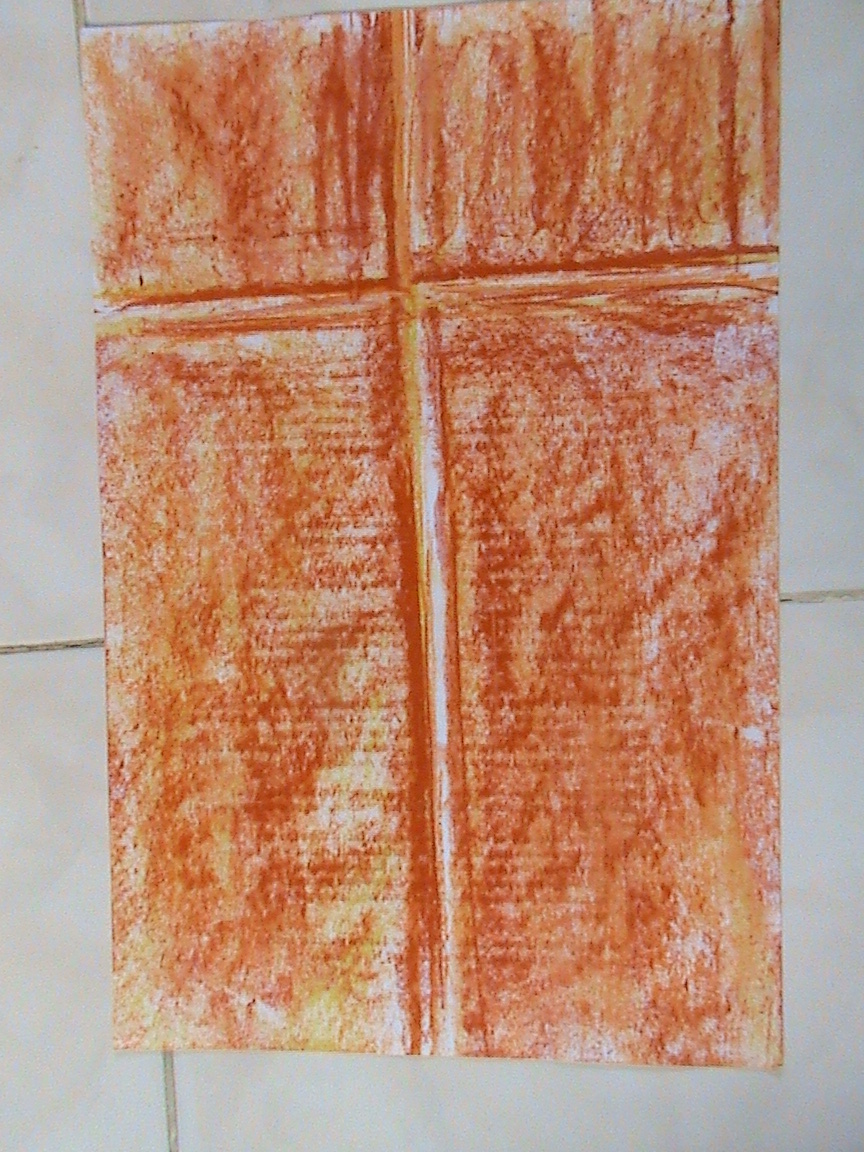 letakkan kertas di atas nat lantai keramik yang membentuk salib, goreskan cryon di atasnya.