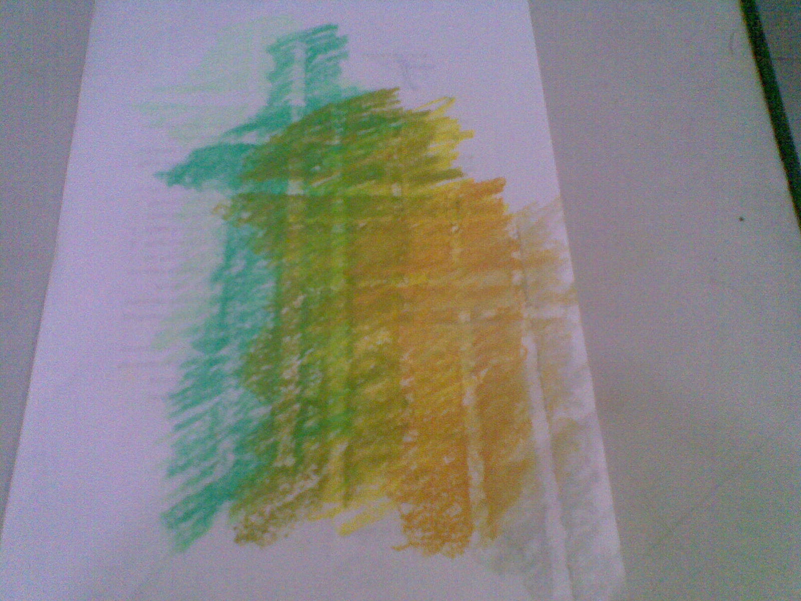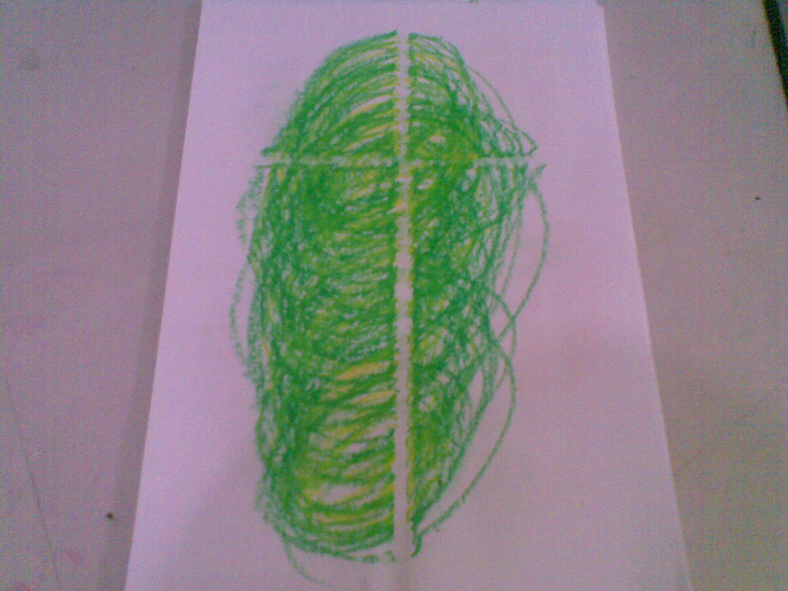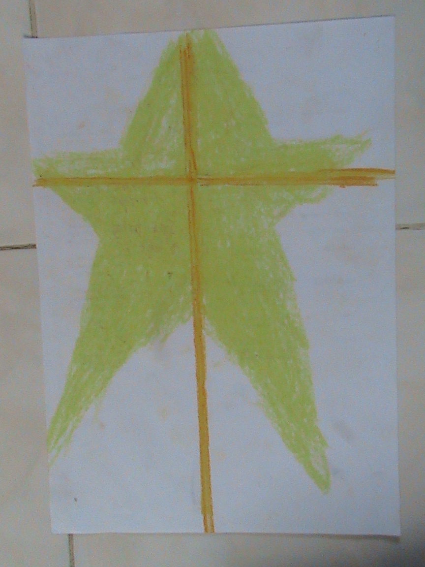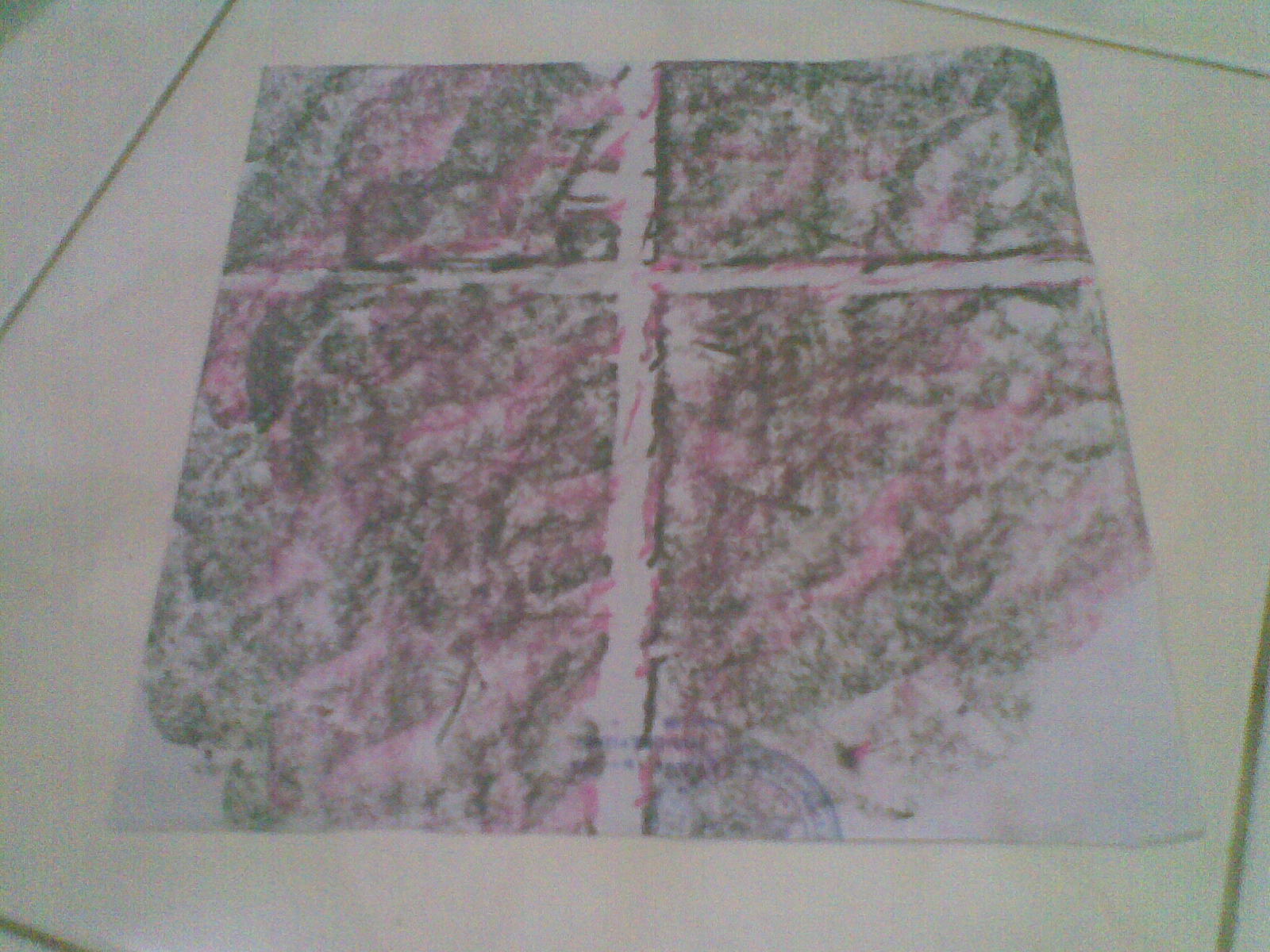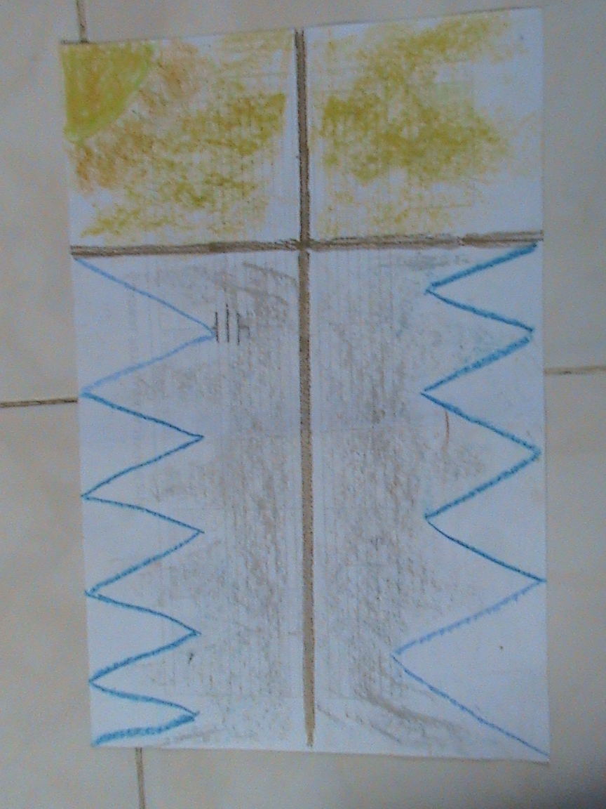 letakkan kertas di atas nat lantai keramik yang membentuk salib, goreskan cryon di atasnya.