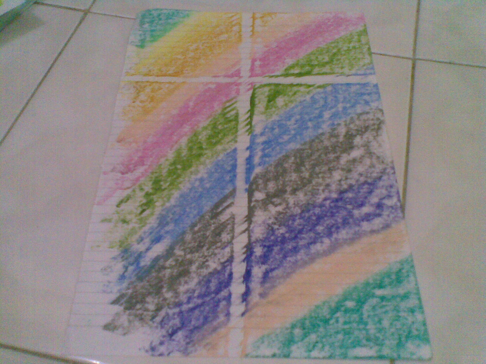 - memakai berbagai macam pewarna: cryon, pensil warna, gliter, cat air, dll