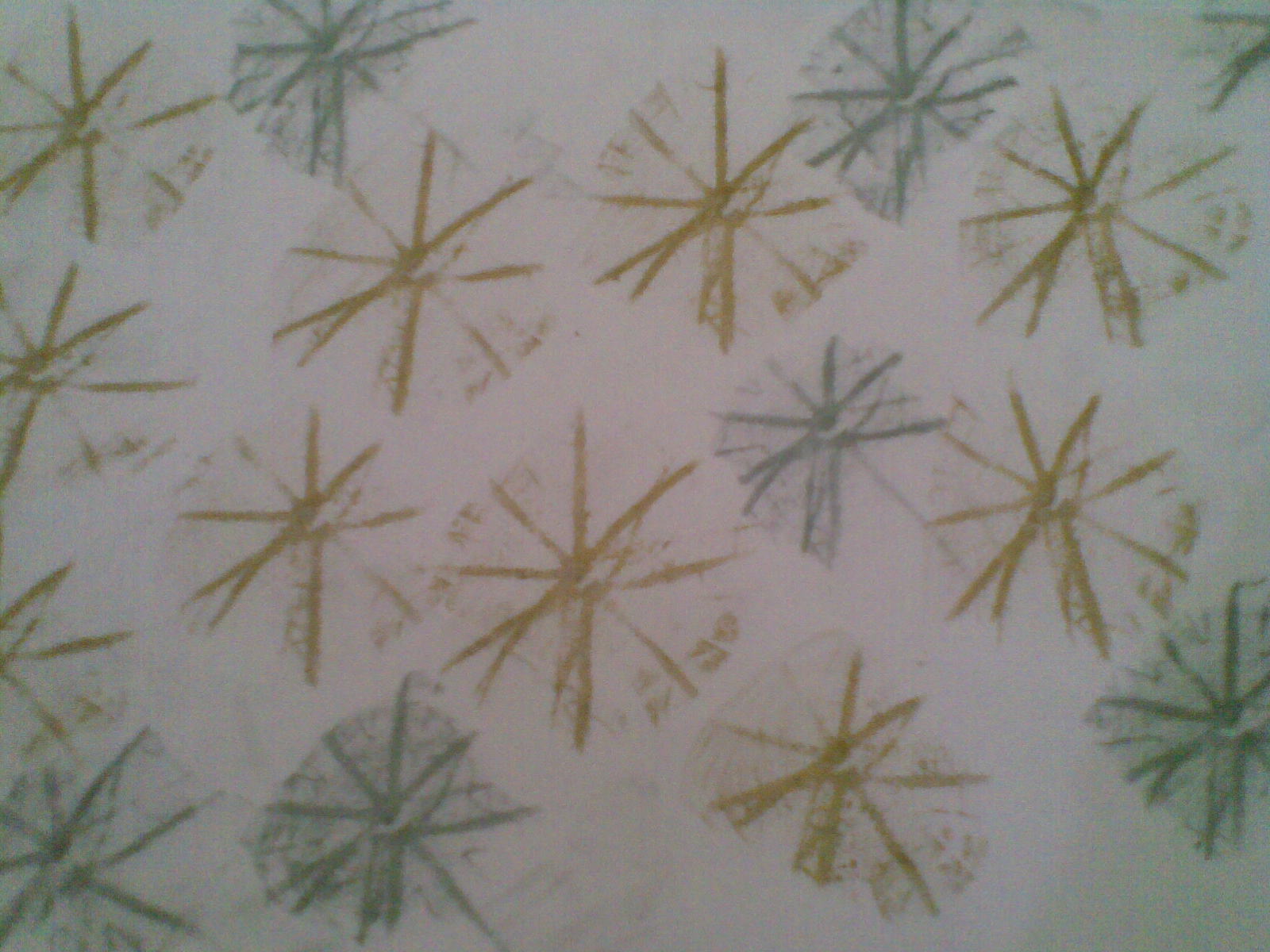 •    Membuat bintang dari menjiplak daun ketela dan menimpanya dengan cat air
