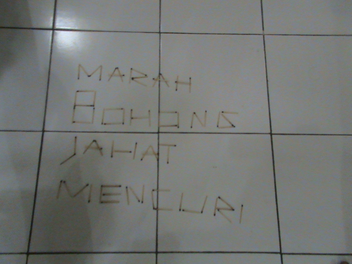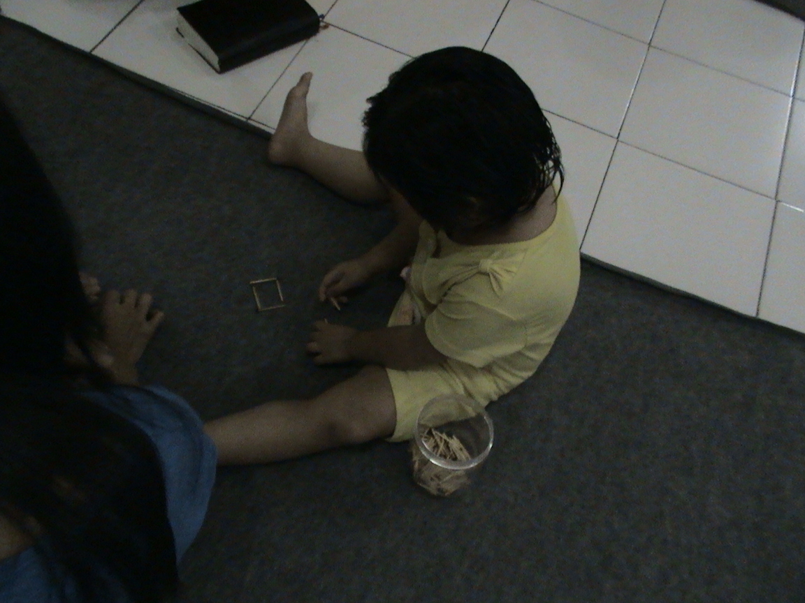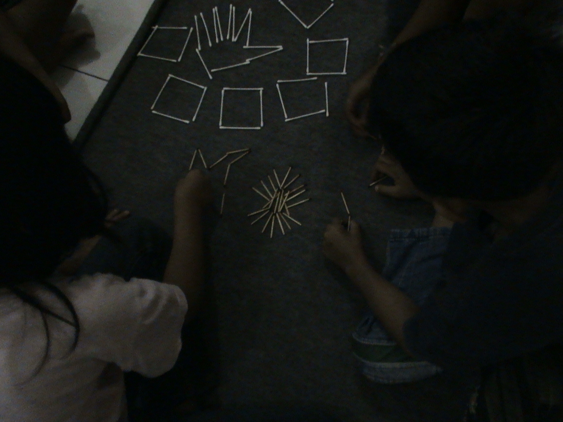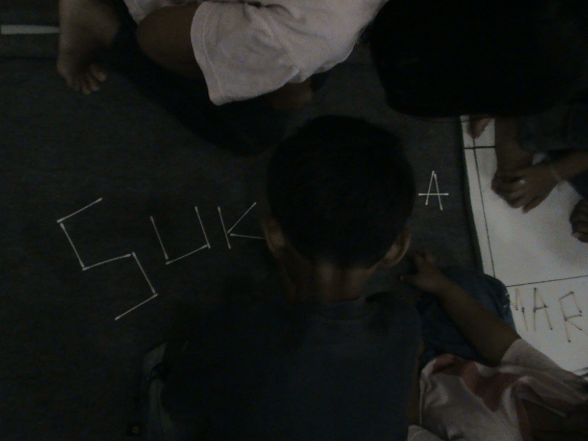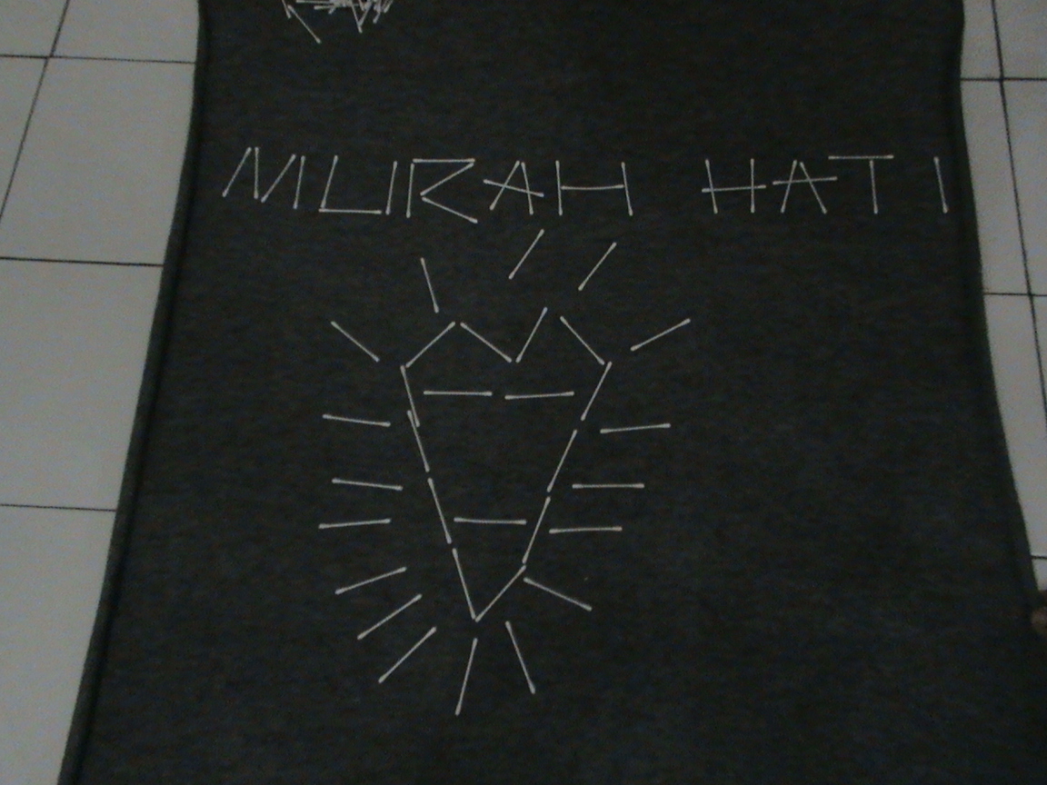 Bagi anak-anak menjadi dua kelompok, yaitu kelompok ‘A’ dan kelompok ‘B’. Kelompok ‘A’ bertugas menyusun cotton buds yang ada menjadi huruf-huruf bertuliskan KASIH, SUKACITA, dst, sedangkan kelompok ‘B’ menyusun korek api menjadi bertuliskan : PERCABULAN, KECEMARAN , dst.