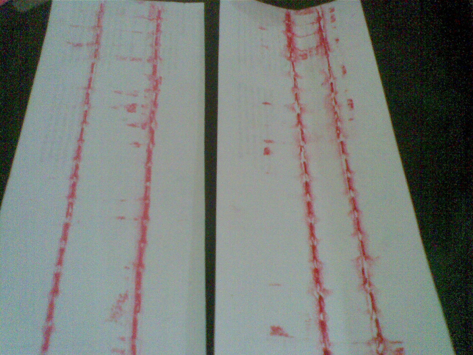 o Taruh kertas bekas sobekan tanggalan yang berlobang-lobang di atas lipatan lurus tadi