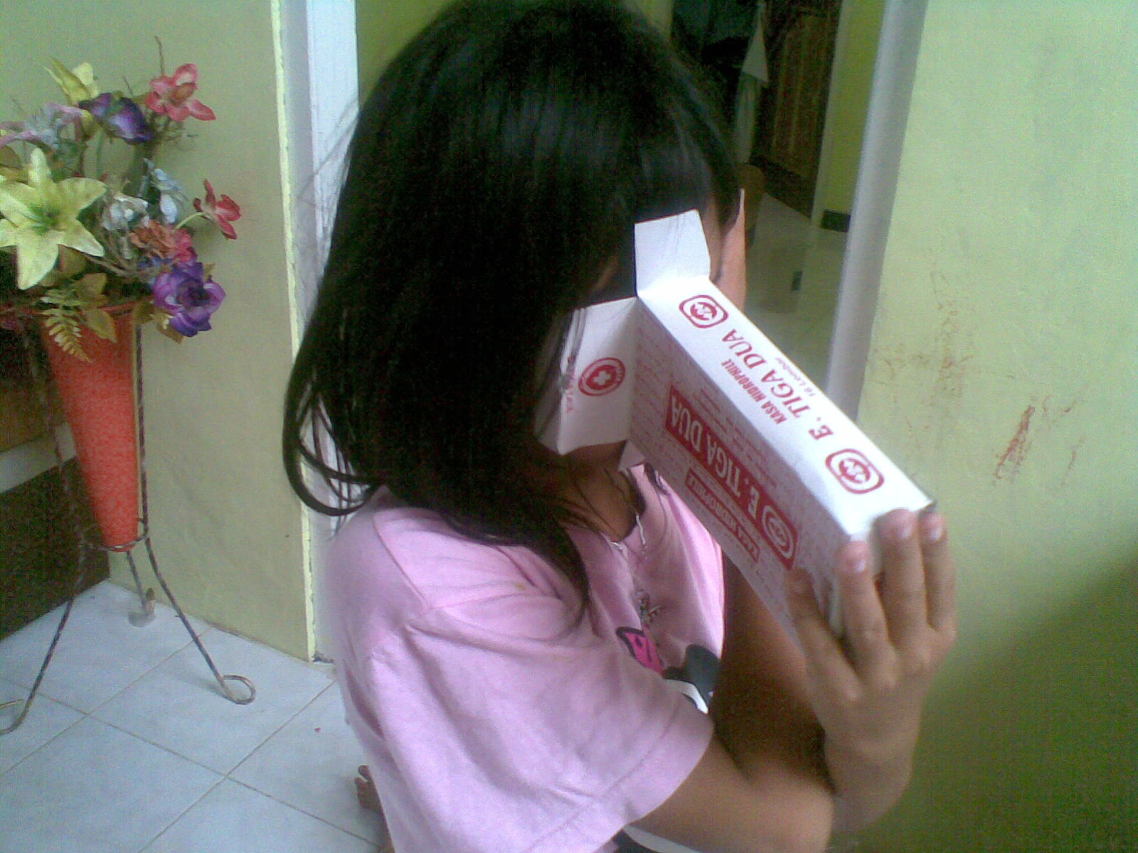 - Guru mempersiapkan kotak intip seperti yang ada di foto file ini. Siapkan sejumlah kelompok yang ada. Ini penting diperhatikan karna jika jumlah anak di kelas anda sangat banyak, tanpa adanya contoh buatan guru untuk per kelompok, akan memakan waktu yang lama sekali untuk setiap anak melihat hanya dari satu kardus saja.
