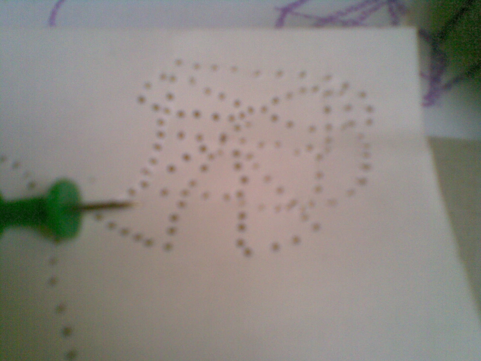 Gambar 1: Sekarang saatnya kita membuat gambar dari titik-titik lubang jarum di kardus ini dengan gambar bibir tersenyum. (batasi 5 menit harus selesai)