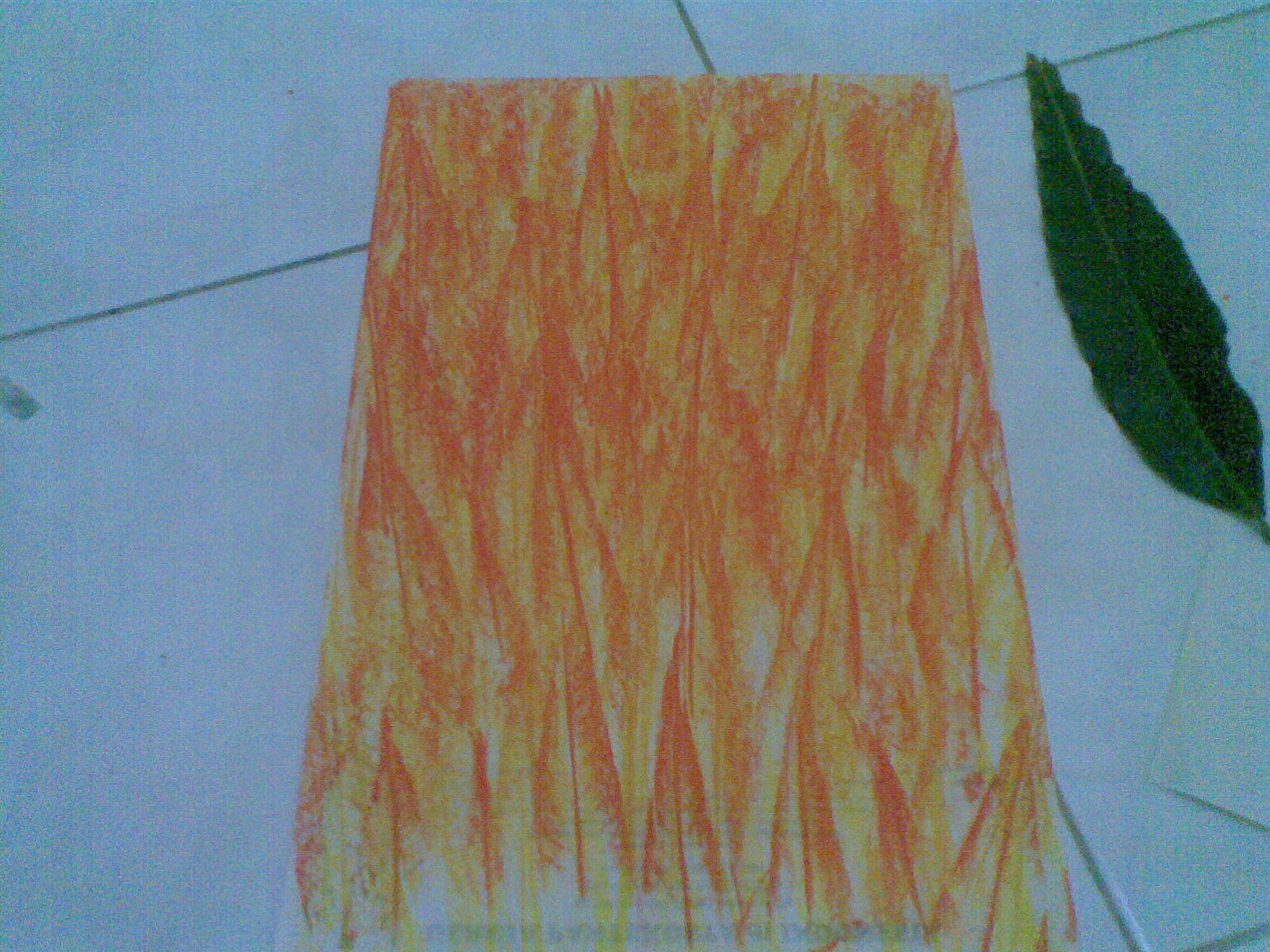 - Ulangi cara yang sama, tetapi kali ini kertas yang atas di turunkan ke bawah, sehingga posisi daun kini ada di tengah kertas.