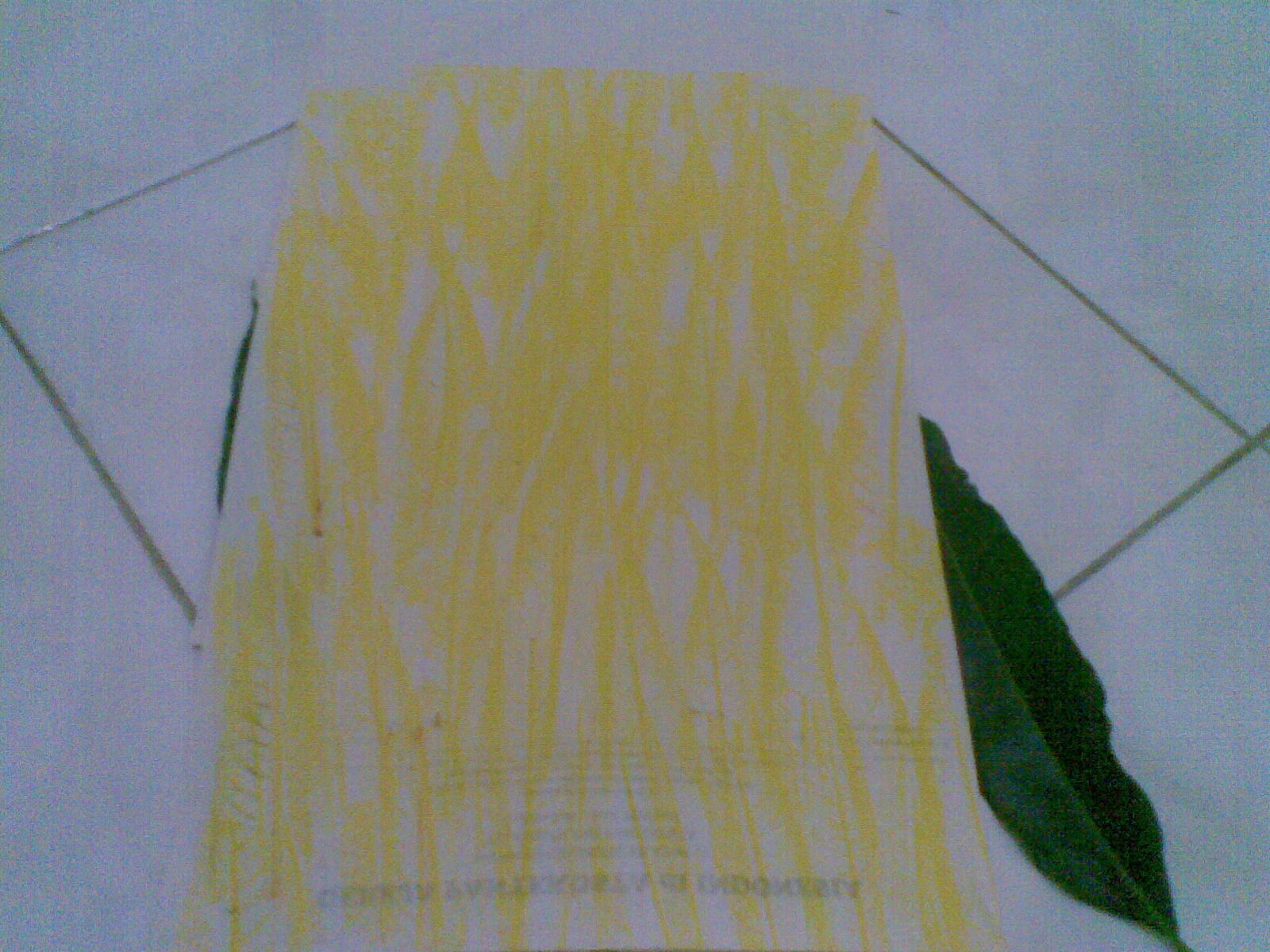 - Ulangi cara yang sama tetapi kali ini kertas yang atas diturunkan ke bawah, sehingga posisi daun kini ada di bagian paling atas kertas