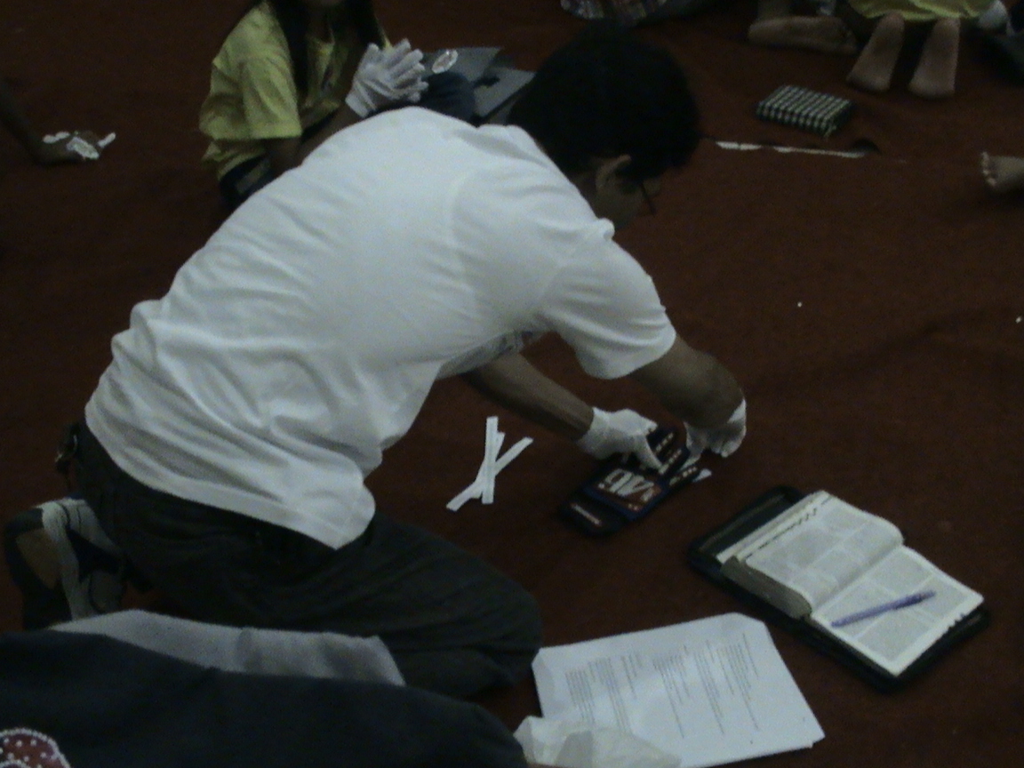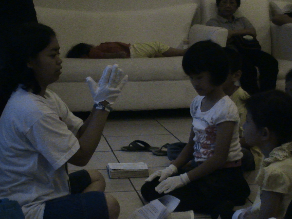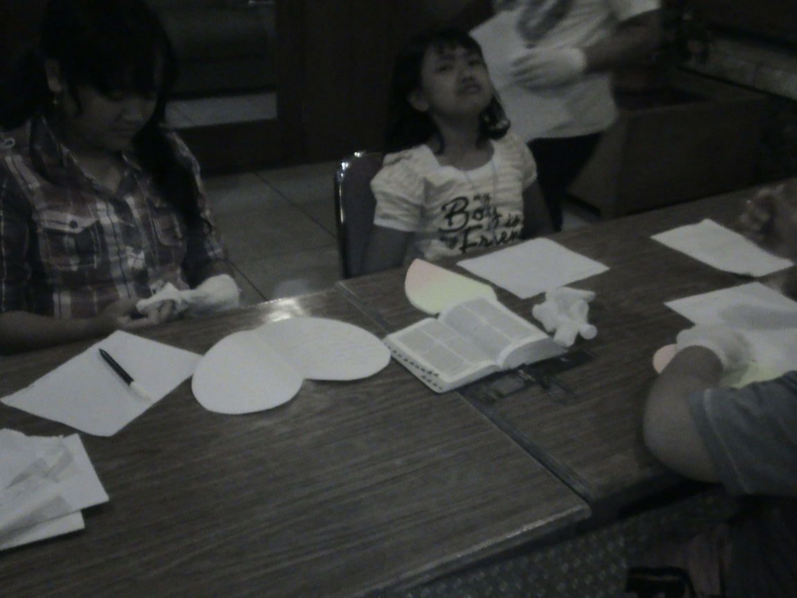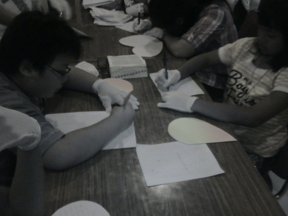 Diantara jari jemari kakak, (kakak memakai kaos tangan) kakak menyelipkan surat dari sahabatmu yang lumpuh itu, yang kalian kasihi, tolong tuliskanlah balasannya di sebelah kanan kartu surat itu. Dalam balasanmu harus ada kata KASIH