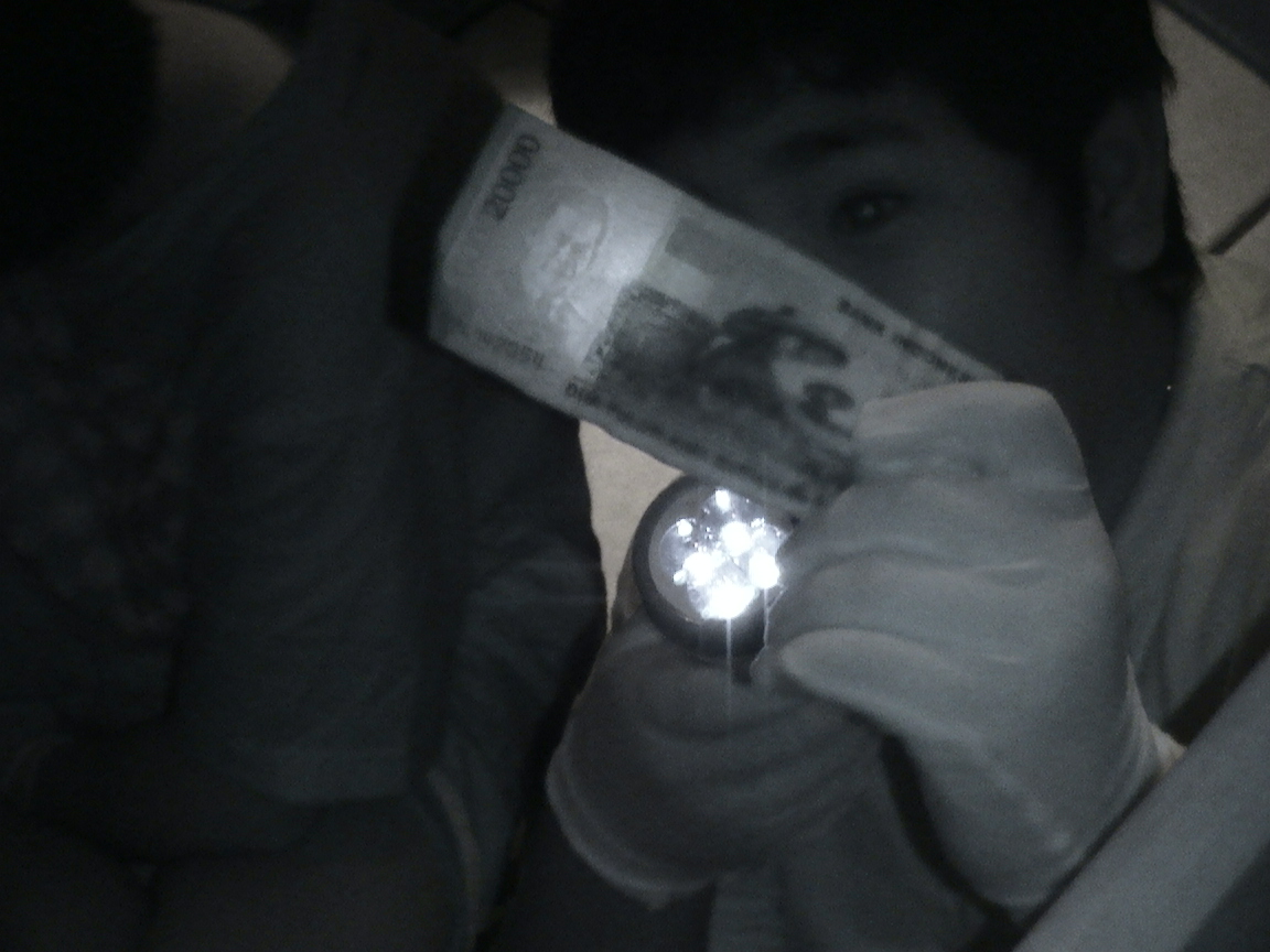 - Menerawang sebuah uang kertas pada cahaya lampu atau sinar matahari