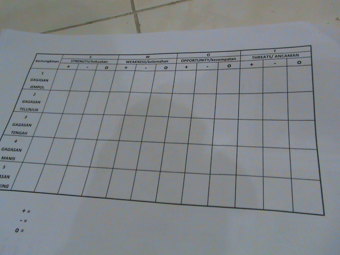 - Lembar analisis SWOT, dengan penjabaran sbb: