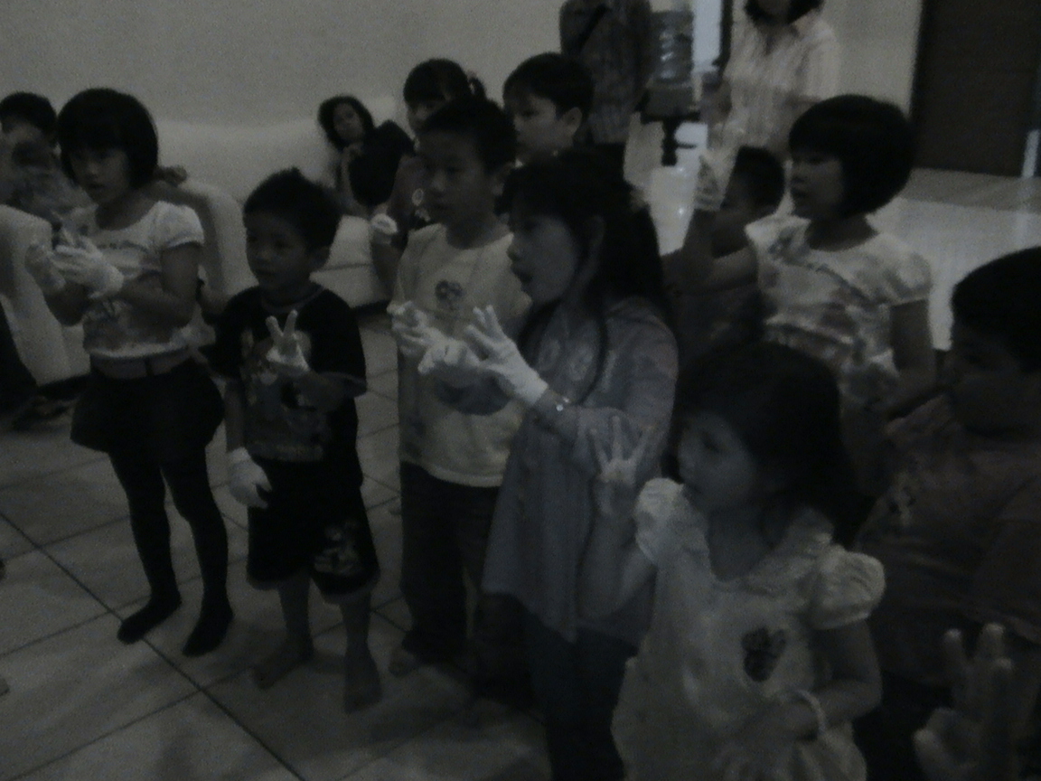 - Jika presentasi di atas terlalu sulit untuk mereka, maka kita bisa menggunakan Plan B, yaitu kita bercerita secara singkat dengan jari-jari, tugas anak-anak yang maju hanya berbaris rapi dan menirukan gerakan jari mana yang kita gerakkan, sesuai dialoge, mereka juga ikut menggerakkan, dan harus kompak serta konsentrasi.
