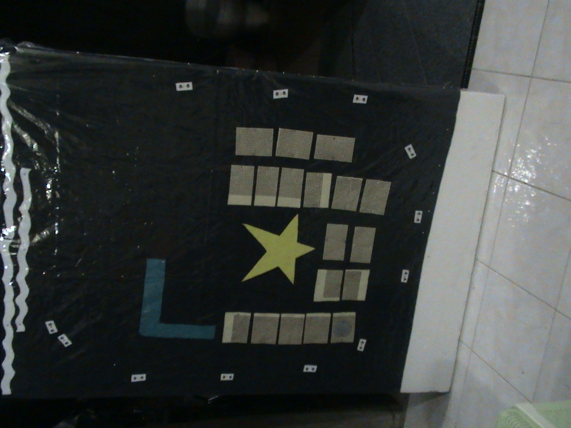 - DENAH AWAL yang dibuat di komputer sebelum anda memindahkannya di atas Board. Tanpa denah awal ini , tentu anda akan mengalami kesulitan dalam menentukan letak, ukuran dan design kain flanel. Denah ini sudah dicopy per anak (atau bisa juga denah hanya dipegang oleh guru pemandu permainan lidi tancap)