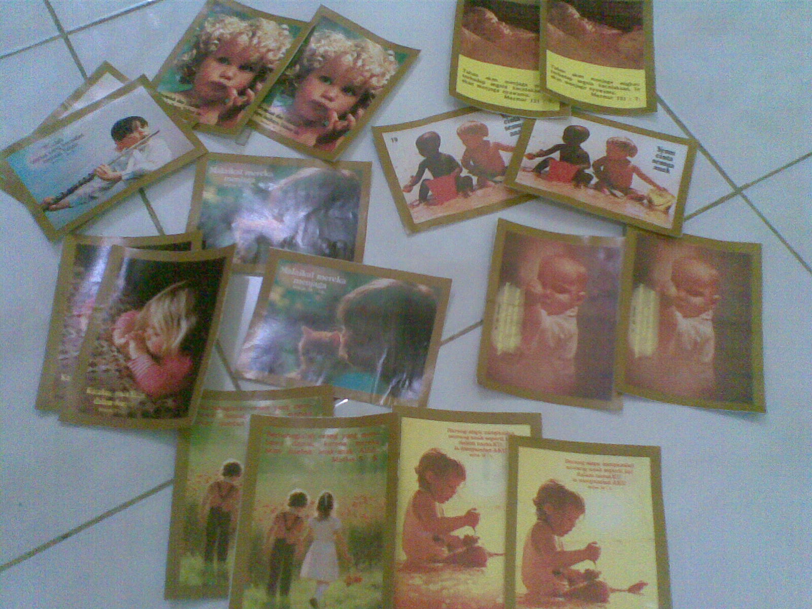 - Belilah kartu gambar sobek yang ada di toko buku Kristen, setiap lembarnya belilah dua lembar ( sehingga anda mendapatkan tiap gambarnya, sepasang kartu kembar)