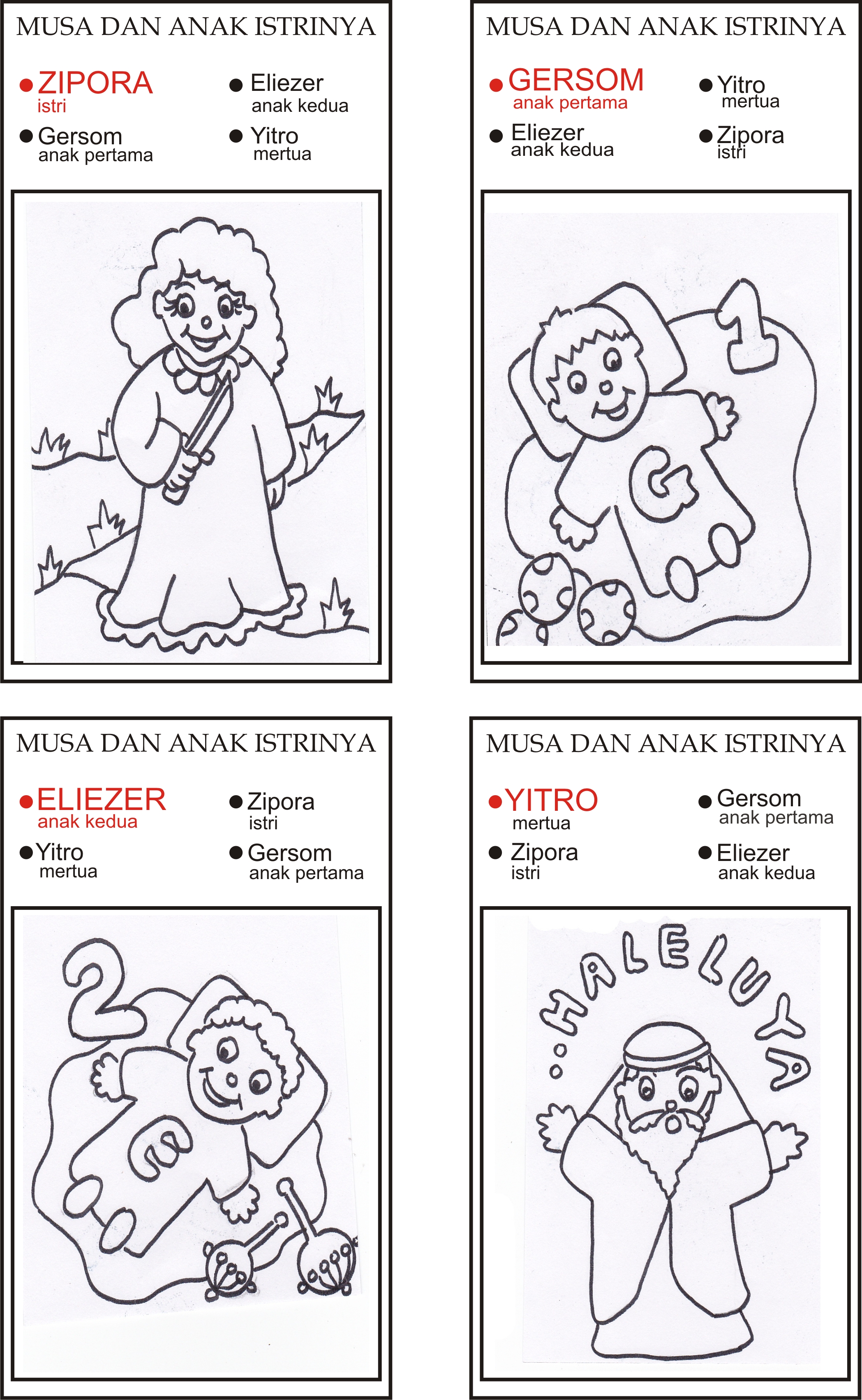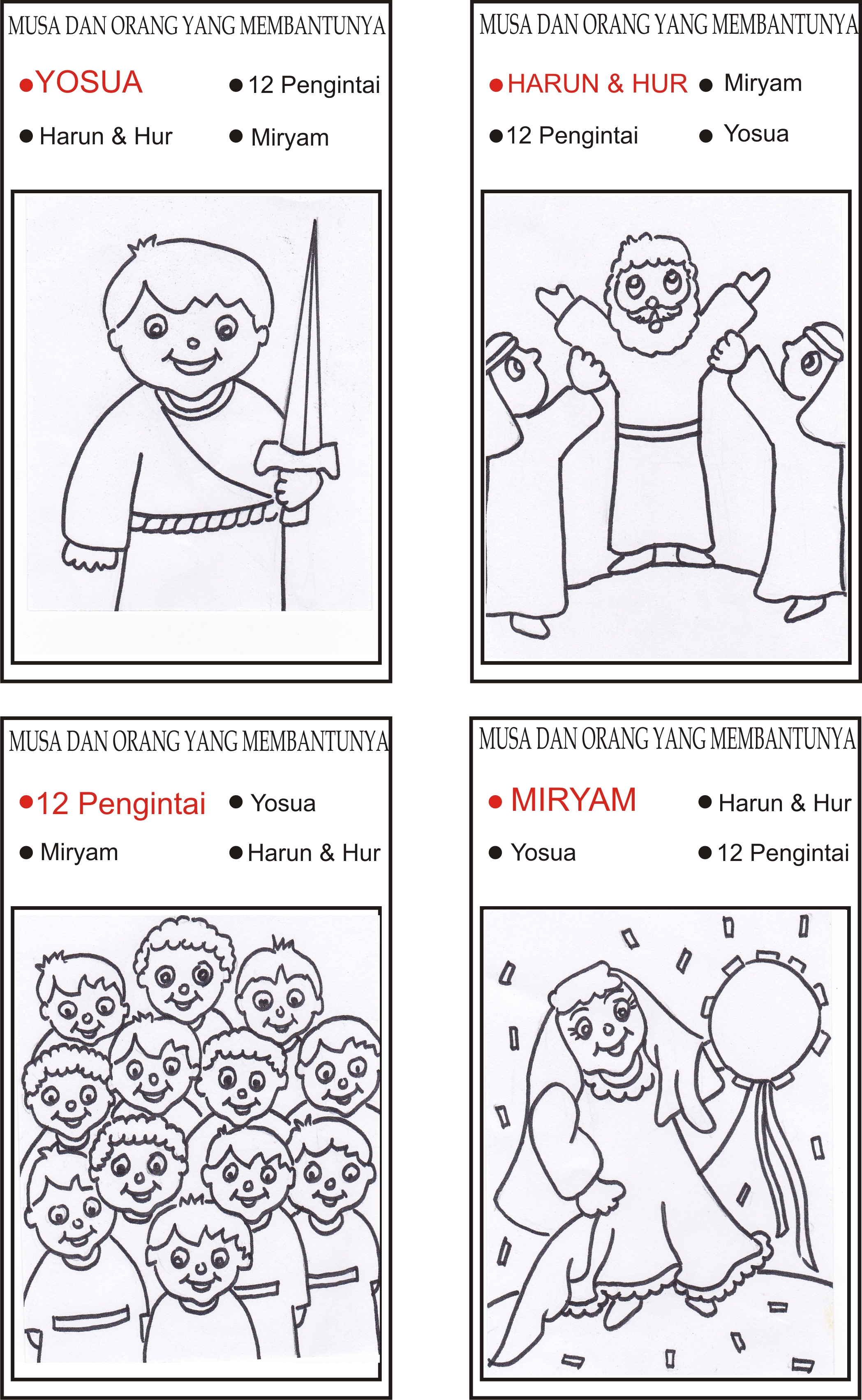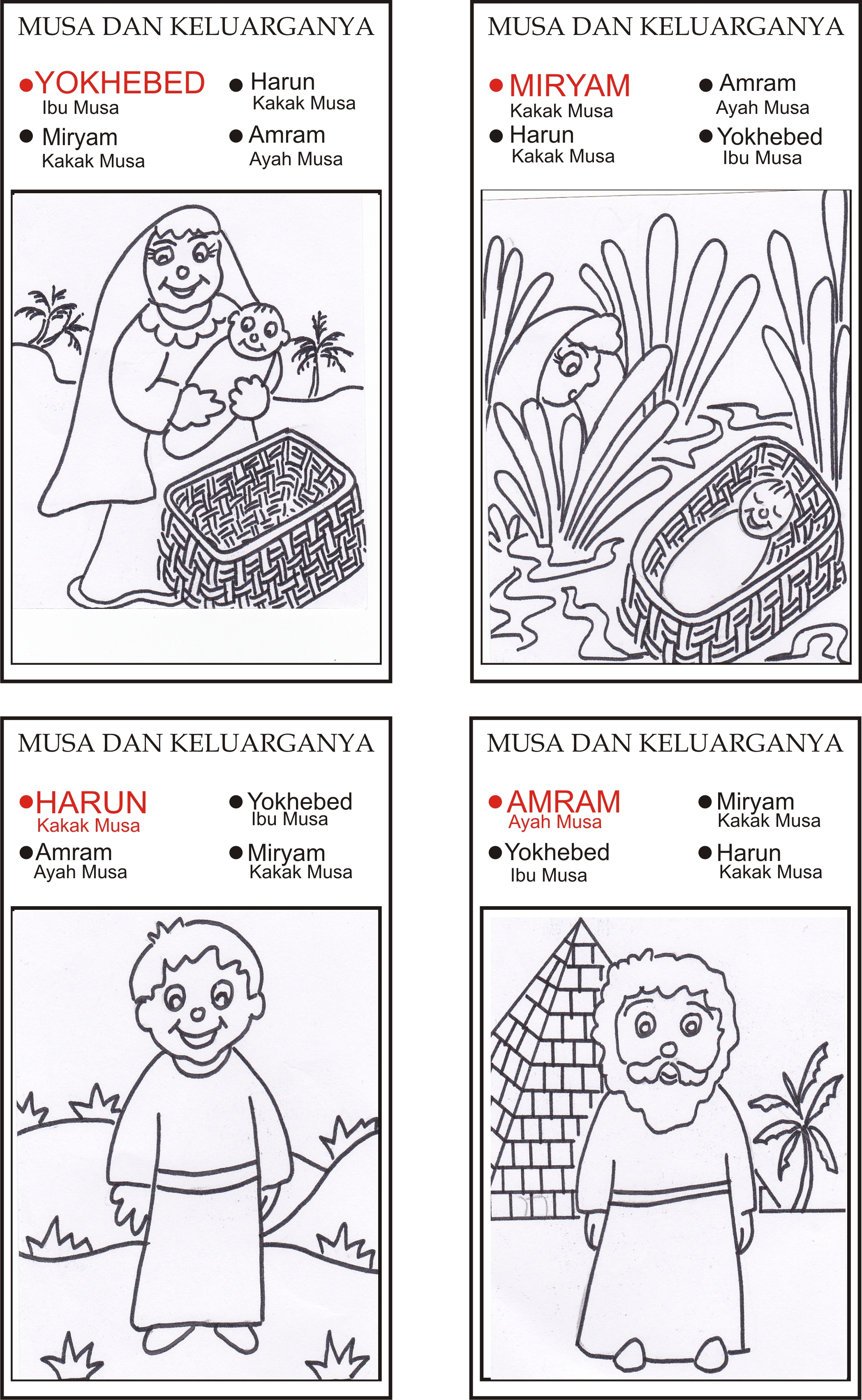 Akan tetapi karna keterangan selebihnya juga kita perlukan, maka anda saya sarankan untuk membuat kartu keterangan kwartet, yang memuat semua keterangan, misalnya tercantum Yokhebed; ibu Musa yang menyembunyikan bayi kecil Musa, dst.