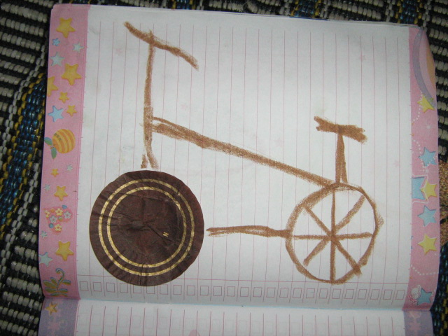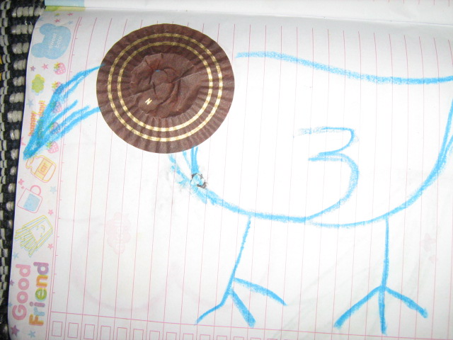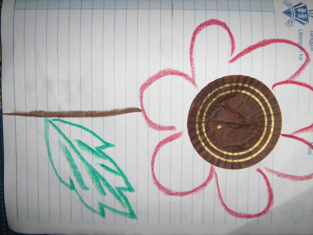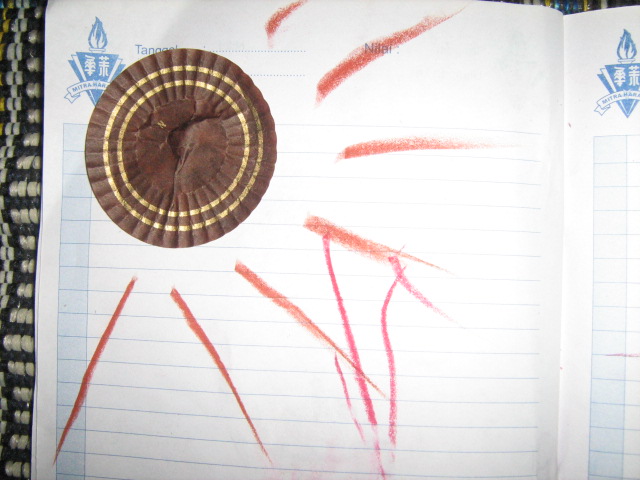 Gambarkan apa saja melalui kertas kue ini. Mungkin anda ingin menjadikan kertas kue ini sebagai Matahari yang bersinar, yang perlu anda lakukan tinggal menempelkannya di kertas ini, lalu bubuhkan sinar dengan goresan cryon.