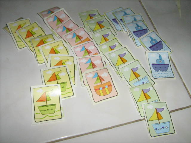 2. Acak semua gambar, dan setiap anak mendapat 3 gambar yang lengkap, misal perahu hijau, perahu kuning, perahu merah, setelah itu minta setiap anak mendapat 3 gambar lengkap sesuai contoh yang dia dapatkan