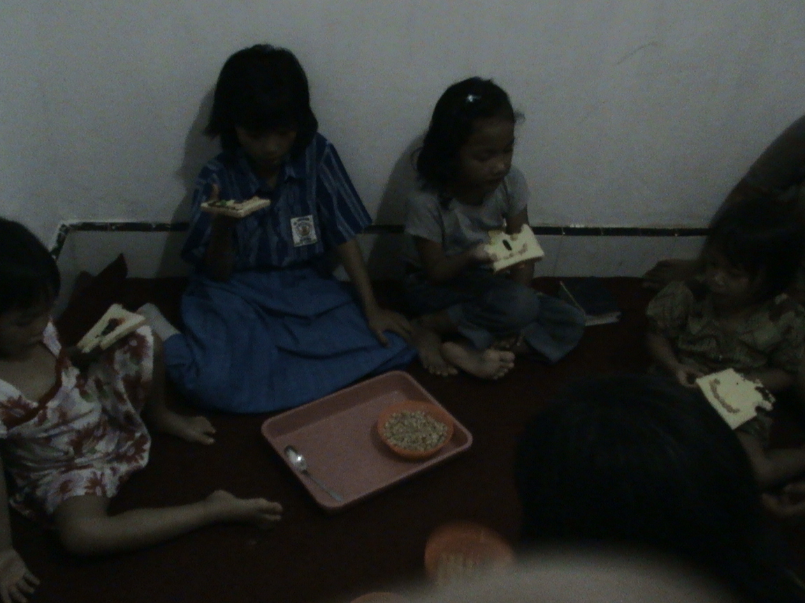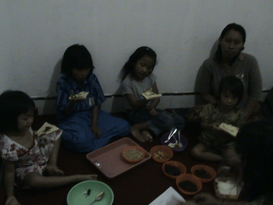 Ayo sekarang kita buat roti dengan wajah tersenyum, saat teman kita sukacita karna dapat kado, karna mainannya baru, karna ulang tahunnya dirayakan, kita tidak perlu iri padanya, tetapi kita mau ikut bersukacita dengan dia, sebaliknya kalau teman kita sedang sedih, kita juga harus ikut merasakan kesedihannya, jangan sampai kalau teman kita sedih kita malah senang…’horeeee kapok ya kamu..’, itu sikap yang tidak baik