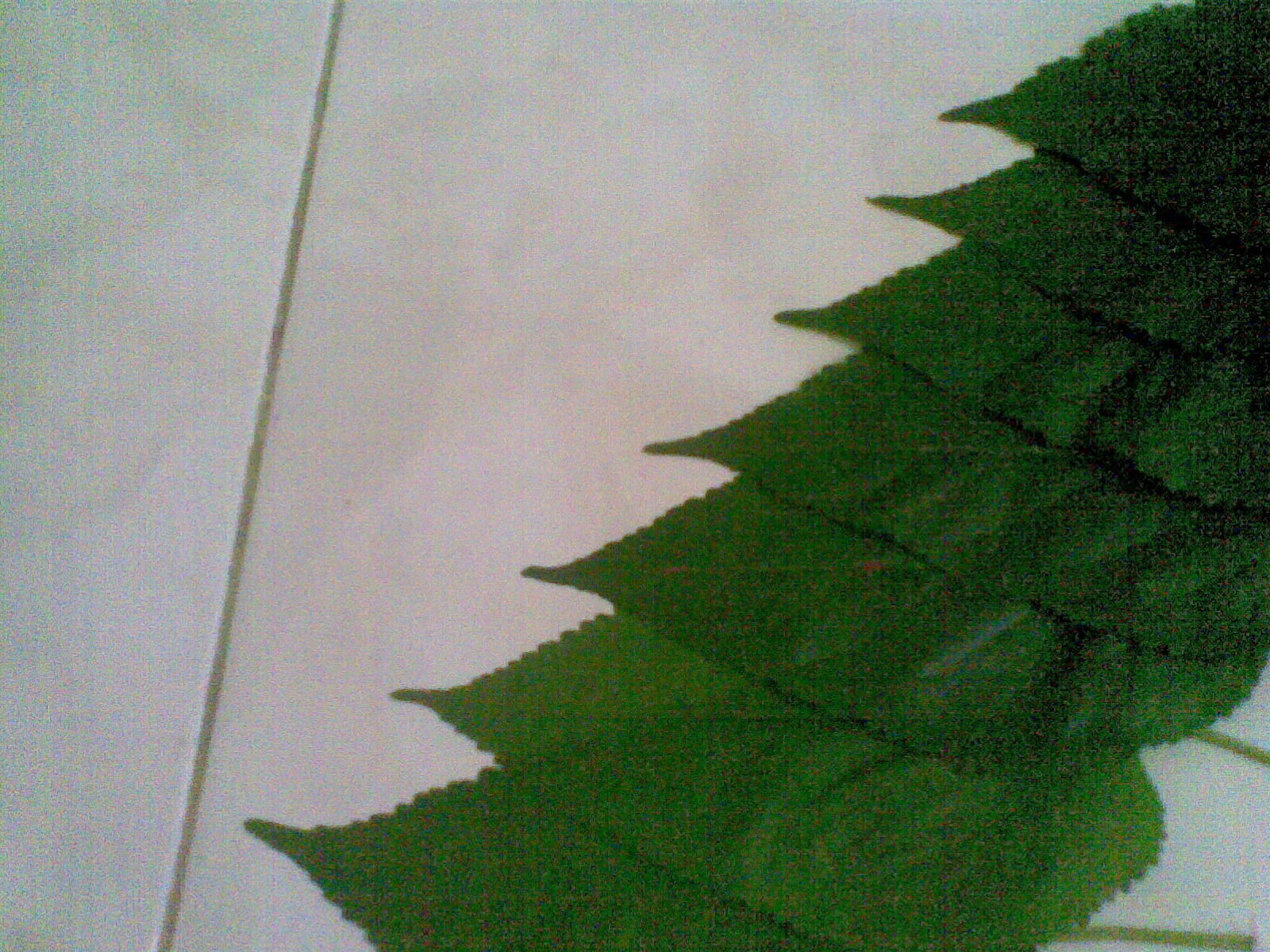 Menjiplak Daun dengan menggunakan 7 lembar daun untuk membentuk anak tangga naik, dan menggunakan 7 lembar daun untuk membentuk anak tangga turun.