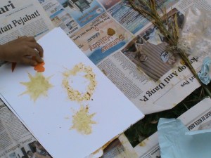 CORAT CORET DENGAN MEDIA ALAM DAN PEWARNA ALAM- AKTIVITAS PAUD