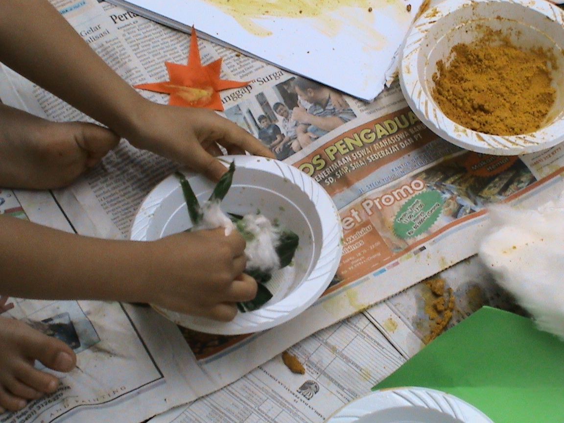 CORAT CORET DENGAN MEDIA ALAM DAN PEWARNA ALAM- AKTIVITAS PAUD