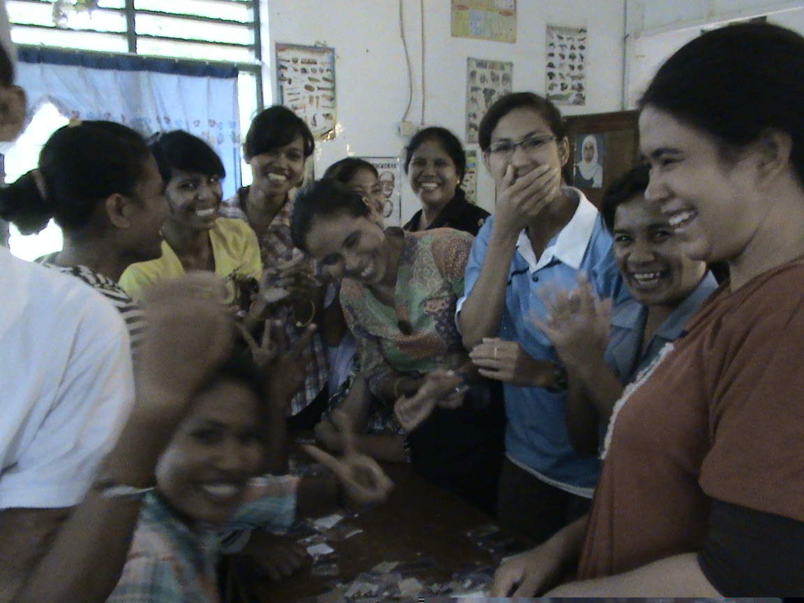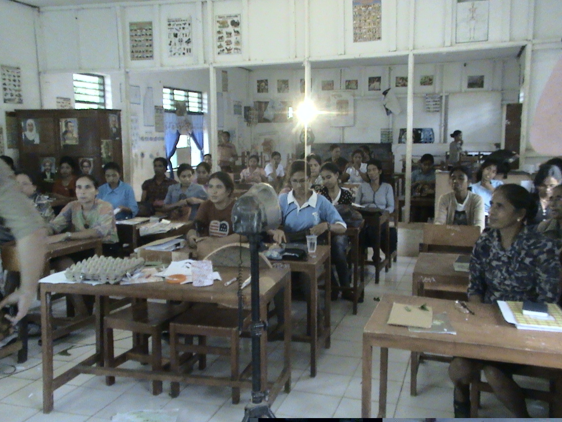 1. Asalnya saya kebingungan, karena panitia meminta salah satu sesinya Memimpin Pujian Kreatif, nah lo…gimana nih…?? Apakah saya harus bawa keyboardis…ataukah ini saat yang tepat untuk mulai melatih anggota pelatihan gelombang 1 untuk mulai menemani saya seminar sambil saya sendiri yang akan iringi. Dengan berpindahnya tempat dari Wolasi ke Amoito (yang lebih dekat tentunya)- saya mengambil keputusan untuk mengajak ibu Neno Laembo Soumokil mengajar sesi Pujian Kreatif, dan saya geser menjadi keyboardis di sesi ini- yang tentunya garing kalau nggak pake musik. Puji Tuhan…beliau ada waktu, ada semangat, walau persiapan cukup dadakan, tetapi beliau mau datang lebih awal senin kemarin untuk berlatih dengan saya. Dan double porsinya adalah, beliau juga asisten saya mengajar sesi alat peraga kreatif. Hmmmmm bisa dilirik ini kapasitas beliau, keren !! Siap-siap melihat potensi-potensi lainnya dari peserta gelombang 1 yang bisa dipoles poles ini..