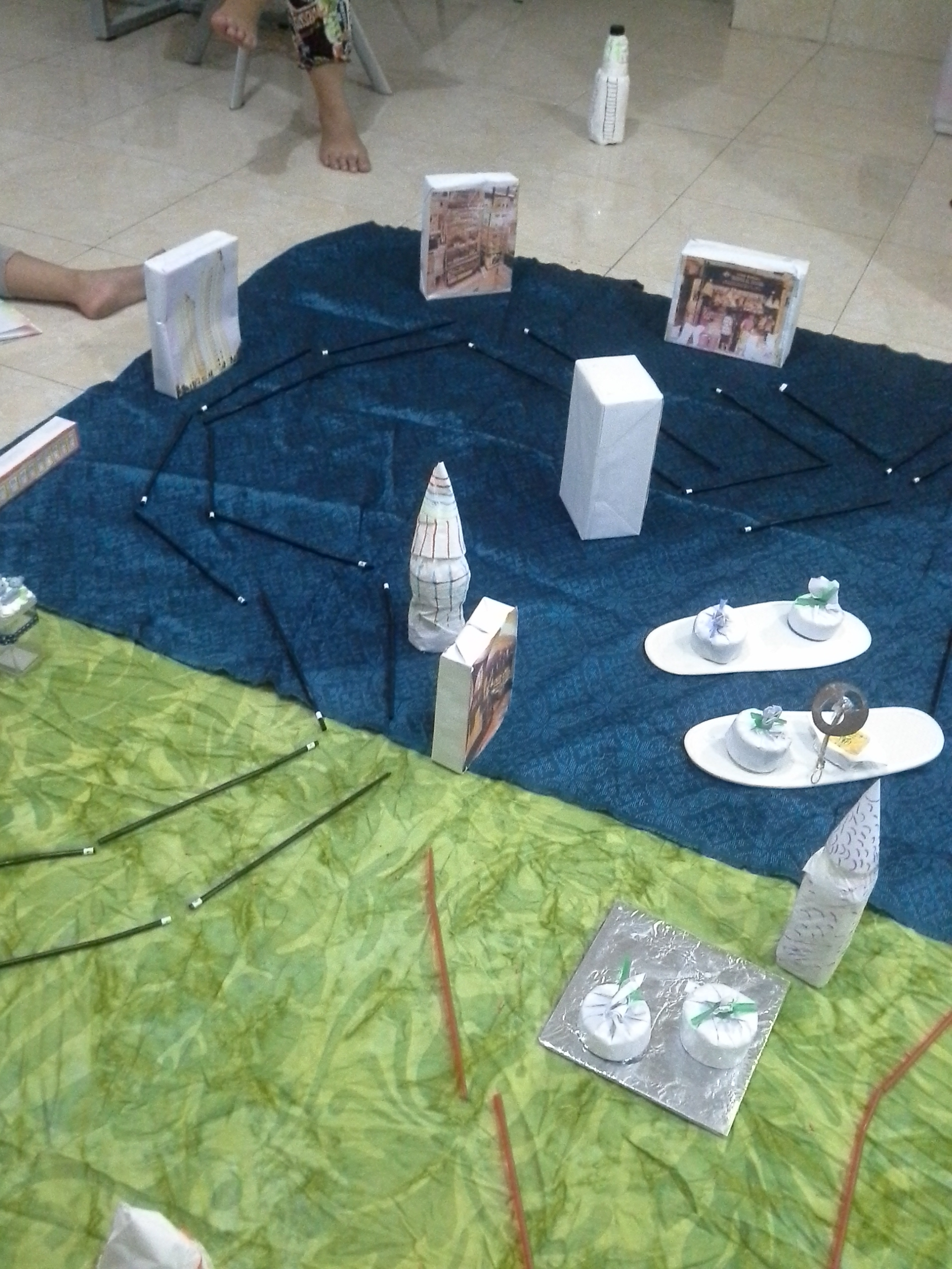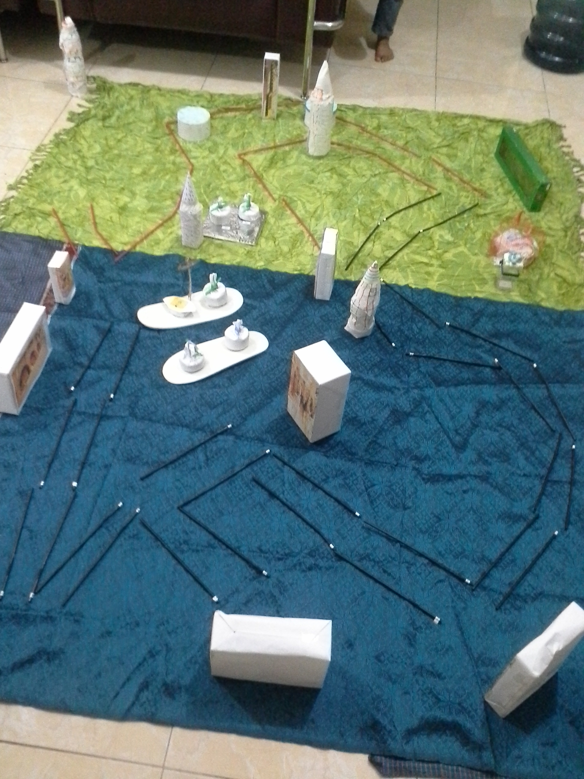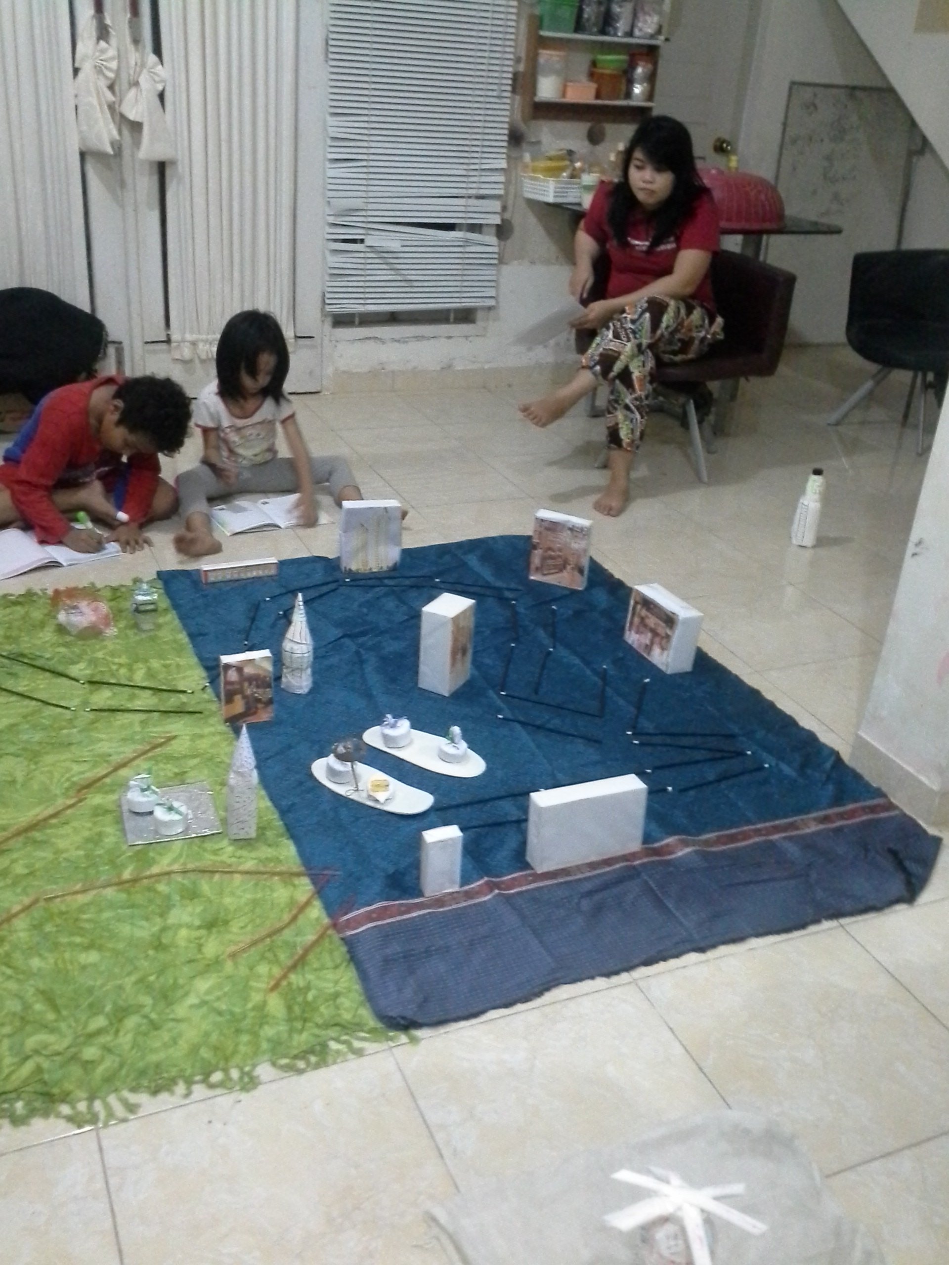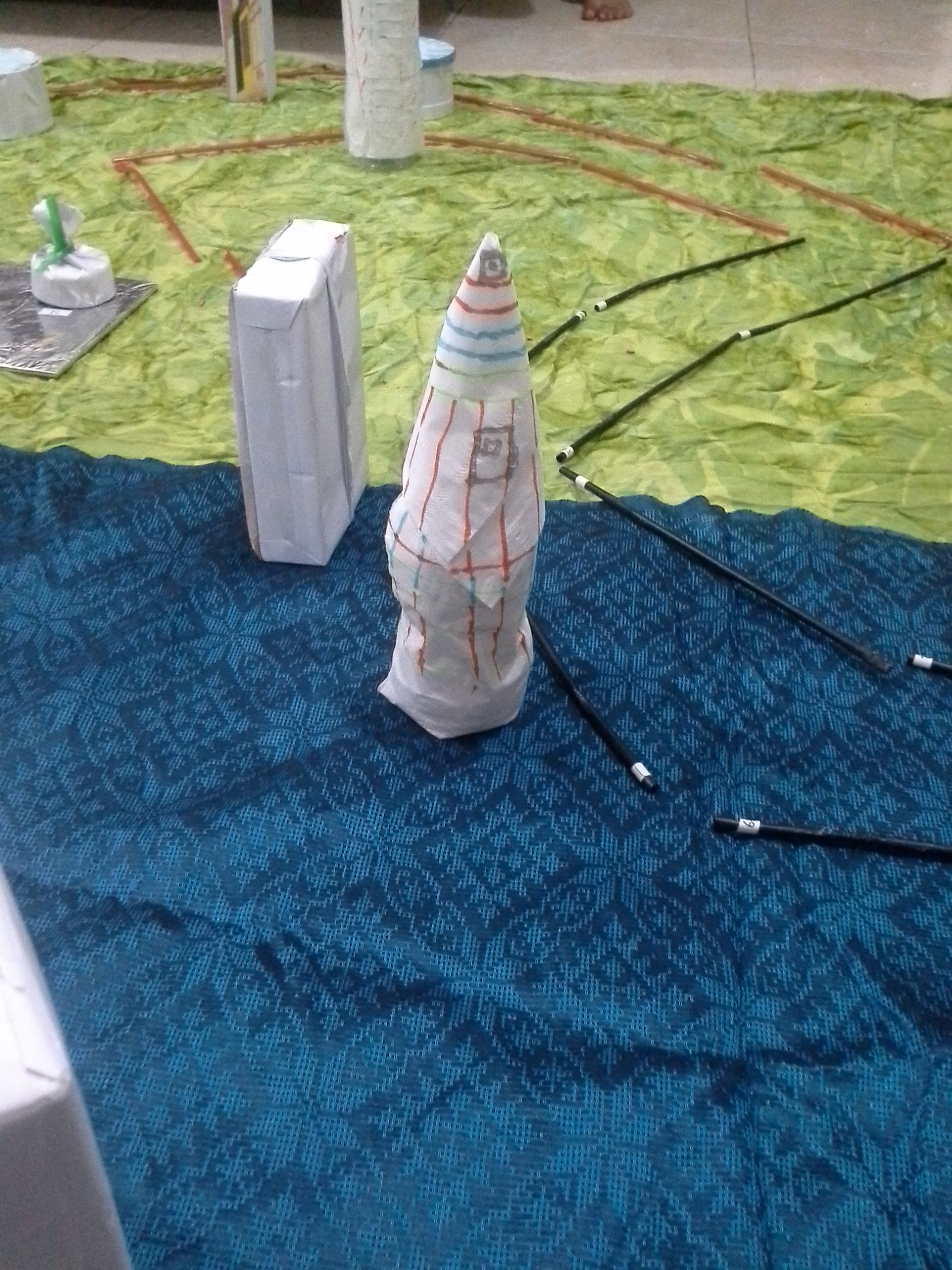 - Memindah letak menara yang telah diacak oleh guru kepada tempat yang sebenarnya