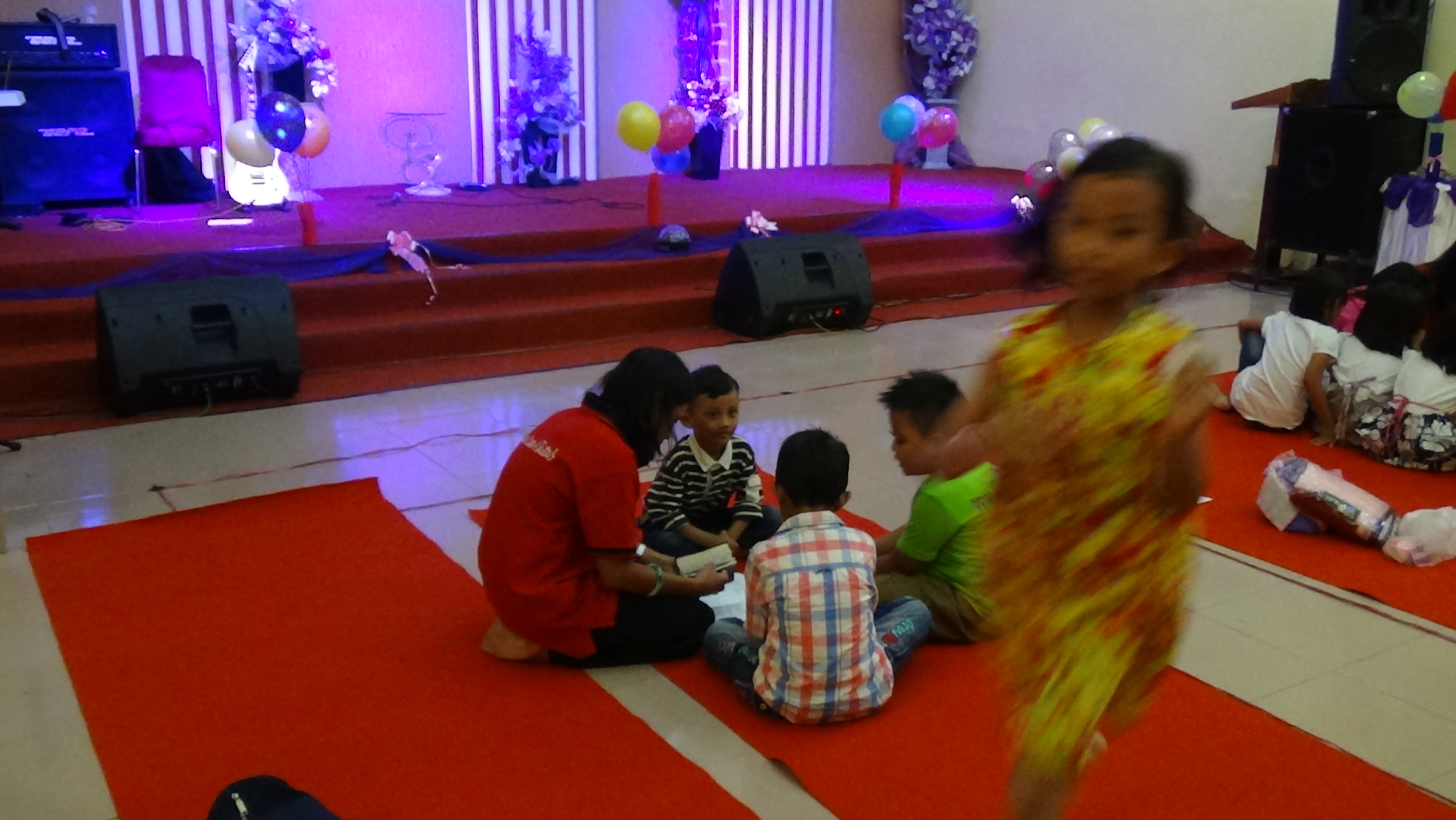 - Anak-anak dibagi dalam kelompok oleh panitia. Dengan usia CAMPUR, kelas kecil-tengah-besar
