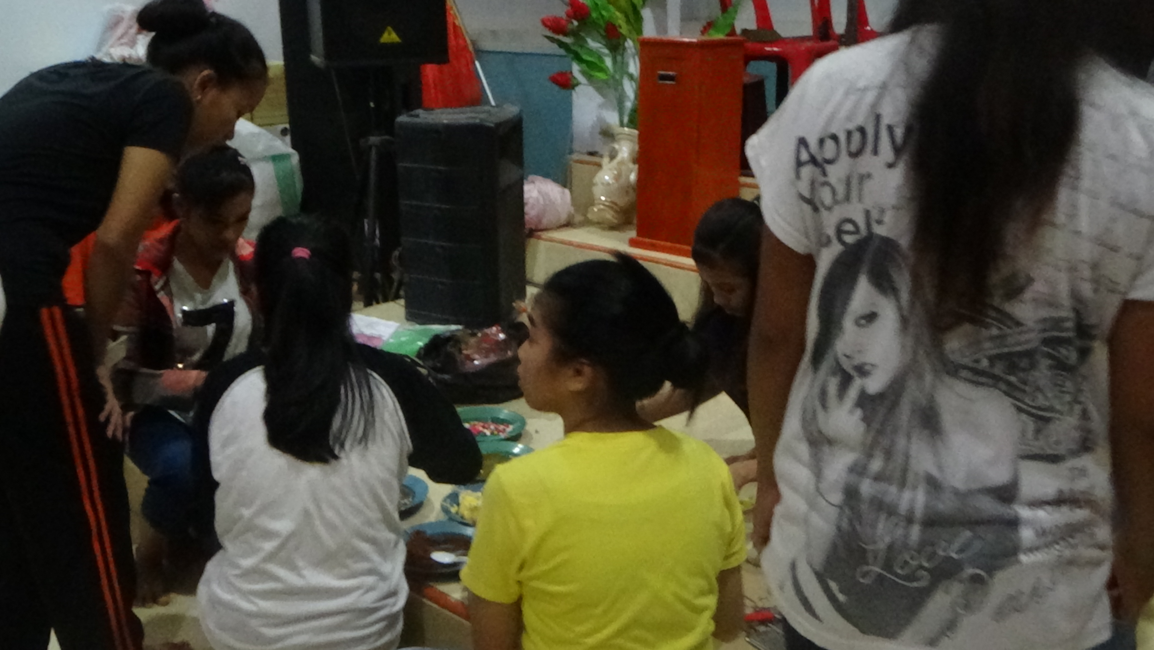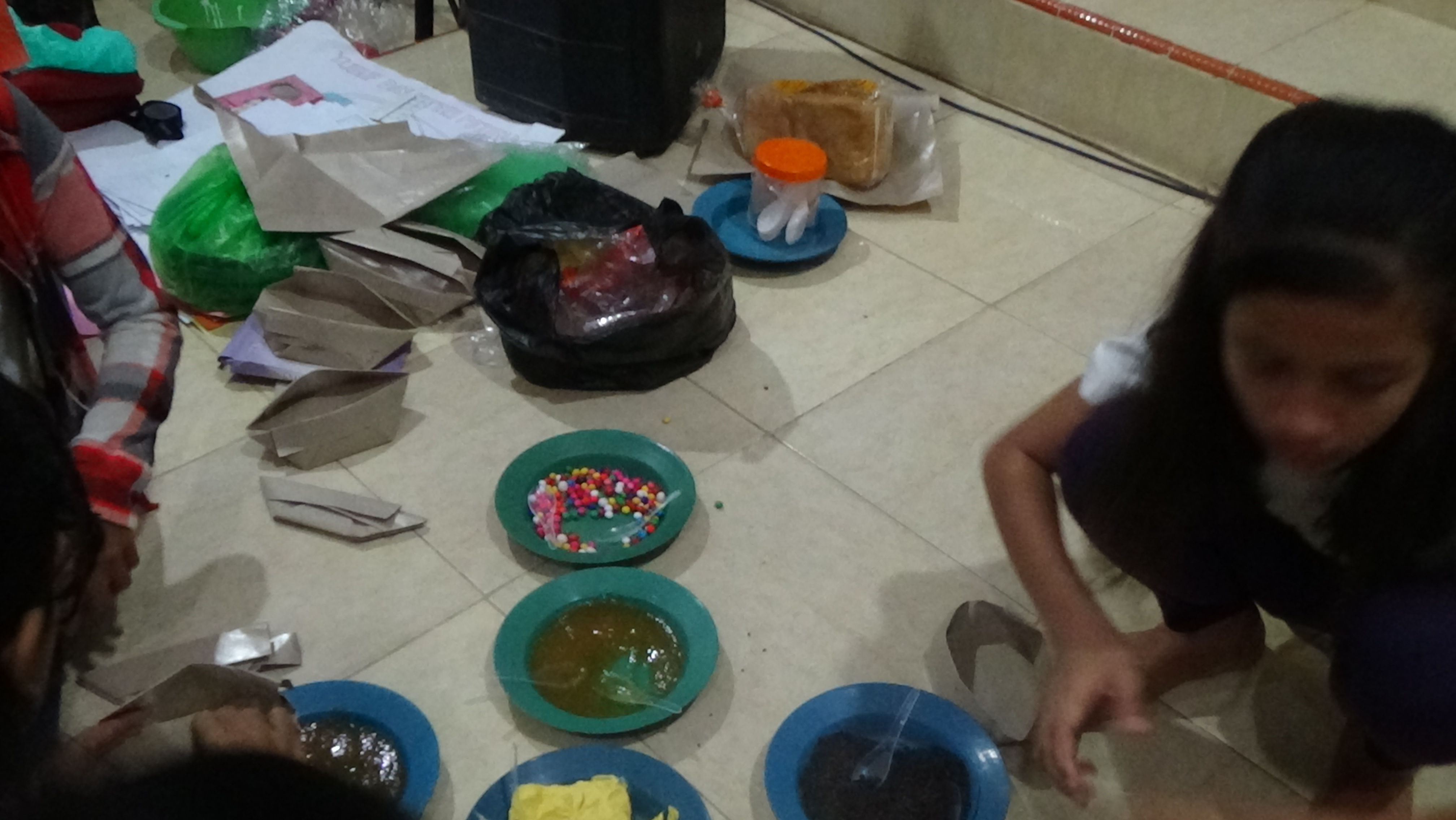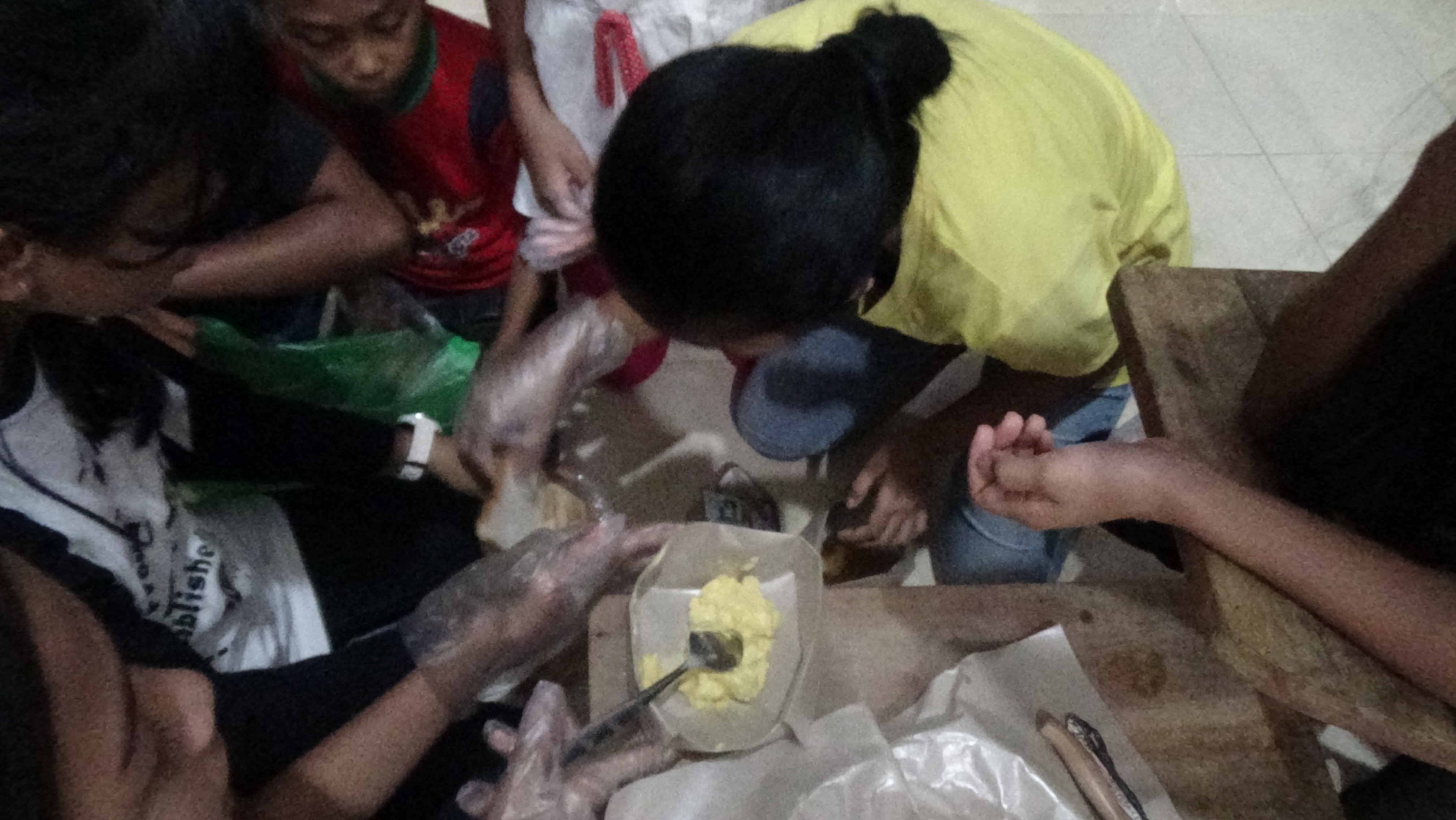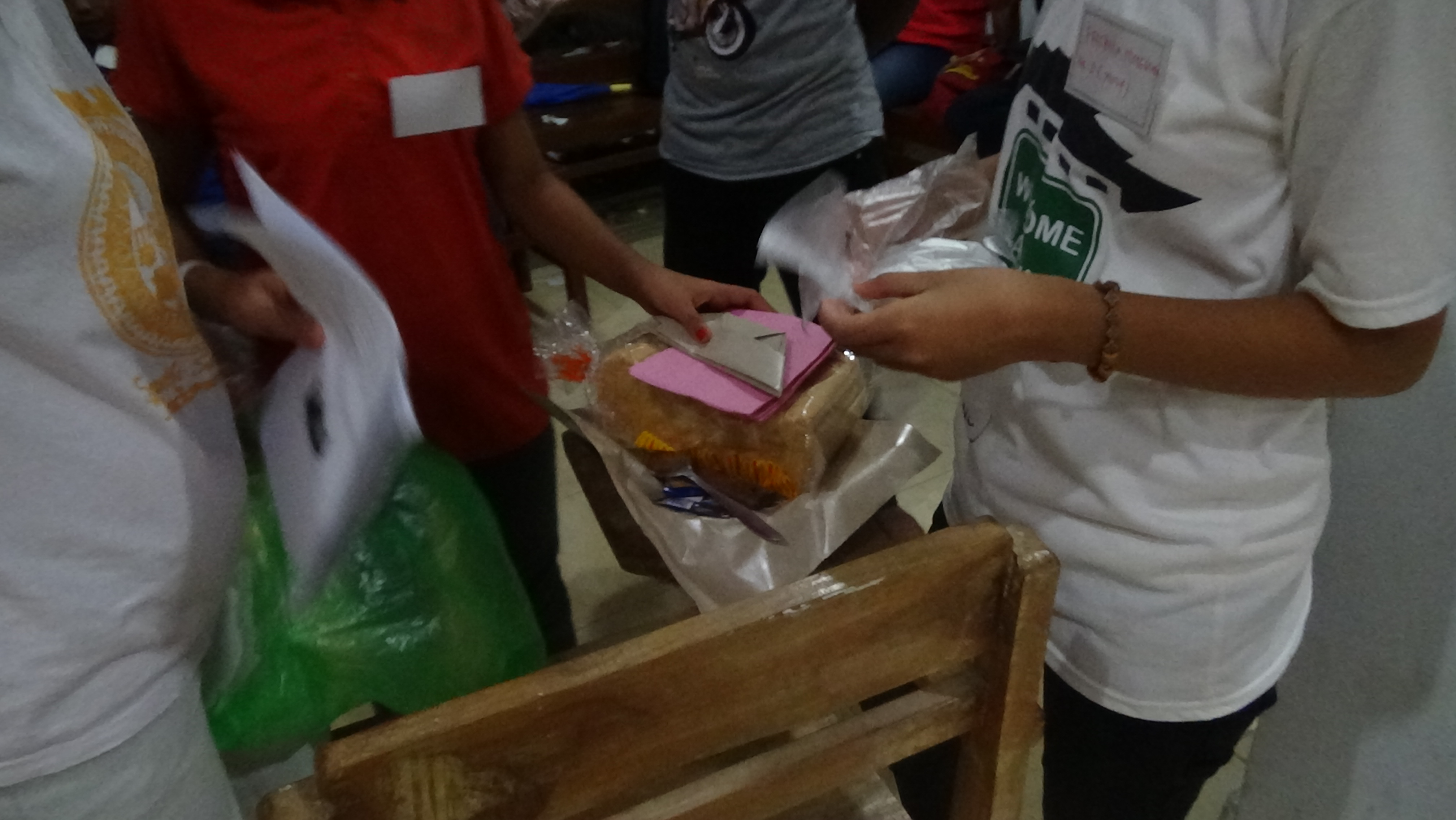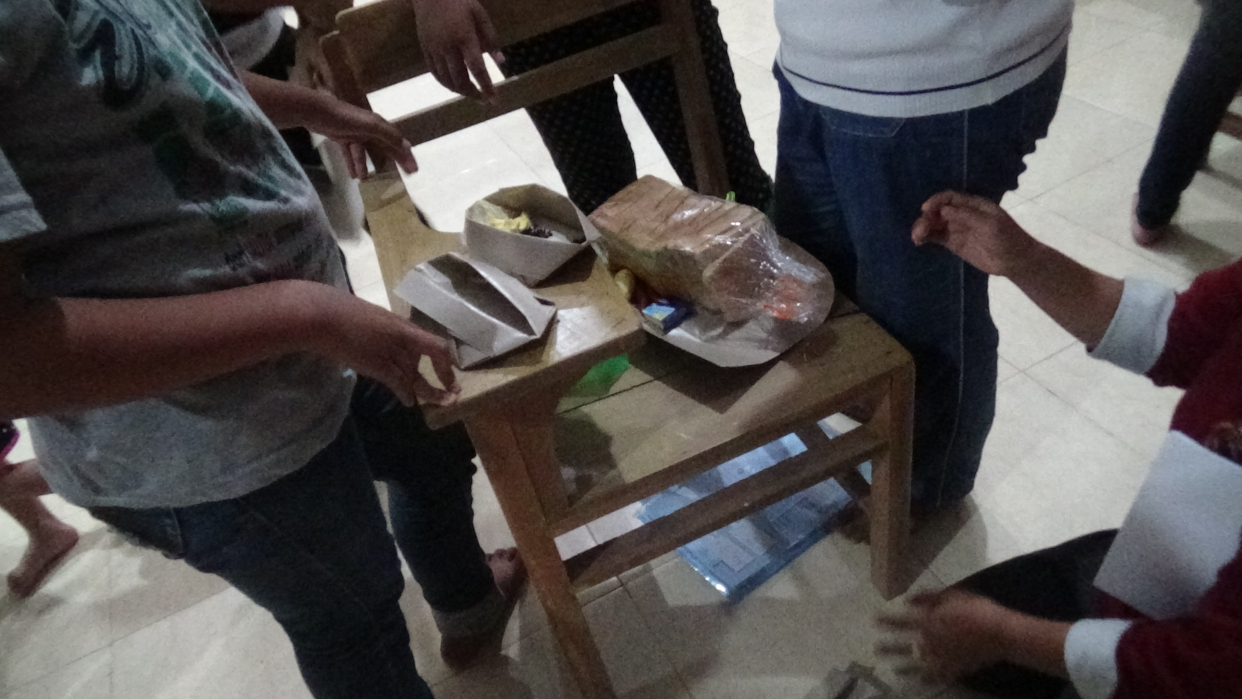 - Masing-masing kelompok mendapat 10 mangkok plastik, untuk mereka menaruh meises, dll ( biar mereka mengatur sendiri, agar mereka mandiri dalam membagi tugas dan peralatan serta bahan, jadi meises, keju, dll jangan dituangkan oleh panitia