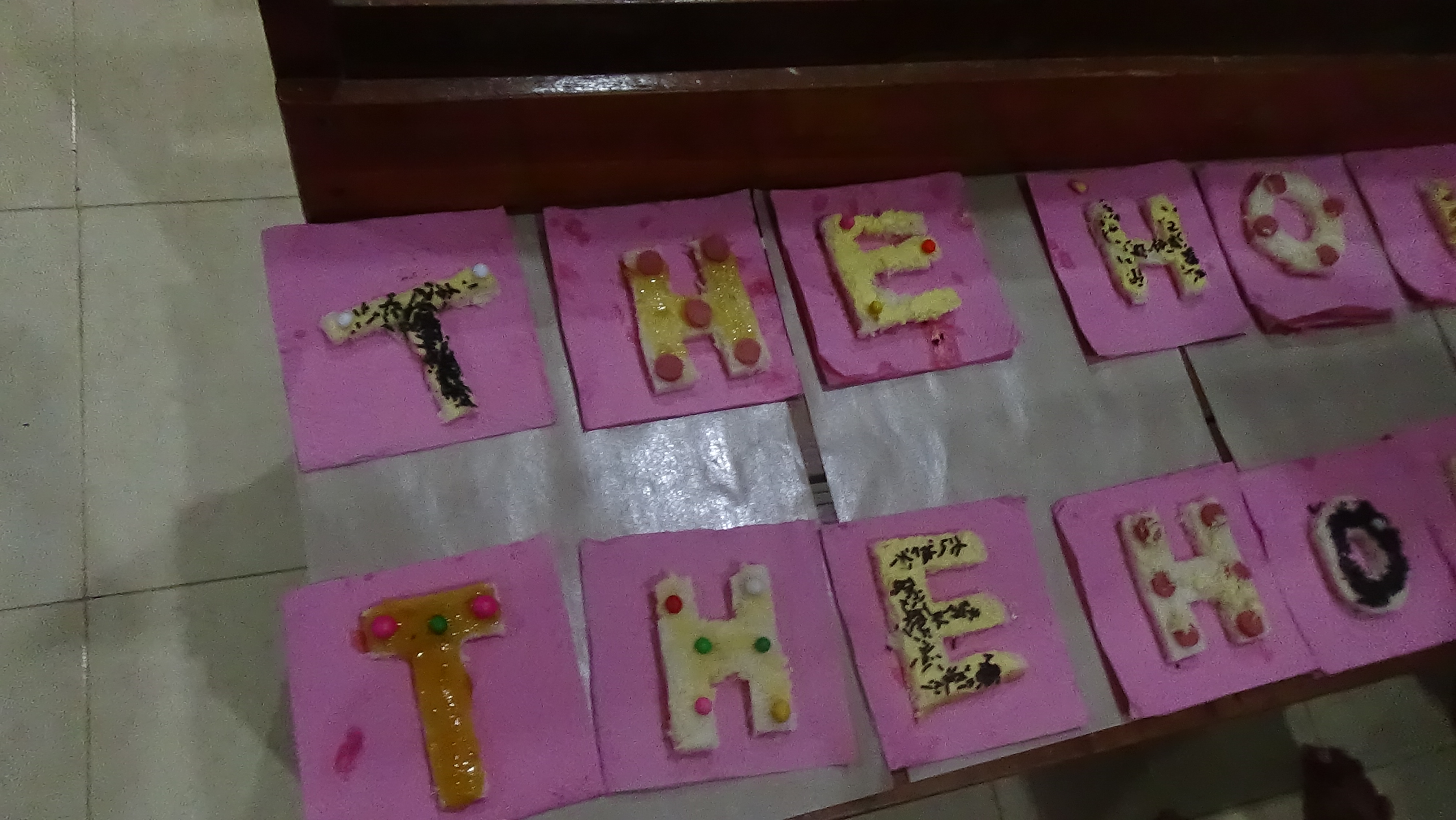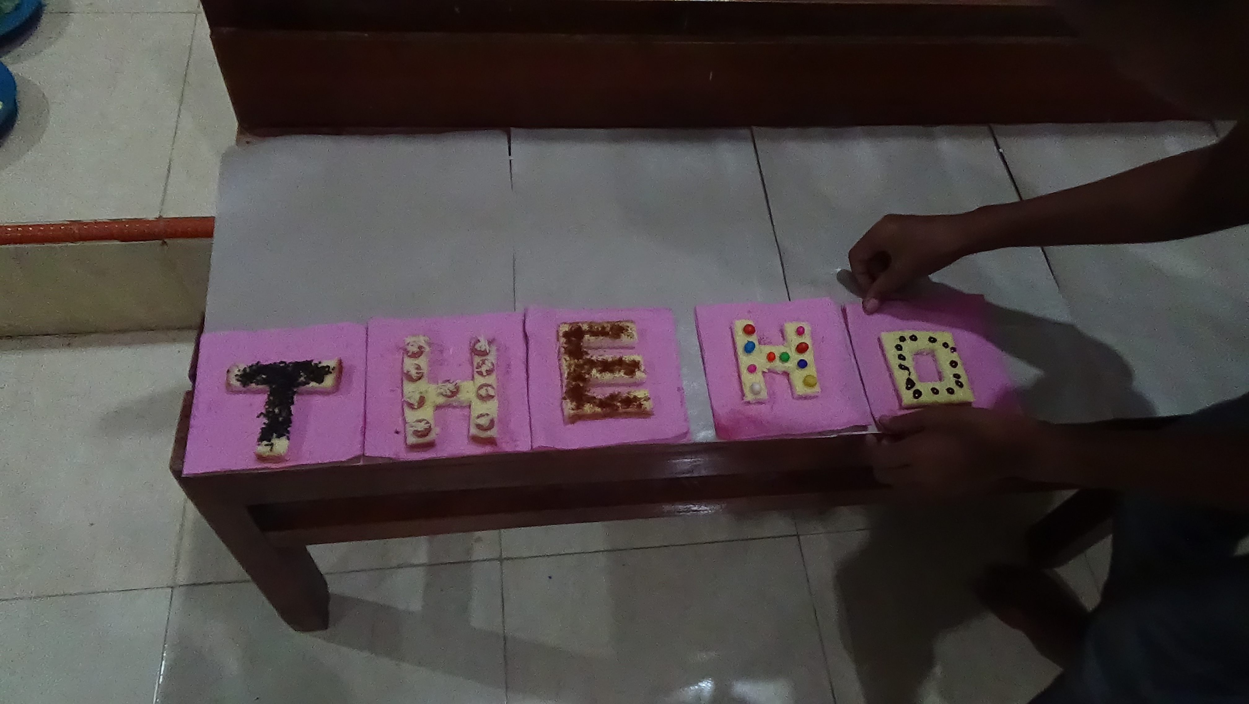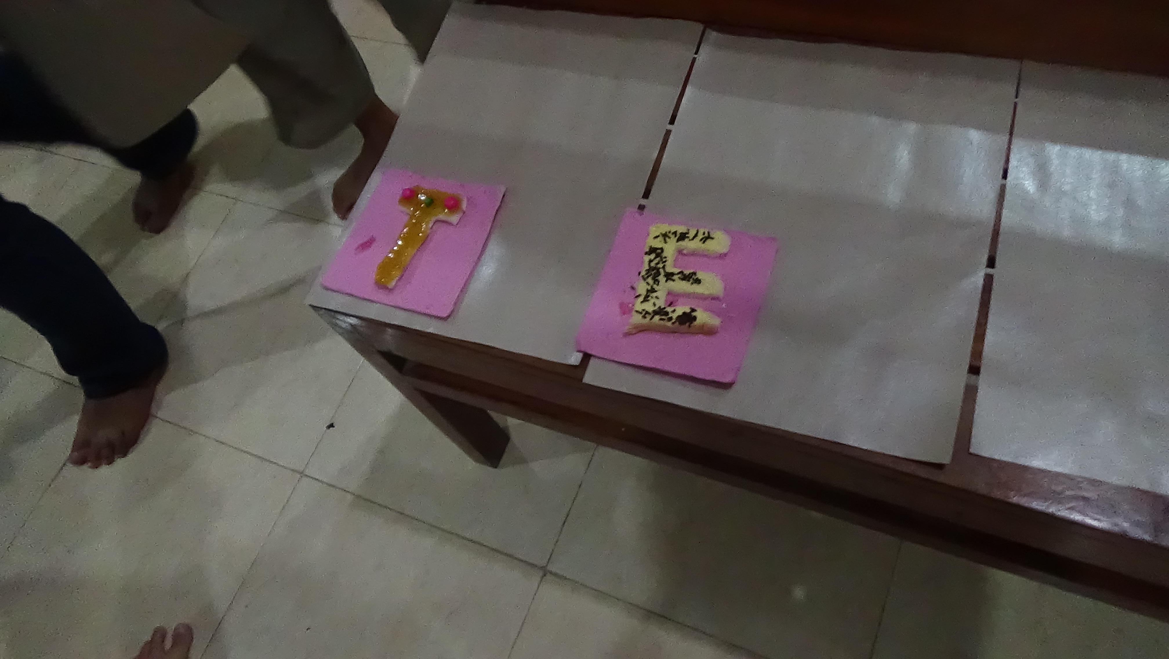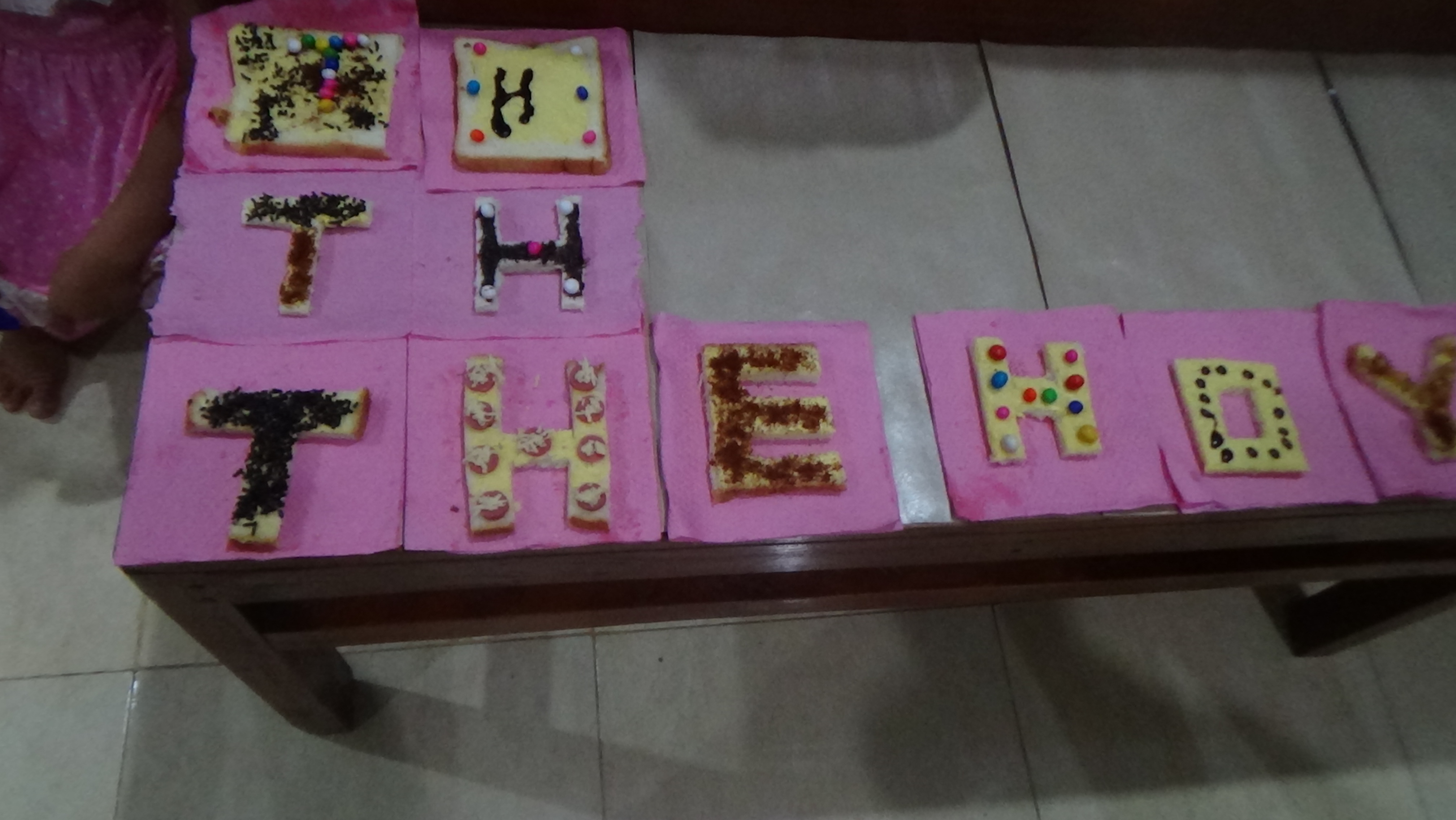 Jadi dalam kelompok A misalnya, anak pertama akan mendapat tugas membuat hiasan roti dengan inisial T, anak kedua, masih dalam kelompok A, akan mendapat tugas membuat hiasan roti dengan inisial H, dst