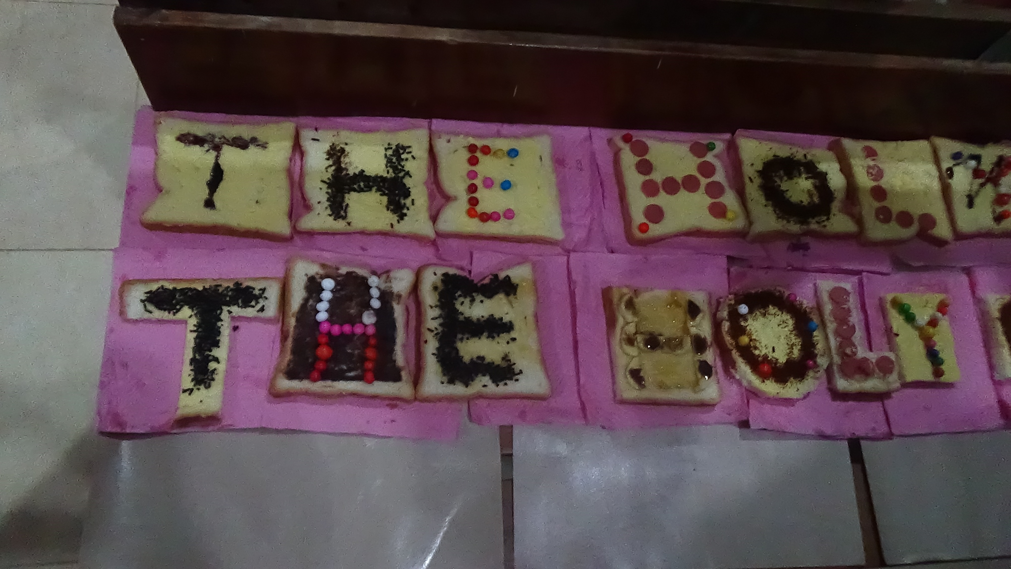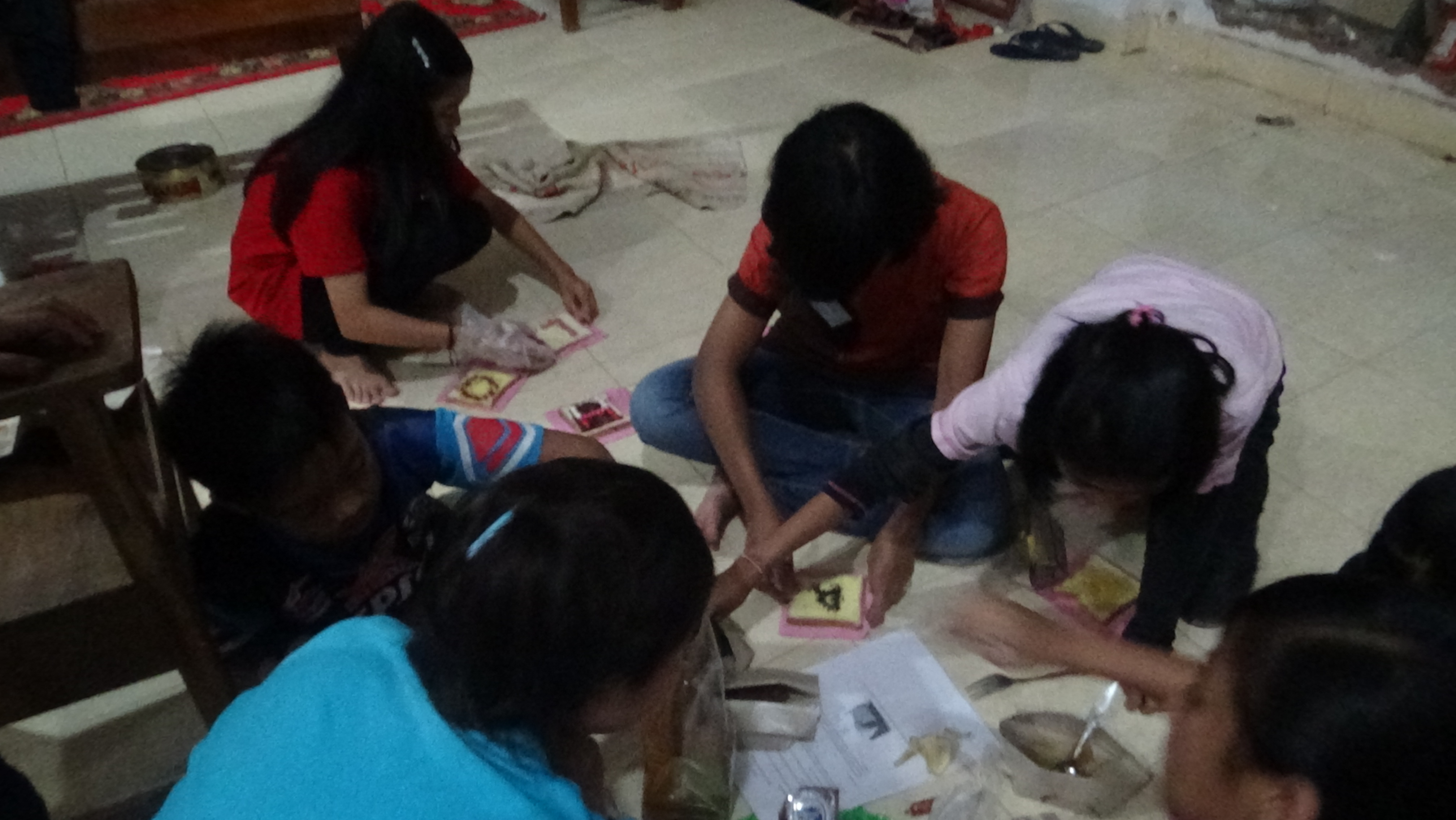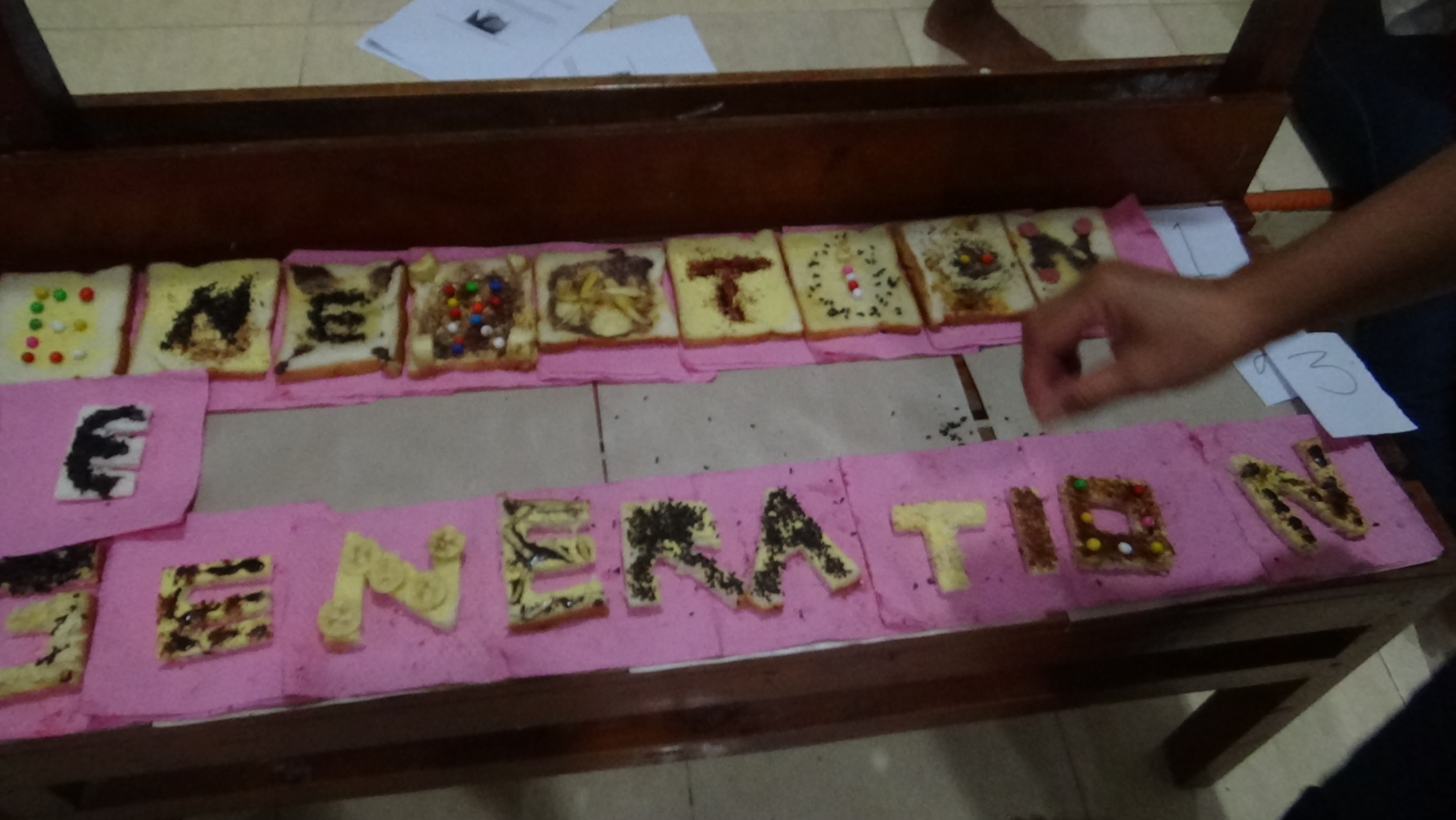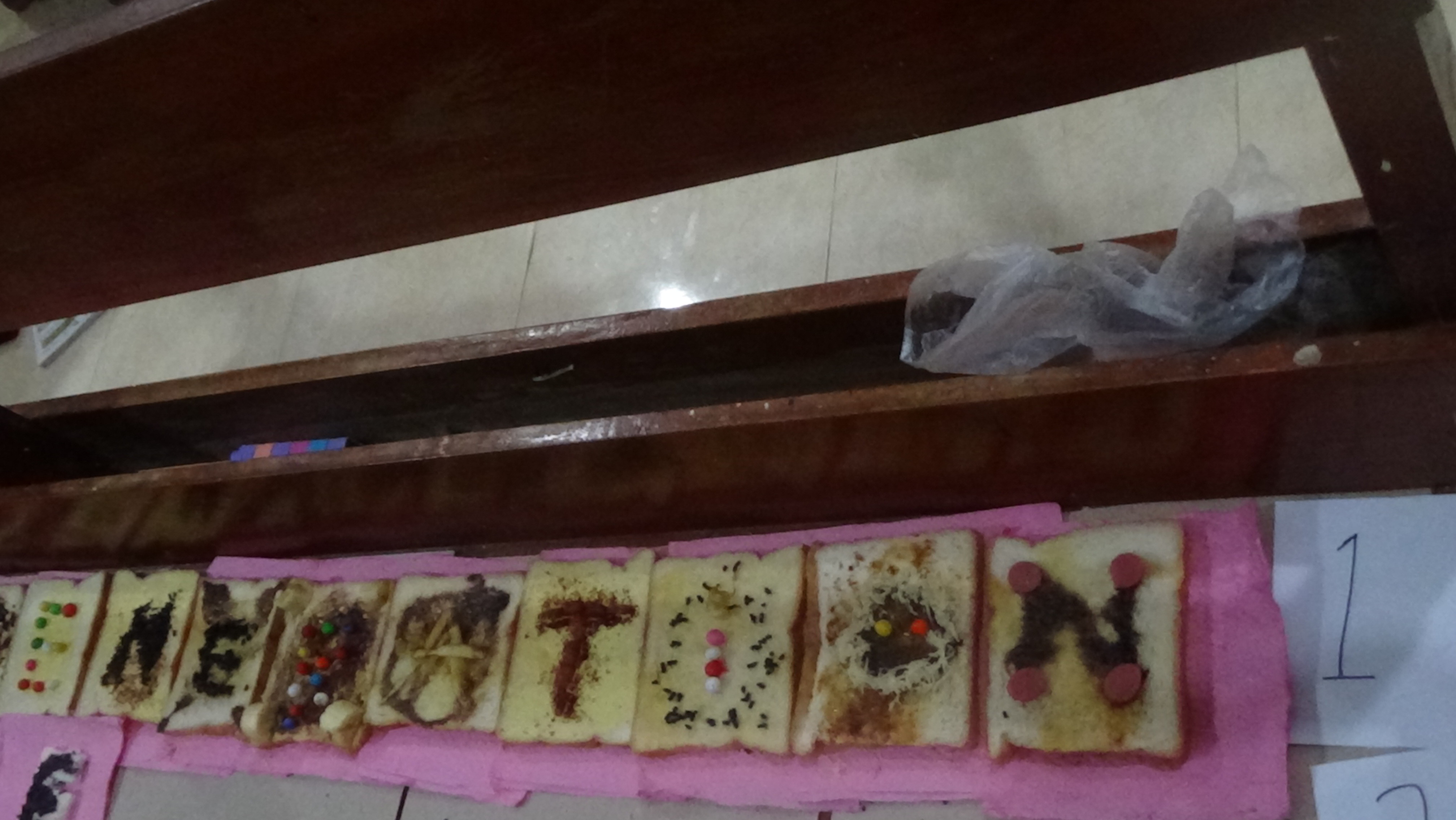 Jadi dalam kelompok A misalnya, anak pertama akan mendapat tugas membuat hiasan roti dengan inisial T, anak kedua, masih dalam kelompok A, akan mendapat tugas membuat hiasan roti dengan inisial H, dst