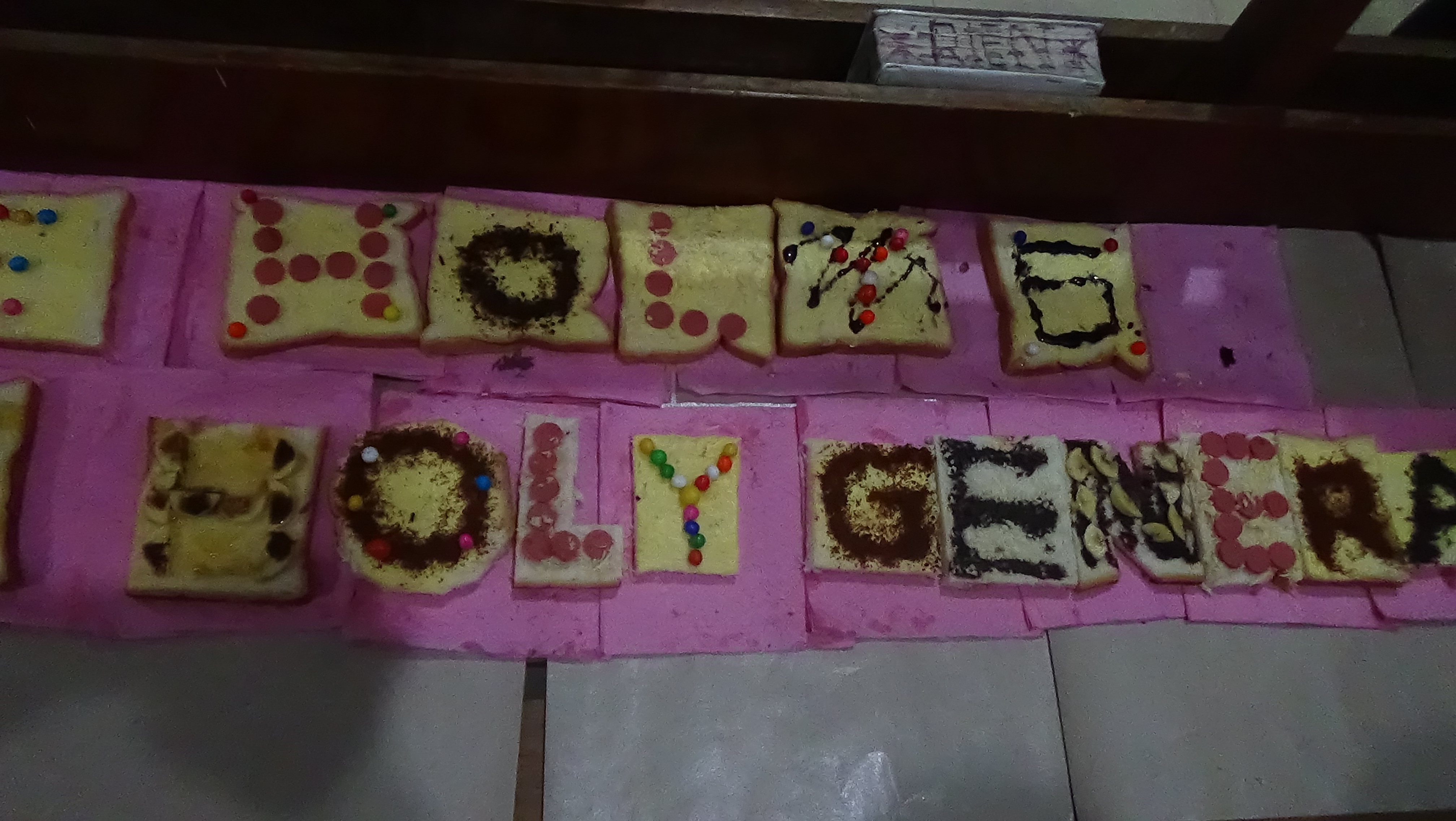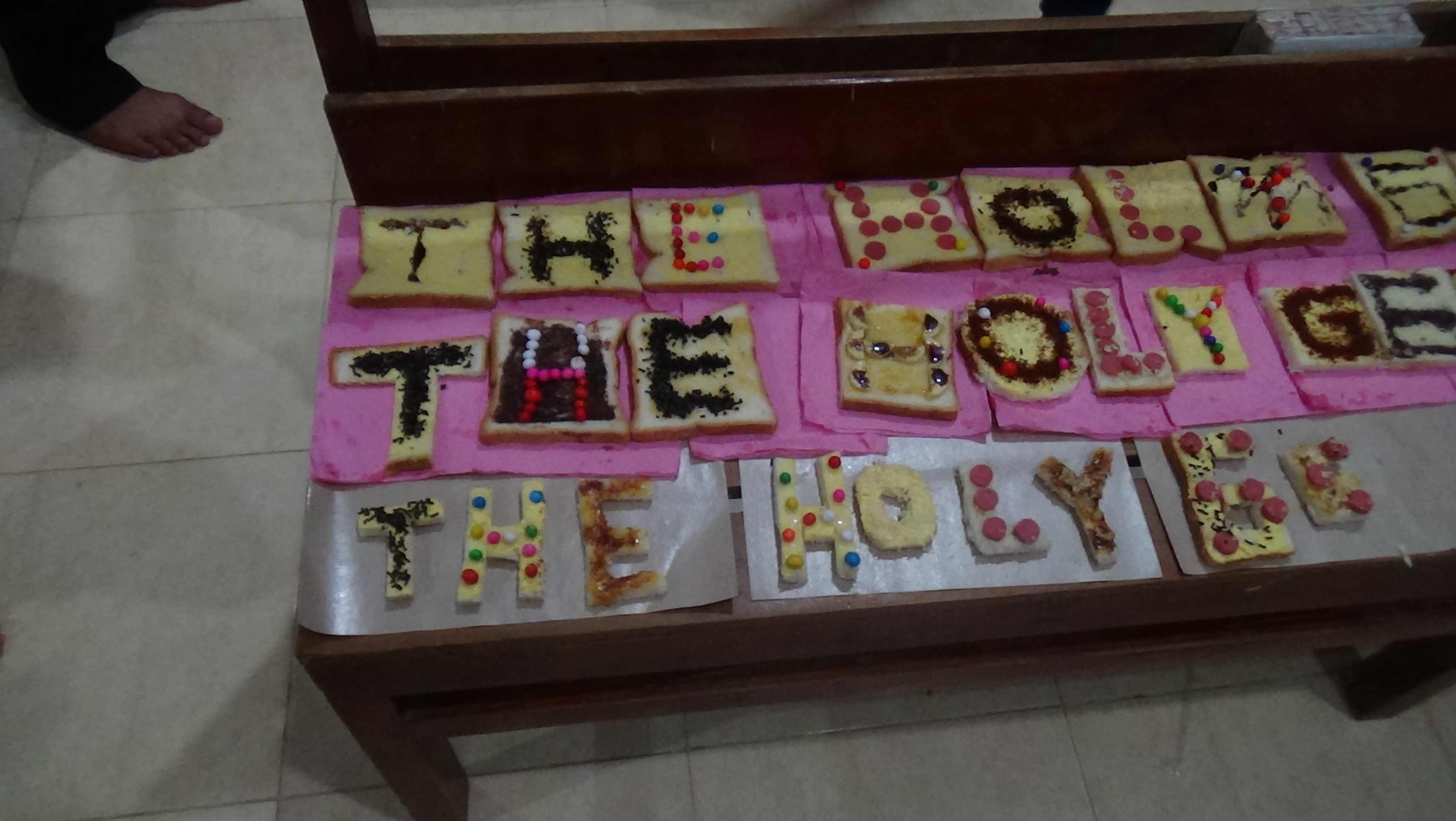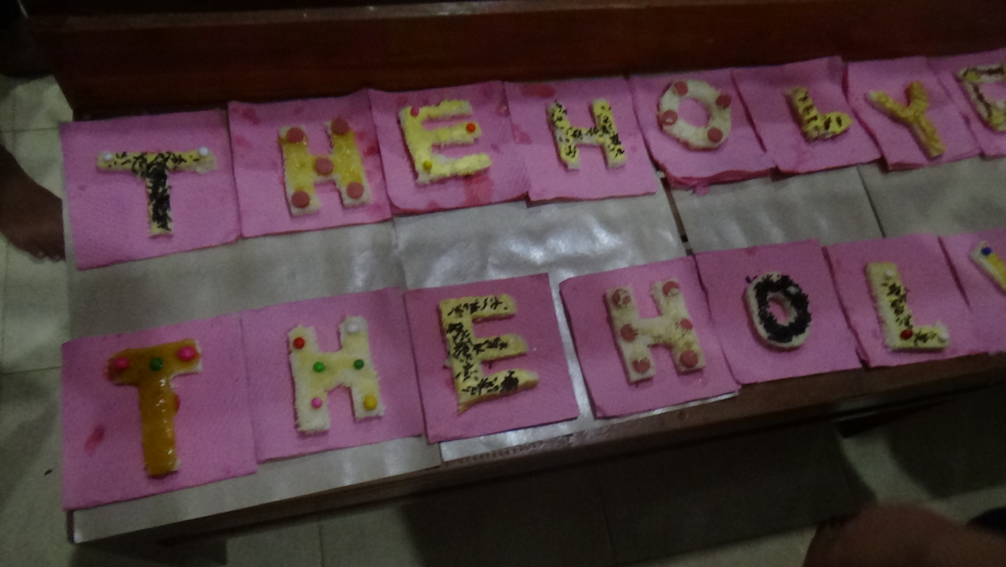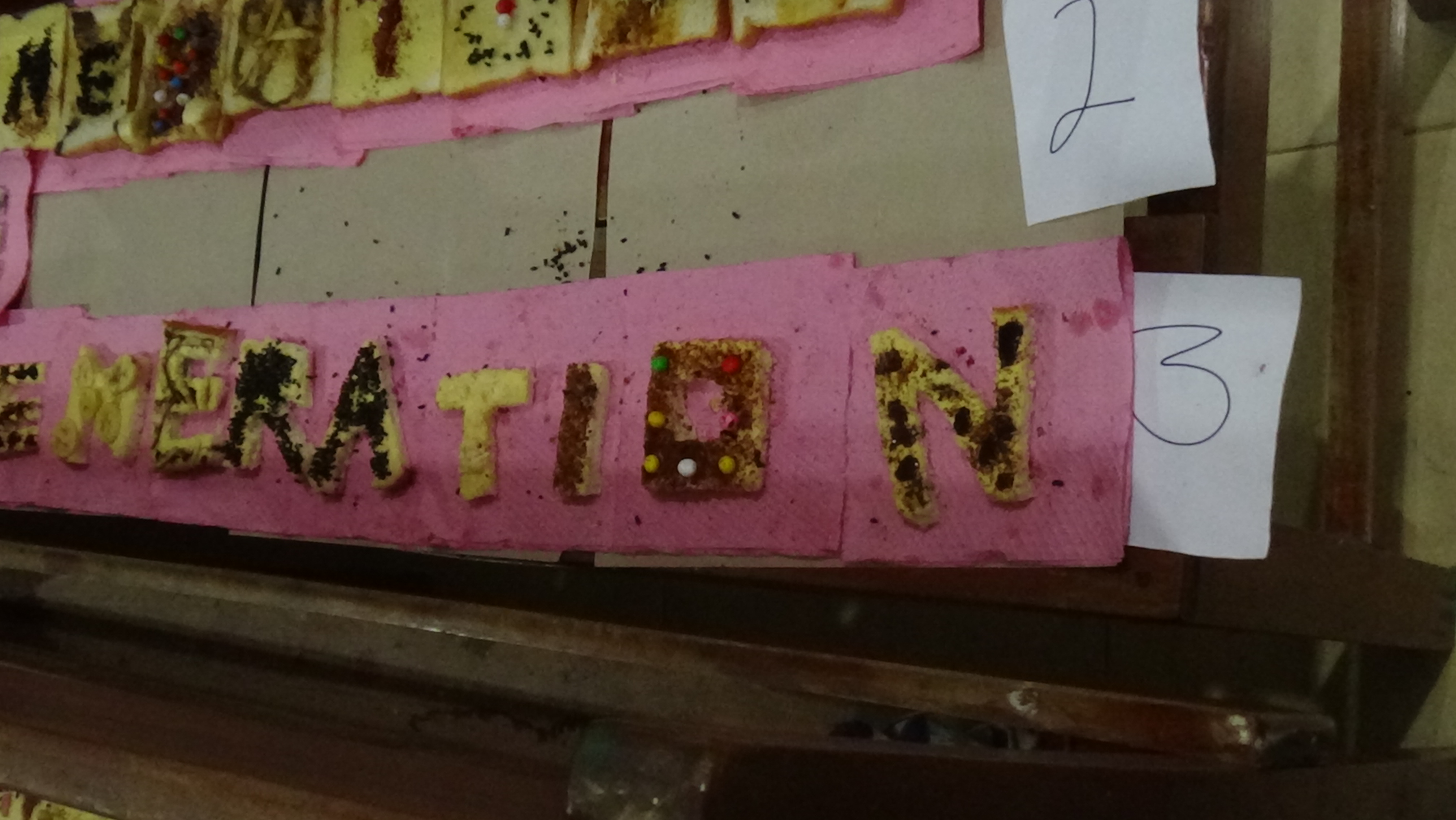 Jadi dalam kelompok A misalnya, anak pertama akan mendapat tugas membuat hiasan roti dengan inisial T, anak kedua, masih dalam kelompok A, akan mendapat tugas membuat hiasan roti dengan inisial H, dst