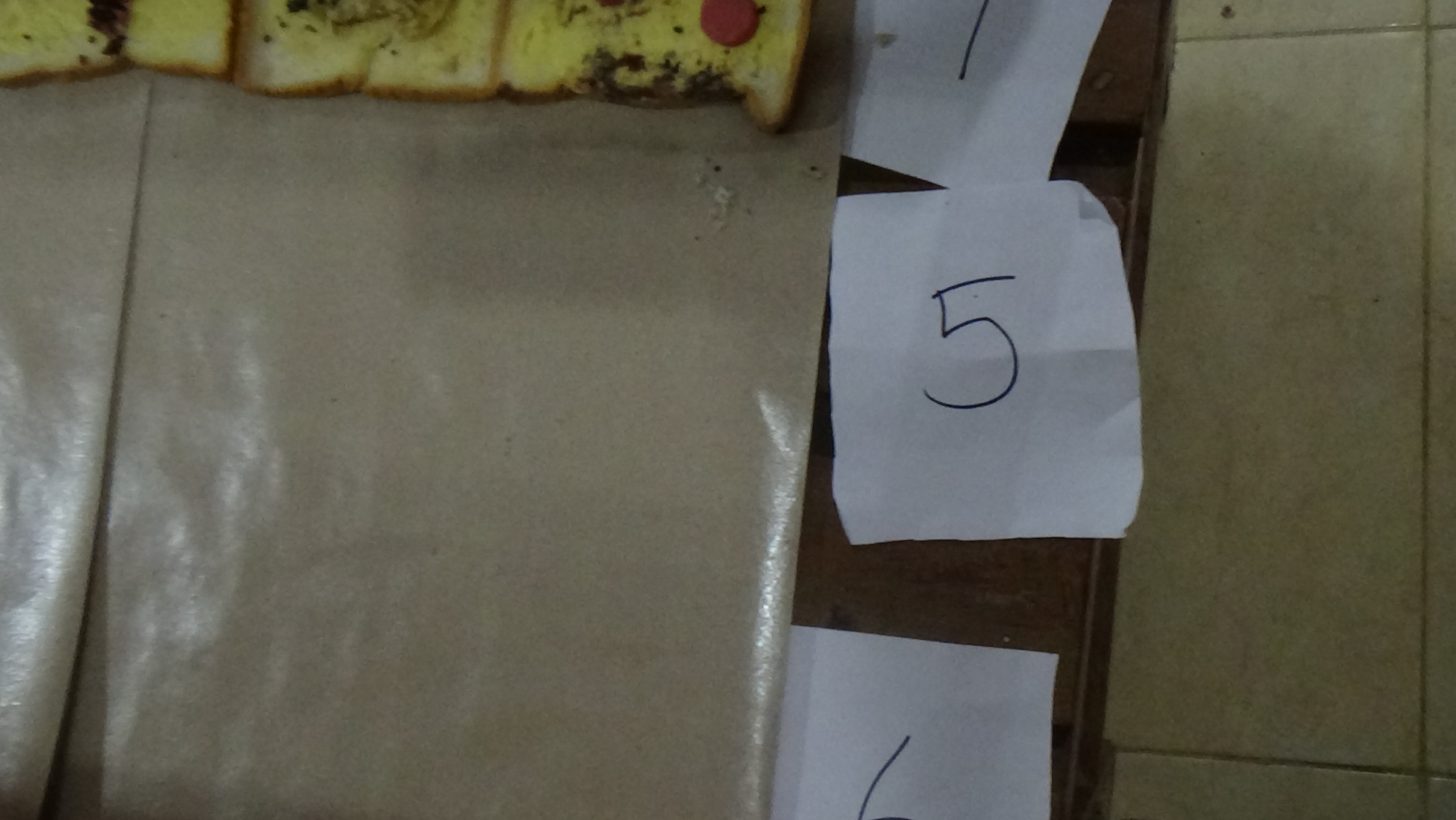 - Piring plastik 17 buah untuk tiap kelompok, untuk menaruh roti , tiap piring 1 roti