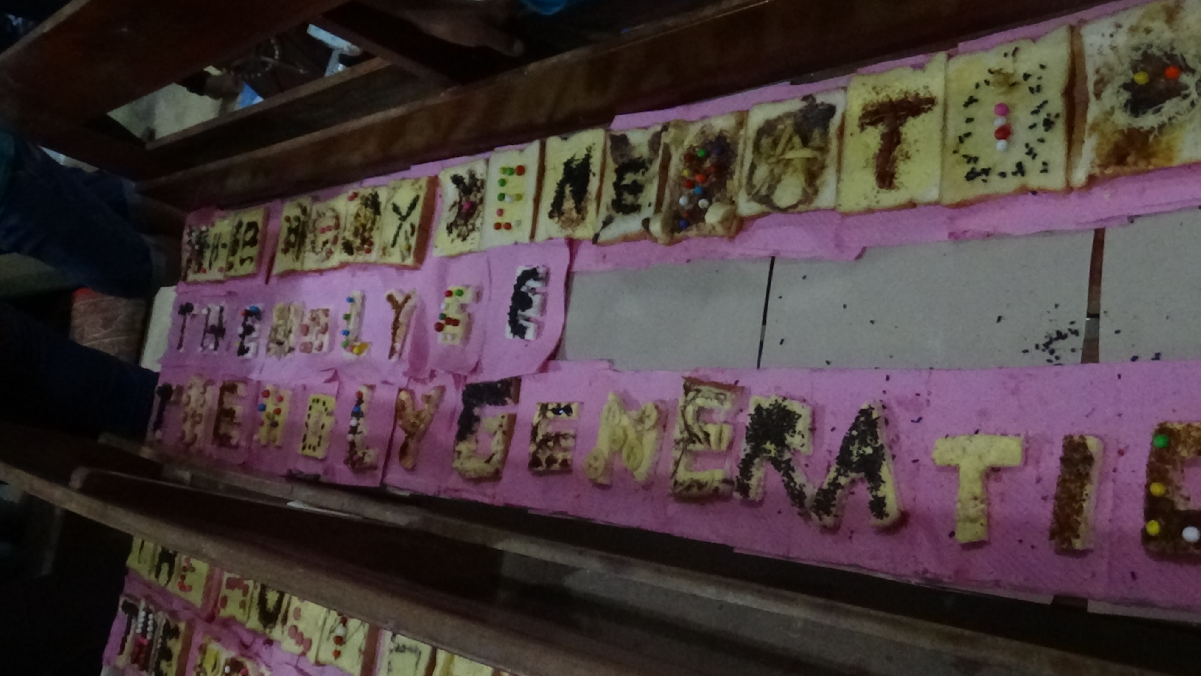 - Ide kreatif dalam menyusun huruf THE HOLY GENERATION