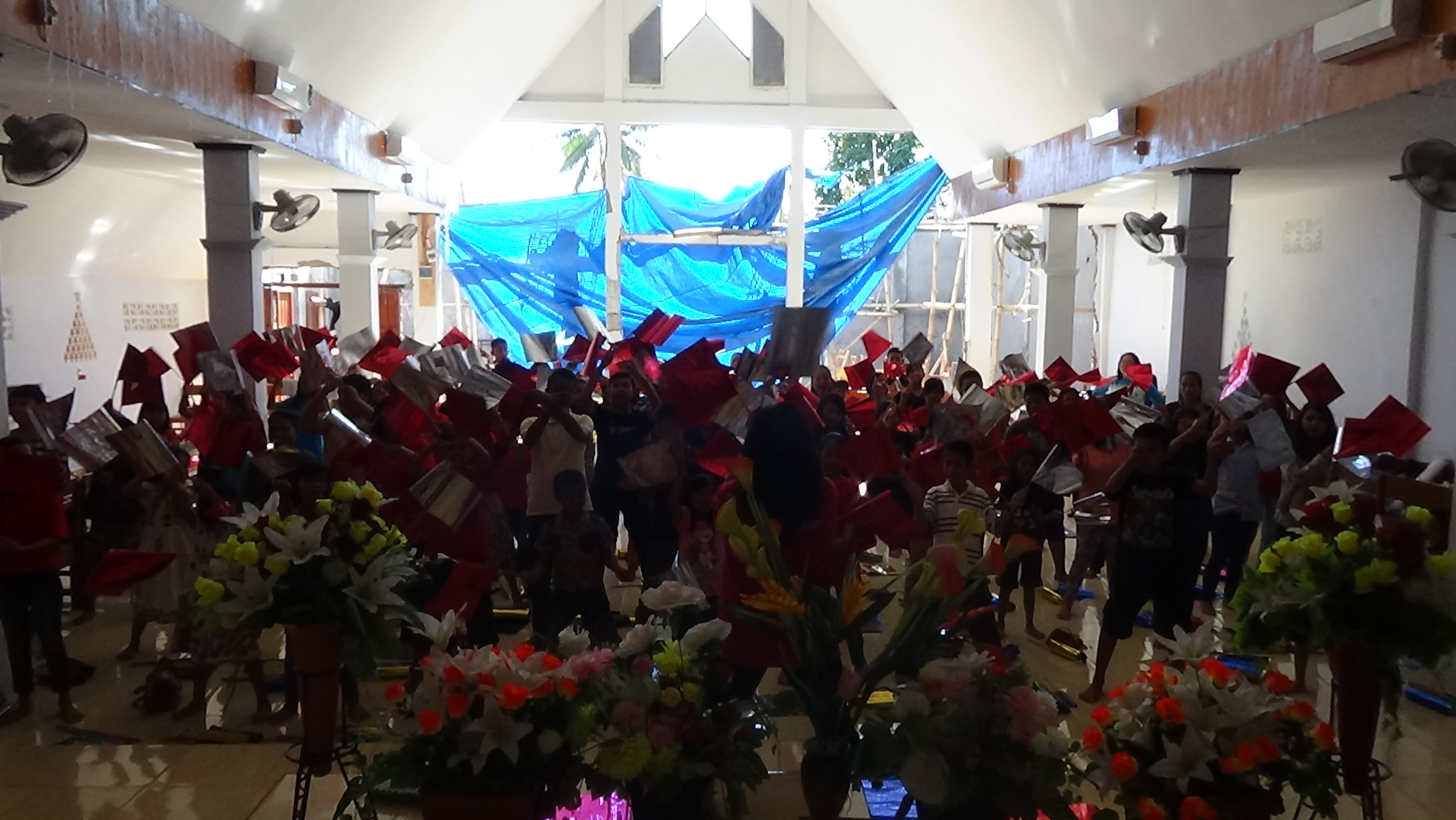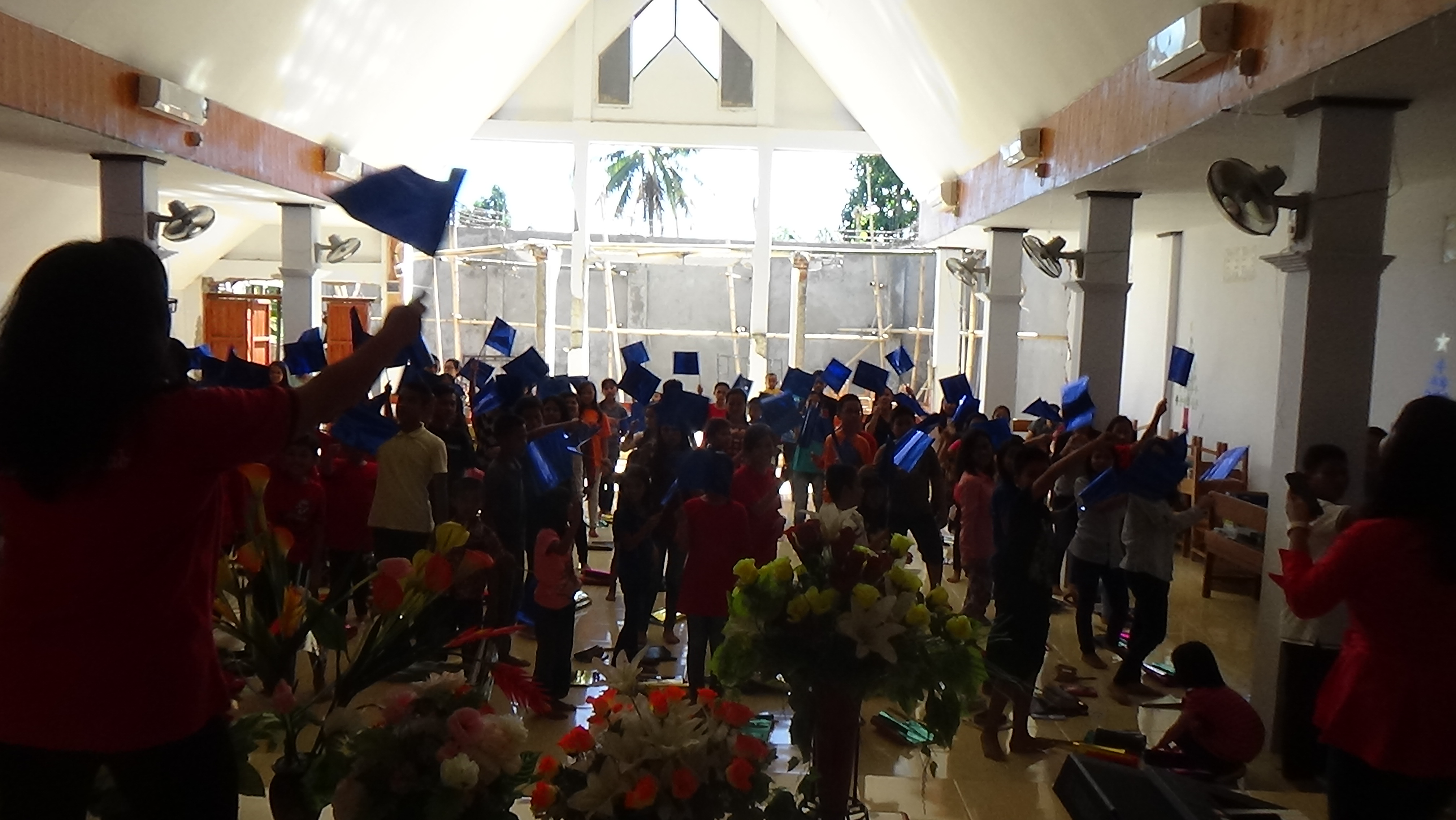(kibarkan bendera BIRU- biru adalah lambang Roh Kudus, biarkan Roh Kudus menolong kita untuk mengampuni kesalahan dan kelemahan orang tua kita)