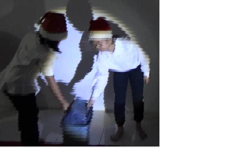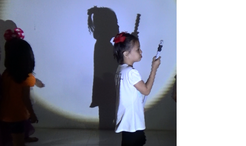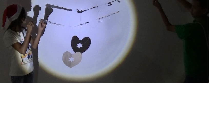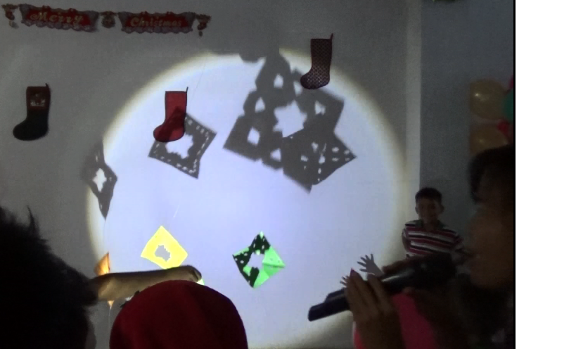 Pada saat presentasi nanti tiap property akan digantung pada tali tersebut dan akan digantung , lalu akan disoroti senter ditujukan ke tembok. Atau akan lebih bagus bila bisa disorotkan ke LAYAR KHUSUS yang telah dipersiapkan.