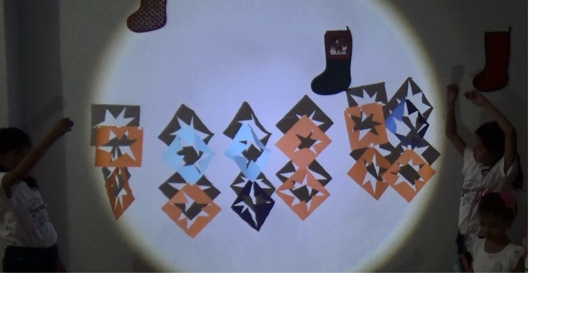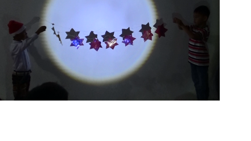 Membuat bintang dari KARTON YANG DILUBANGI – dengan banyak lubang berbentuk bintang.