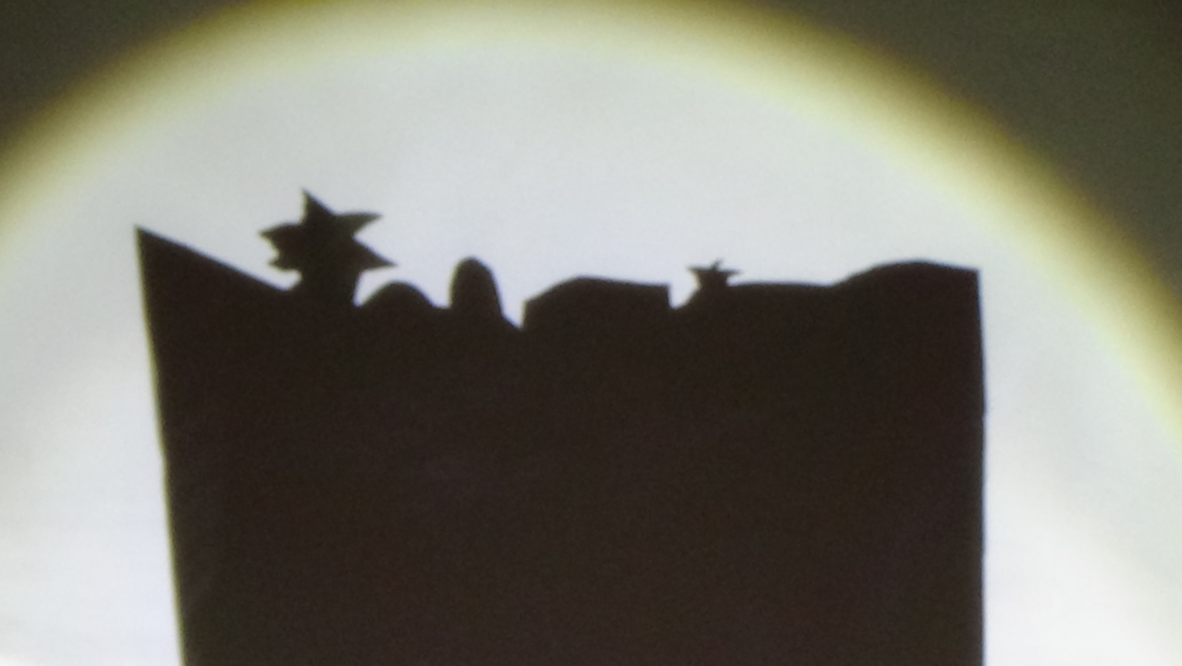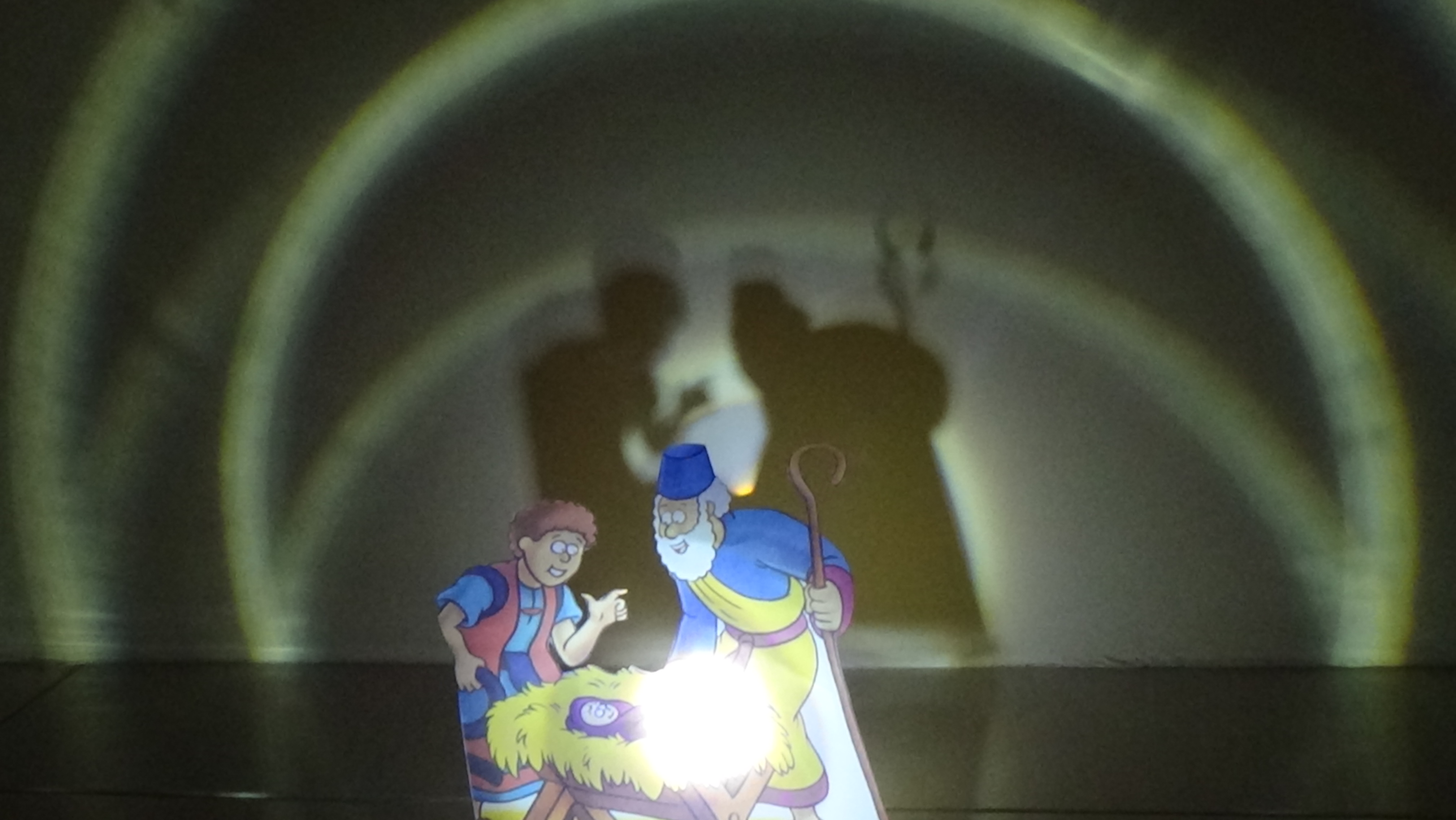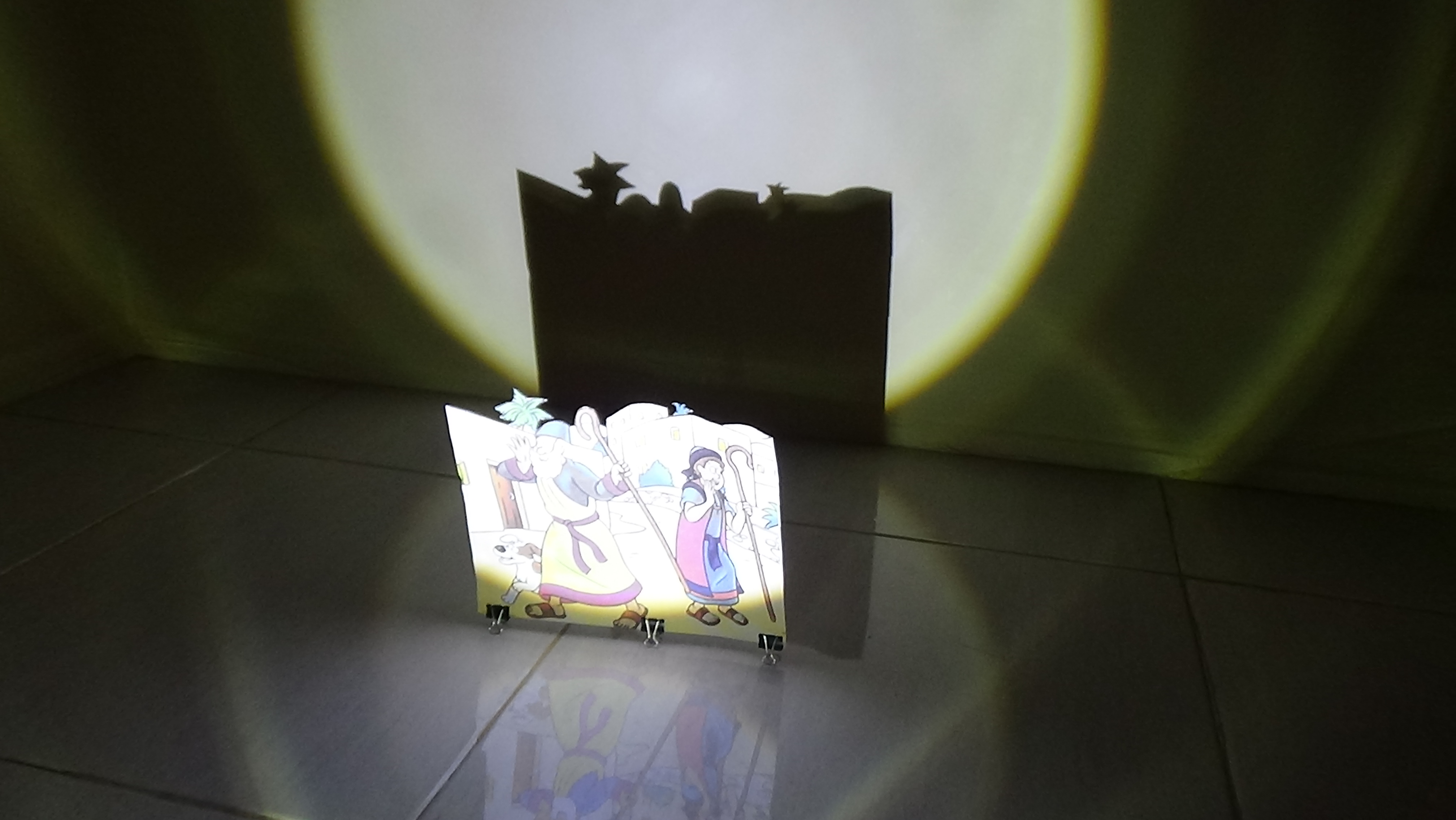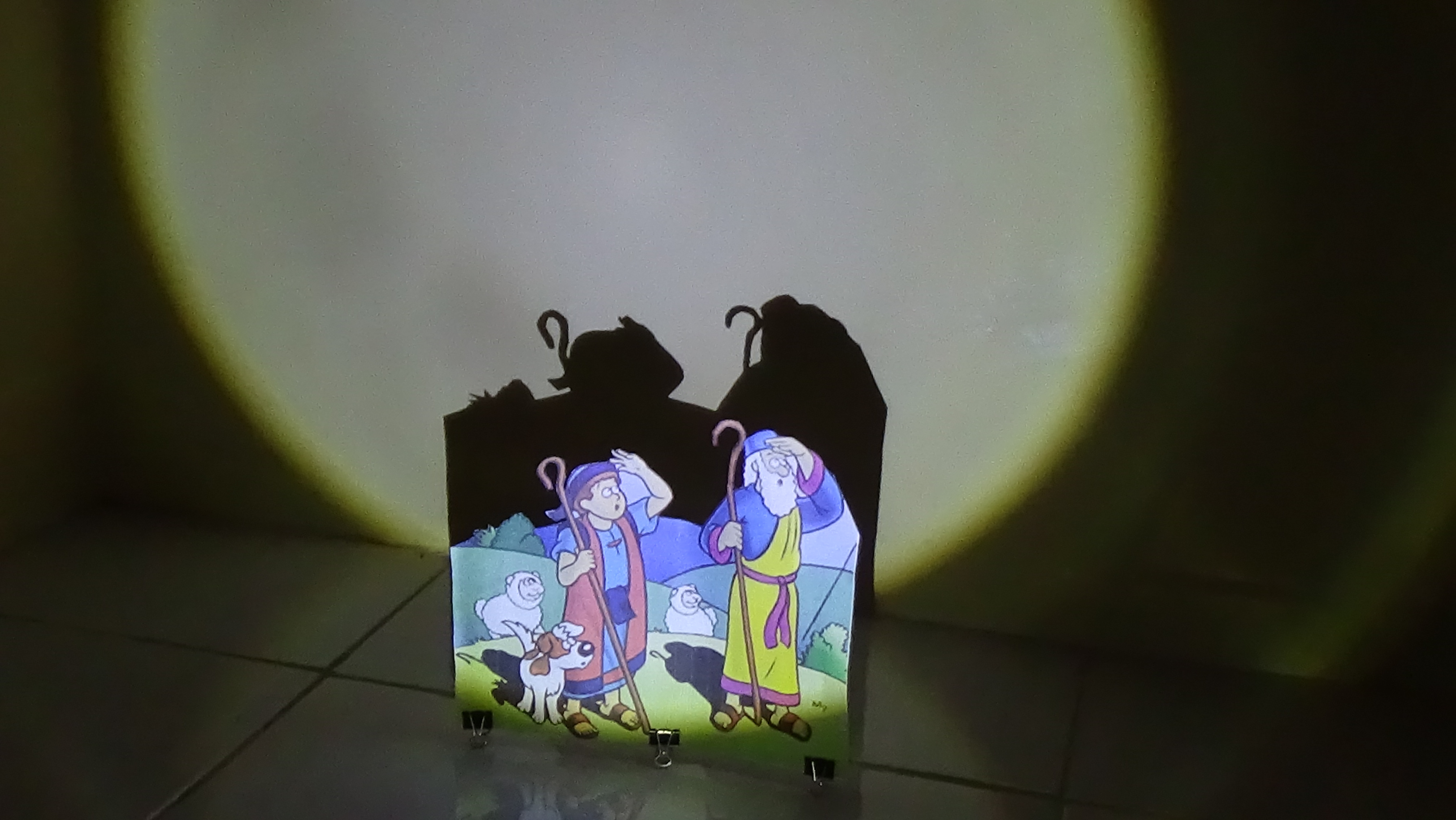Tidak harus menggunakan gambar siluet untuk bercerita menggunakan lampu sorot, cukup gunakan gambar dari kertas tipis pun bisa, tahan dengan BINDER sehingga tidak catuh, ukuran binder pun bisa disesuaikan besar kecilnya gambar, dan gunakan senter khusus seperti pada contoh, yang dapat dibeli di toko alat bangunan atau di toko lampu.