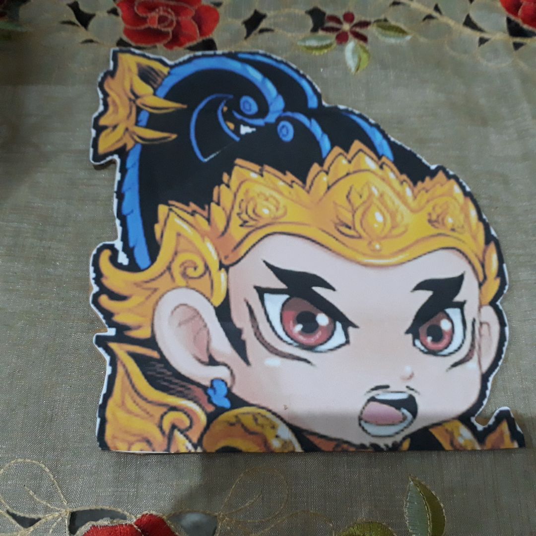 karena agak sulit mencari wajah gatot kaca yang menghadap depan, maka bola mata jika dilubangi, posisi tidak pas dengan mata jasmani, jadi nanti topeng ini akan ditempel di dahi saja, bagian mata tidak perlu dilobangi.