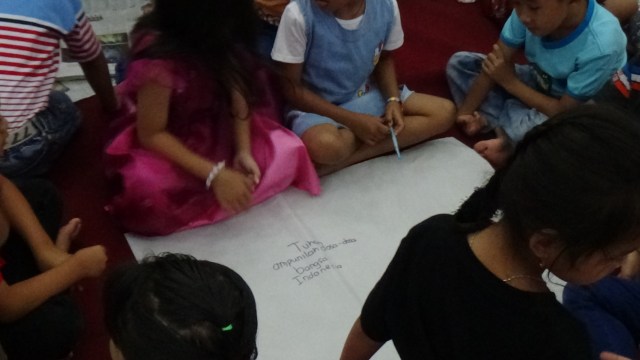 Ada hadiah langsung ( pensil atau alat tulis satuan lainnya) bagi anak-anak yang bisa menyebutkan keadaan bangsa kita saat ini.