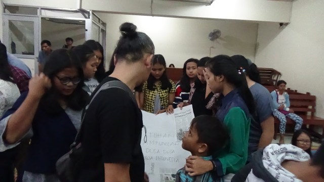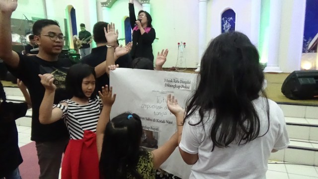 “Tuhan , ampunilah mereka itu lho, papa dan mama, mereka bersalah Tuhan, mereka berdosa Tuhan..”
