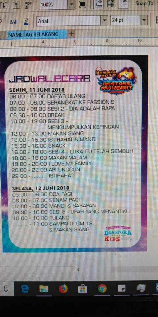 Durasi 2 jam dari jam 15.00 sampai jam 17.00 sudah termasuk PAW dan Altar Call.