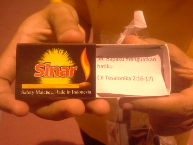 Setiap BOX KOREK API akan berisi 1 kertas berisi ayat dan penjelasan tentang karakter BAPA, sbb: