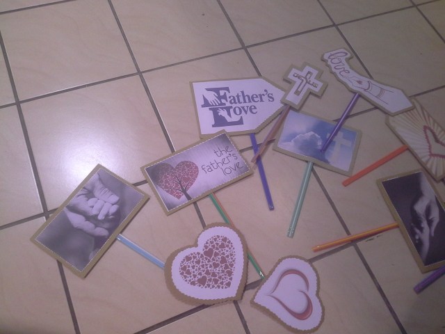 - Pembicara akan menunjuk salah satu anak / siapa yang berani memilih dari barang-barang yang dipajang (- sama dengan yang dipersiapkan di termin 2) , yang dapat mengingatkan kamu tentang ayahmu di bumi, untuk menceritakan BAGAIMANA AYAH DI BUMI BEGITU MENYEDIAKAN KEBUTUHANMU