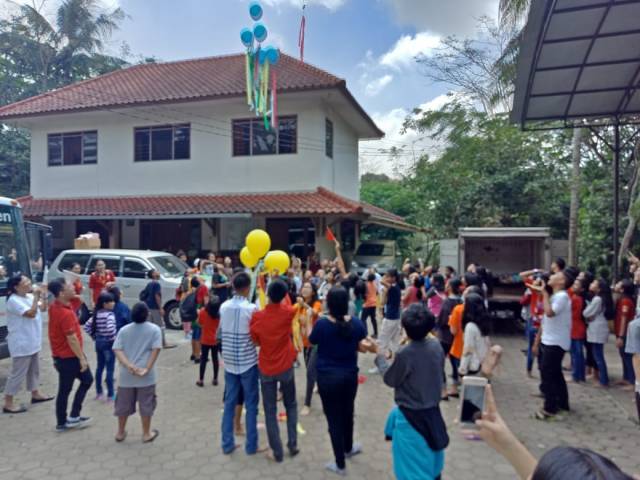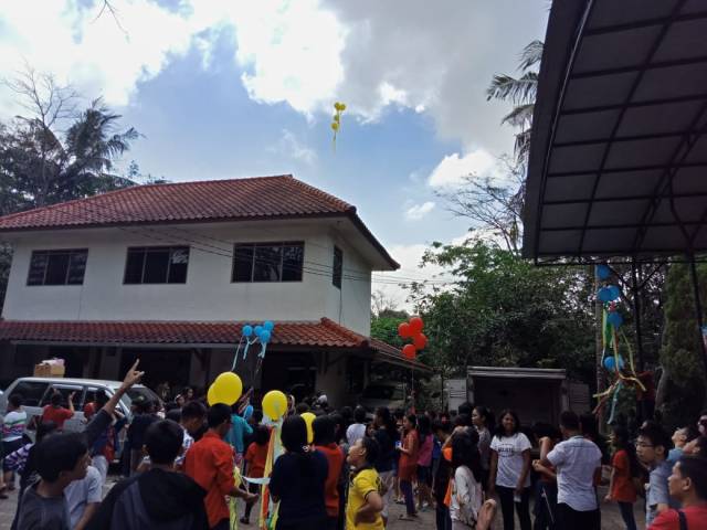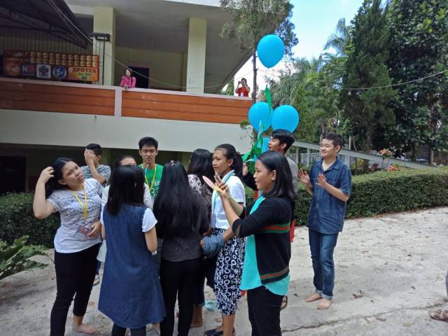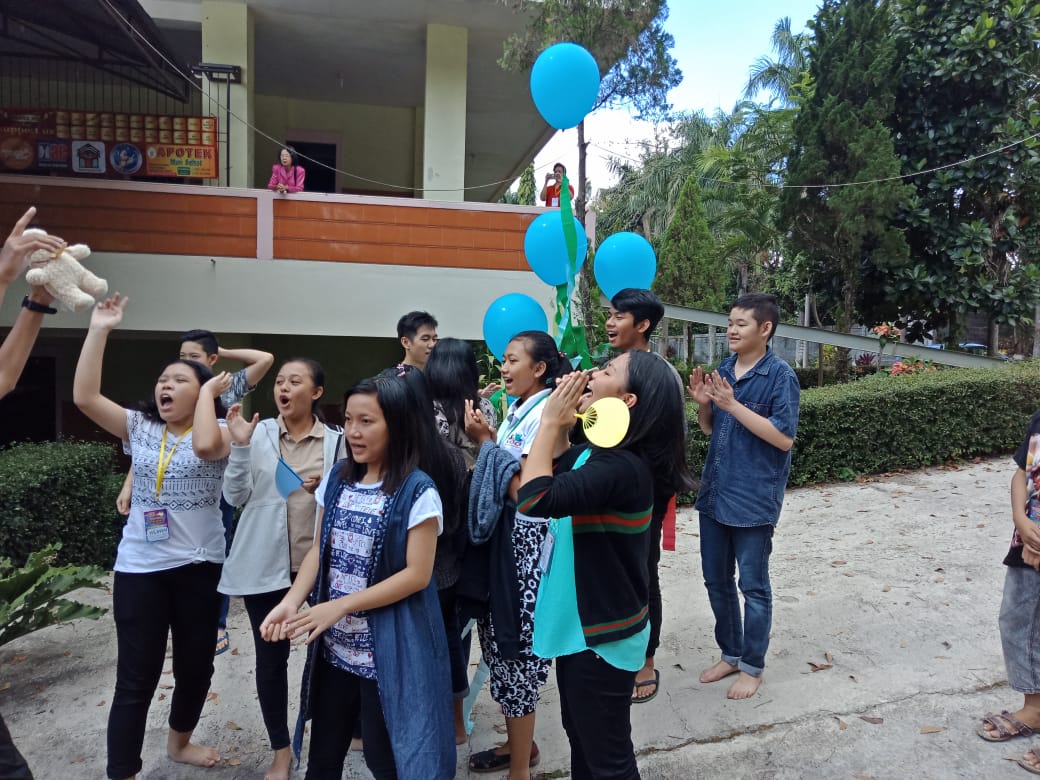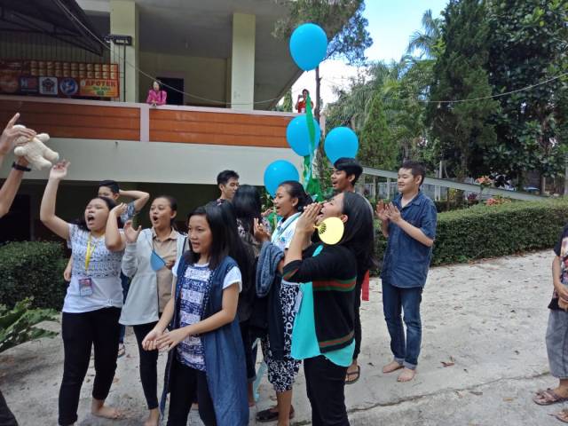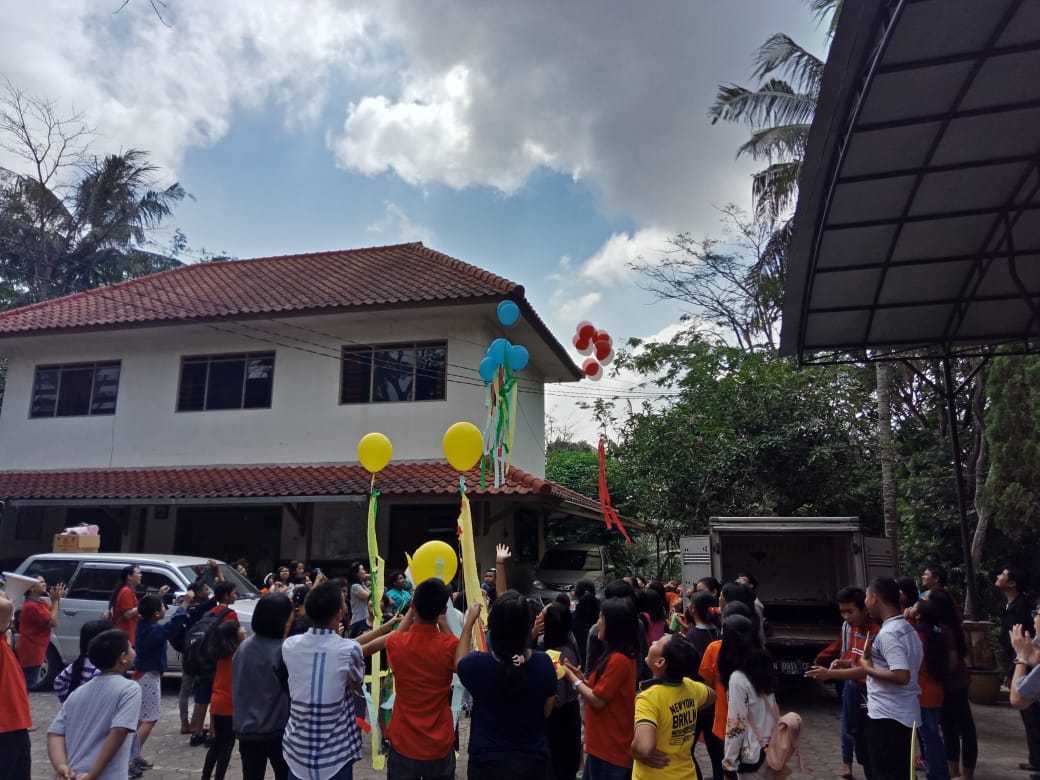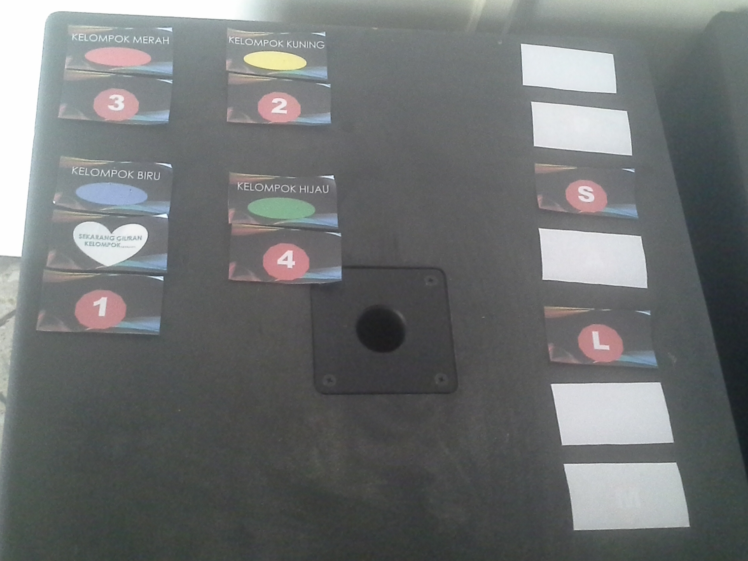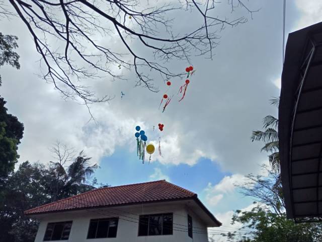 - BALON GAS AKAN DIPAJANG DENGAN PEMBERATNYA MASING-MASING DI DEPAN DUDUKNYA PARA KELOMPOK SESUAI WARNANYA. BALON MERAH DI AREA DEPAN KELOMPOK MERAH, DST