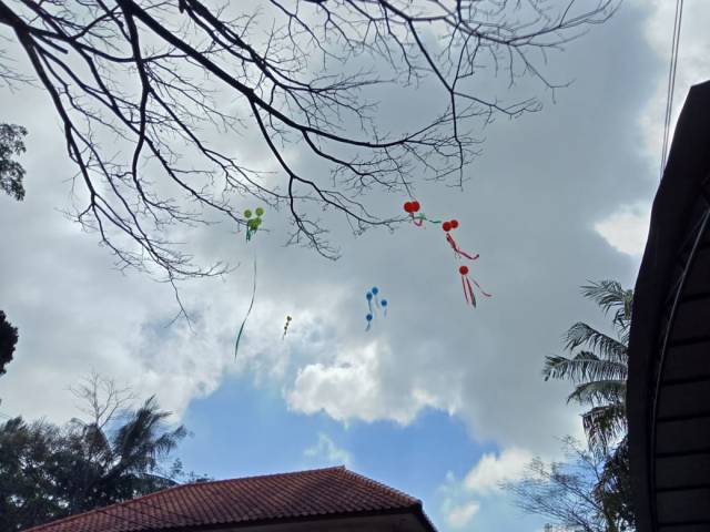 - Siapkan 20 balon gas sbb: ( Berdasarkan pengalaman kami, jumlah balon jangan dikurangi, karena jika kurang gasnya, maka dikawatirkan balon tidak bisa terbang, karena rumbai-rumbai yang diikatkan nantinya lumayan berat.)