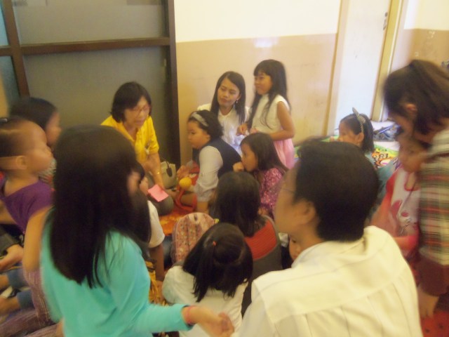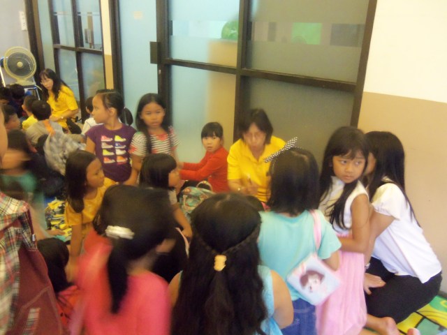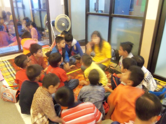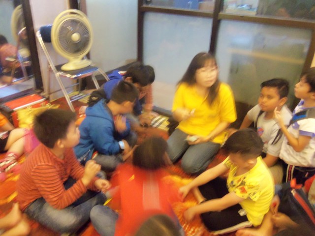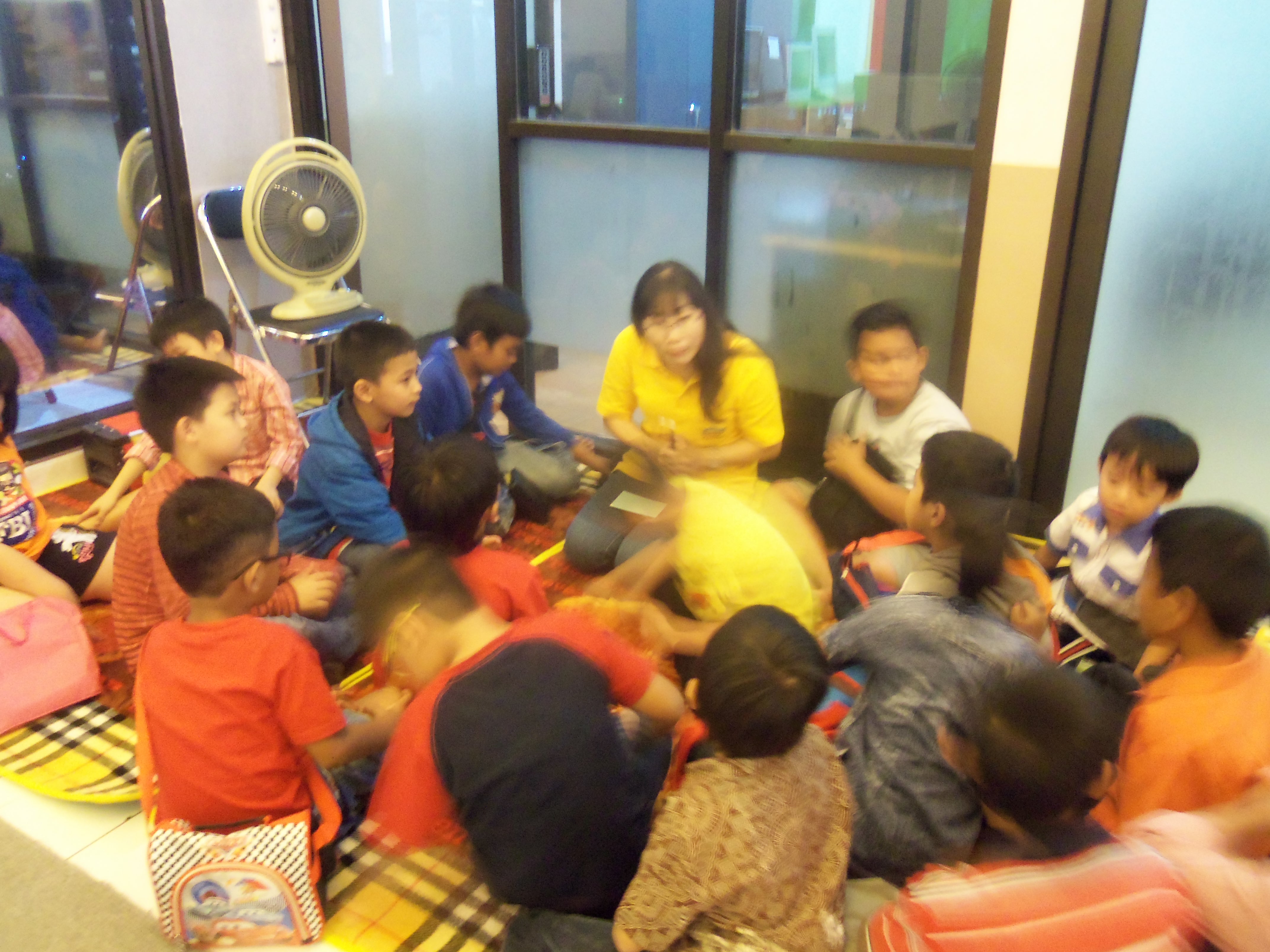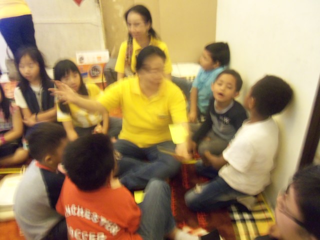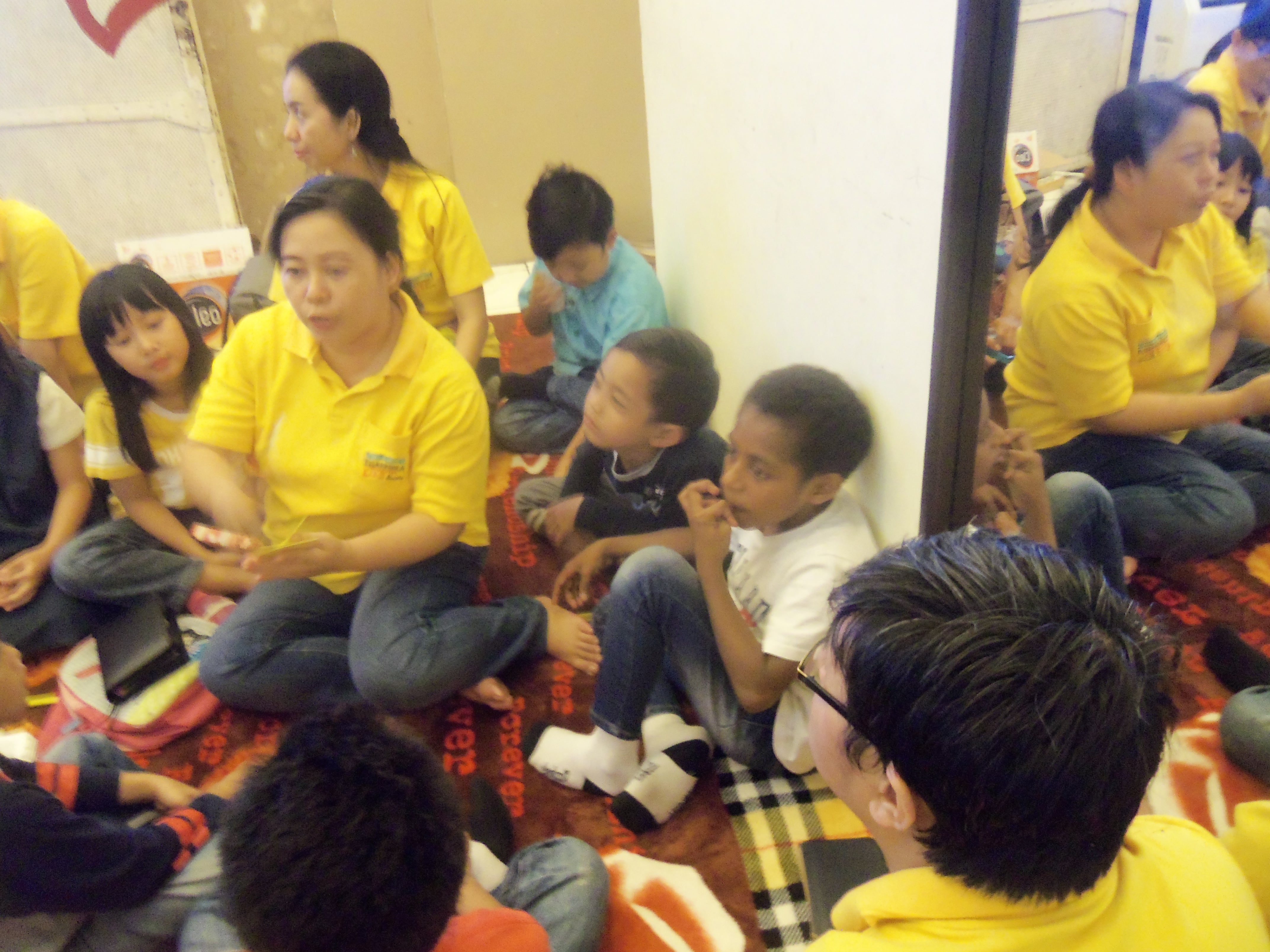 Anak-anak dibagi dalam 3 kelompok. Sebelumnya kondisikan anak-anak sudah duduk sesuai kelompoknya.