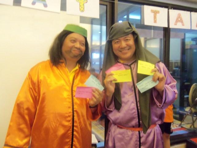 Dan tiap kelompok boleh bersama-sama mengirimkan satu wakil untuk menempelkan pada bintang tamu, mana yang menurut mereka ABSALOM, dan mana yang menurut mereka YUSUF. Siapa cepat dan jawabannya benar, akan menjadi kelompok pemenang.