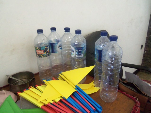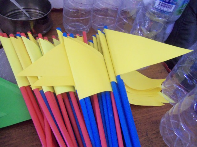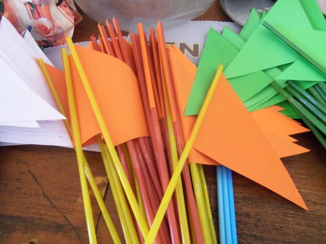 Bendera ini kita buat dari SEDOTAN dan ORIGAMI. Tiap anak mendapat bendera