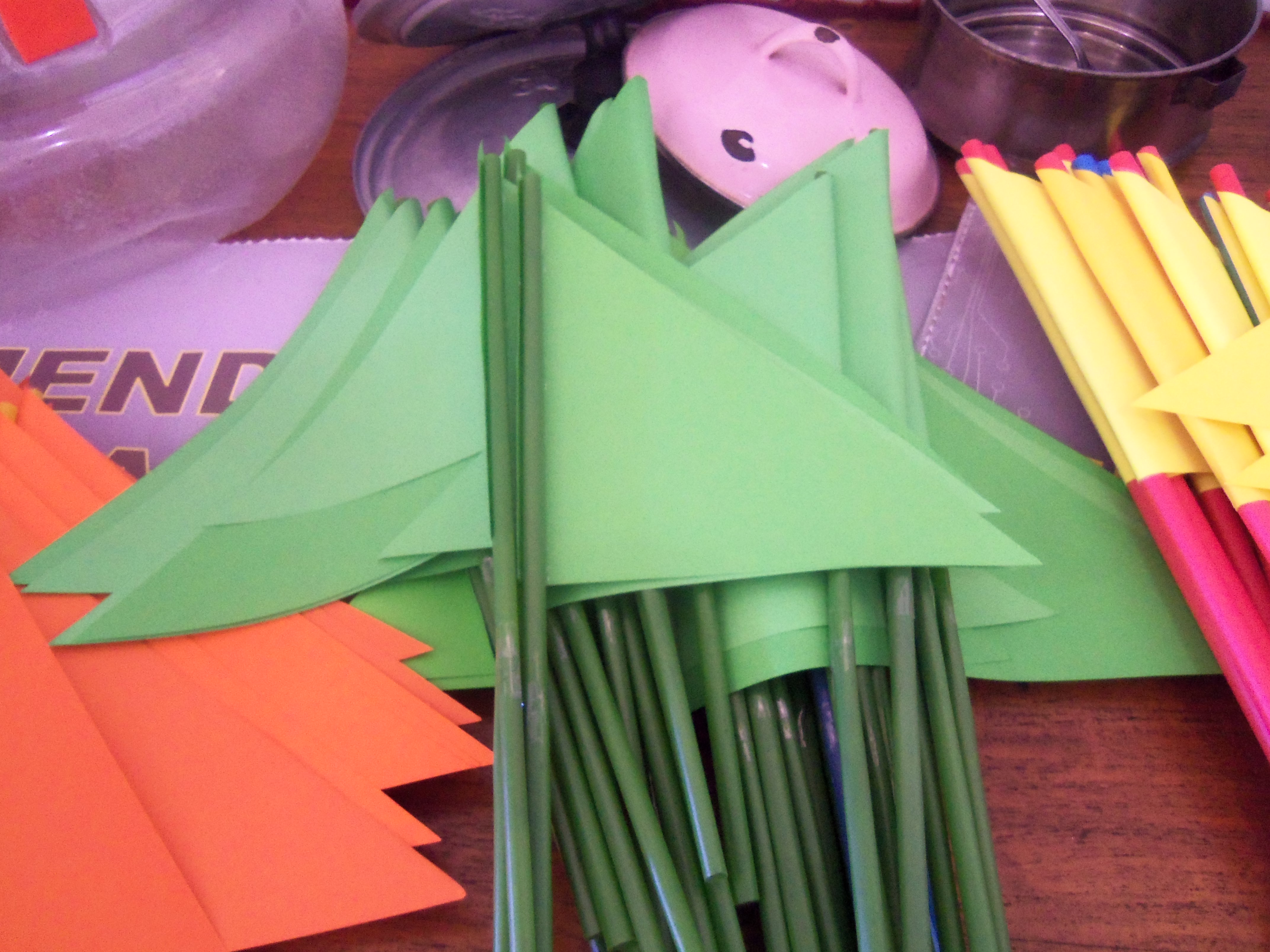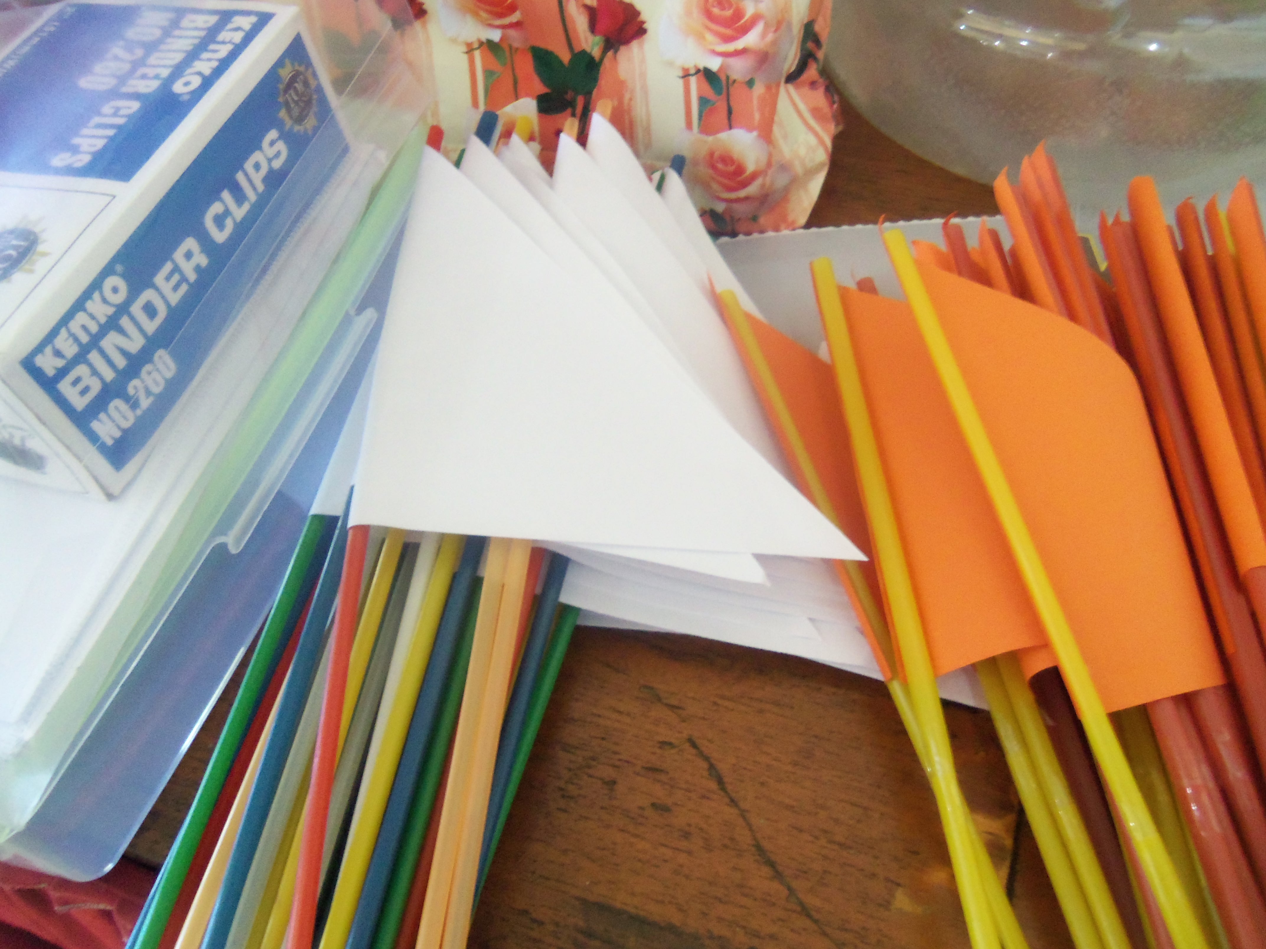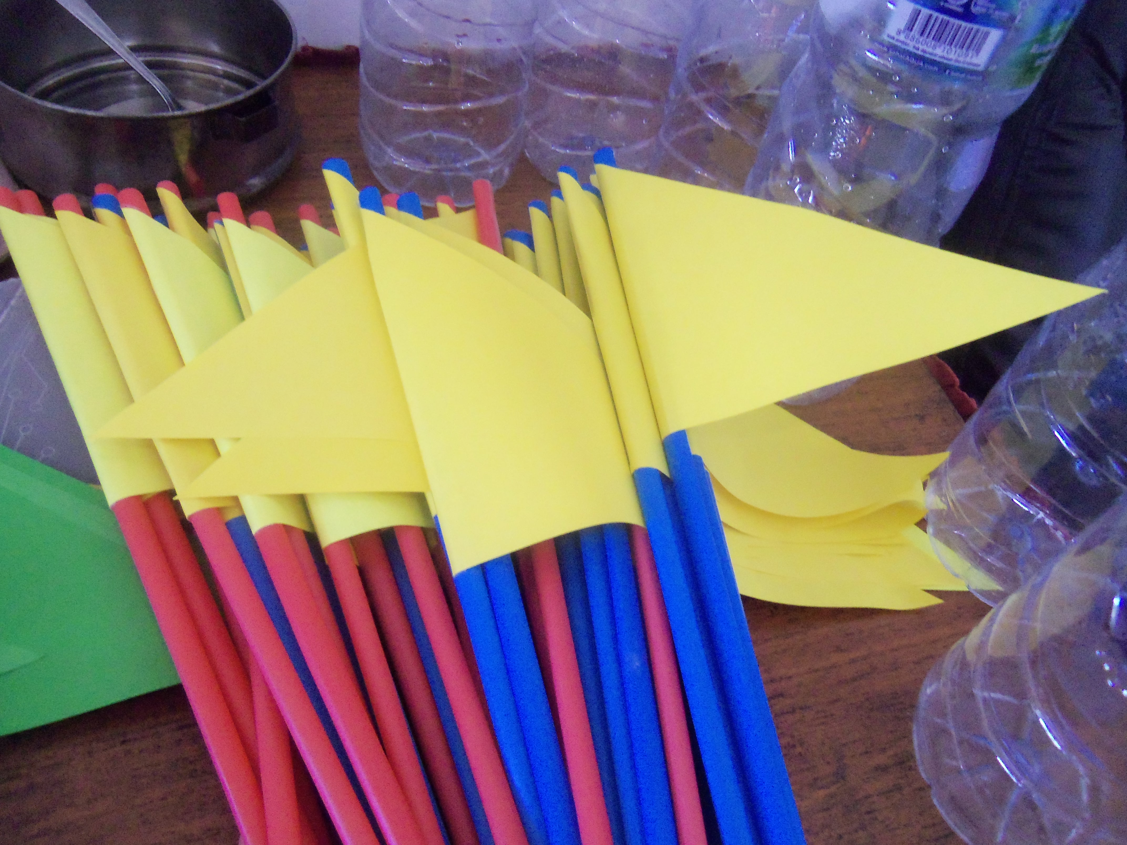 Bendera ini kita buat dari SEDOTAN dan ORIGAMI. Tiap anak mendapat bendera